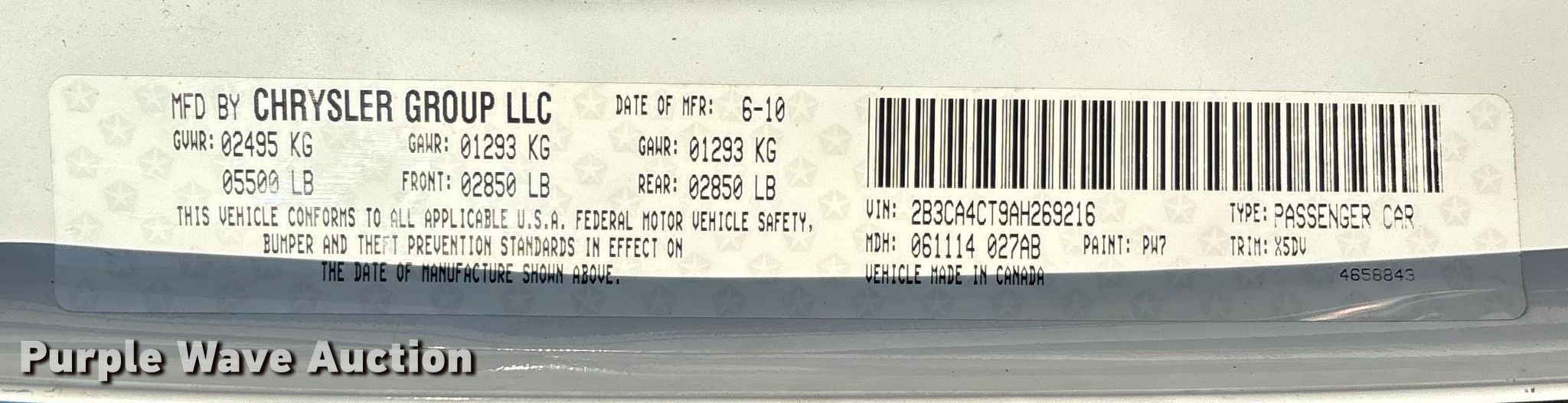 - VIN: 2B3CA4CT9AH269216