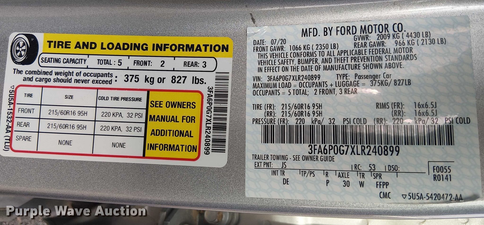 - VIN: 3FA6P0G7XLR240899