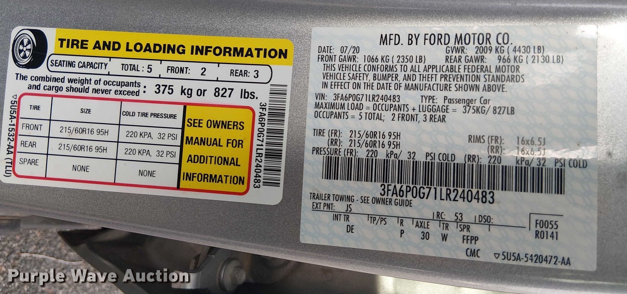 - VIN: 3FA6P0G71LR240483