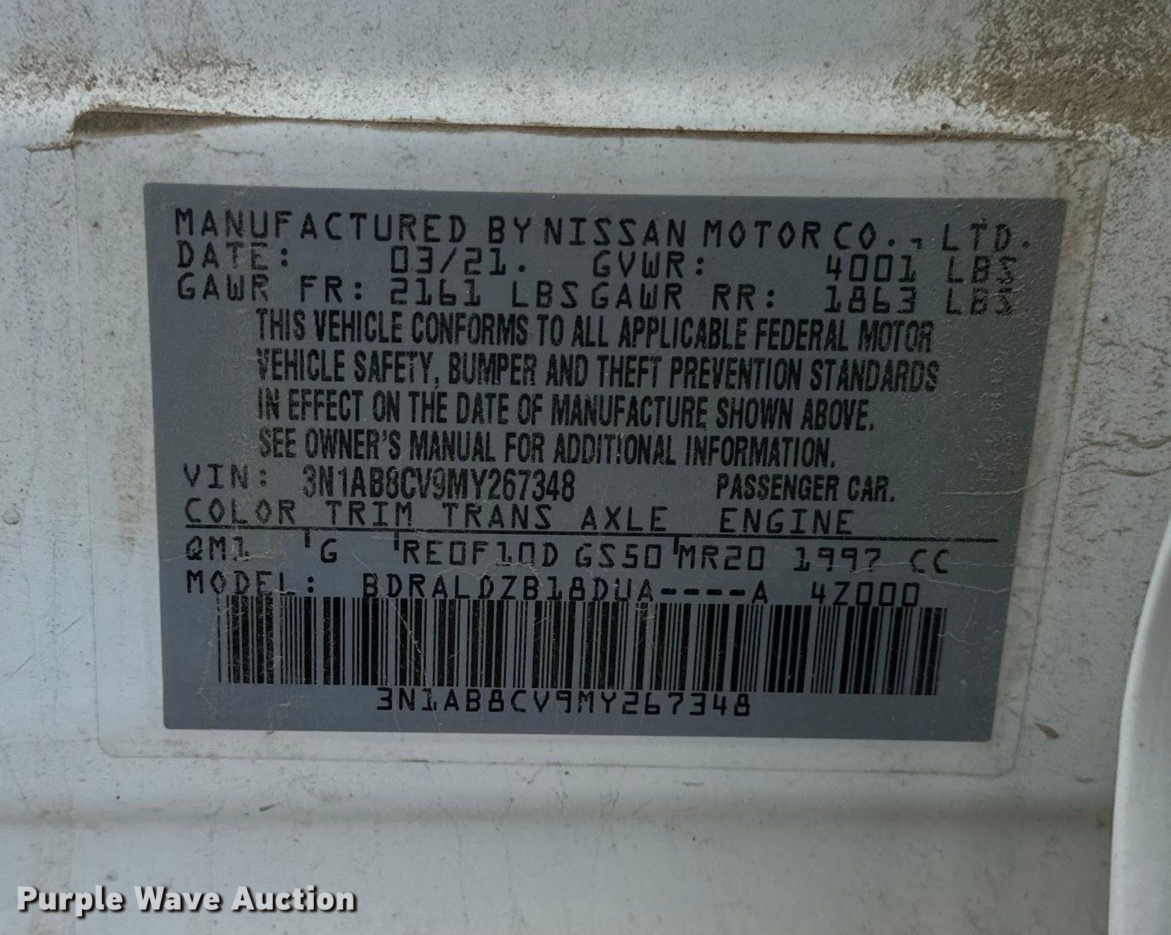 Purple Wave is selling a used Passenger Vehicle in Kansas. This item is a 2021 Nissan Sentra with the following: Miles: 123,056 on odometer, VIN: 3N1AB8CV9MY267348, Unit #: 25192