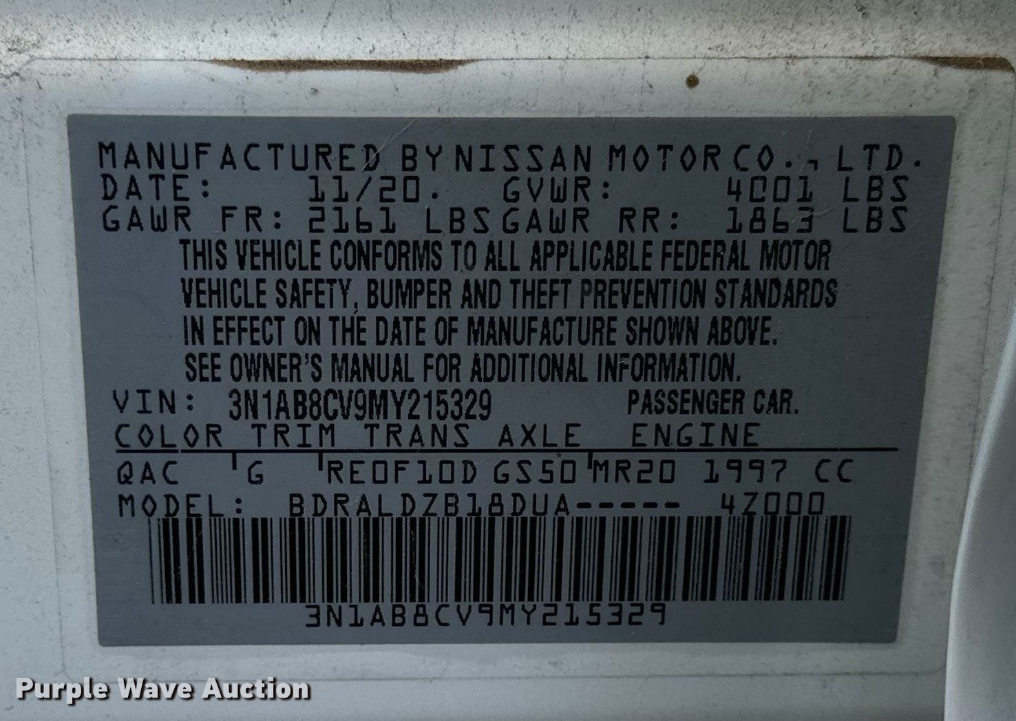 Purple Wave is selling a used Passenger Vehicle in Kansas. This item is a 2021 Nissan Sentra with the following: Miles: 108,216 on odometer, VIN: 3N1AB8CV9MY215329, Unit #: 26800