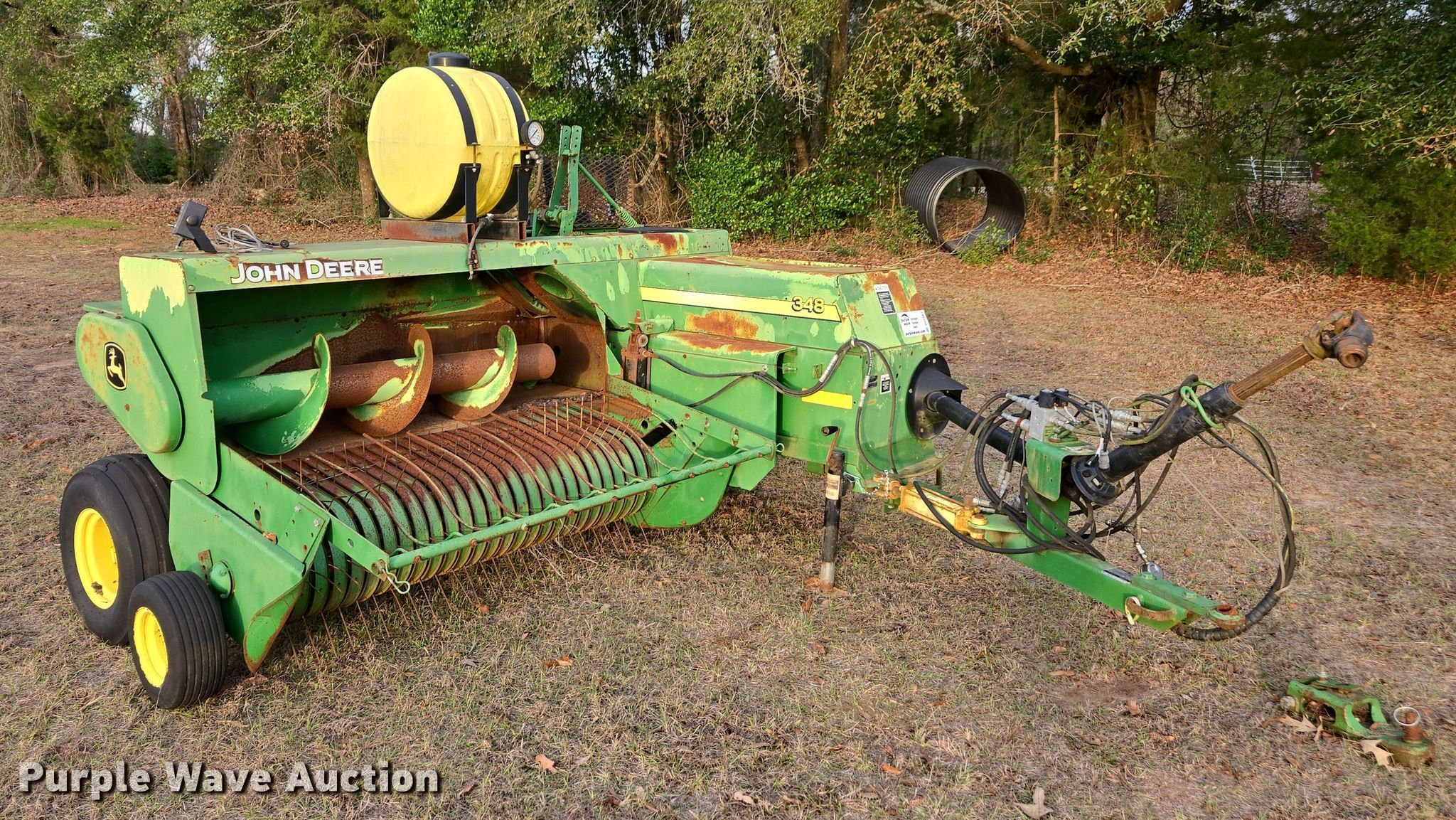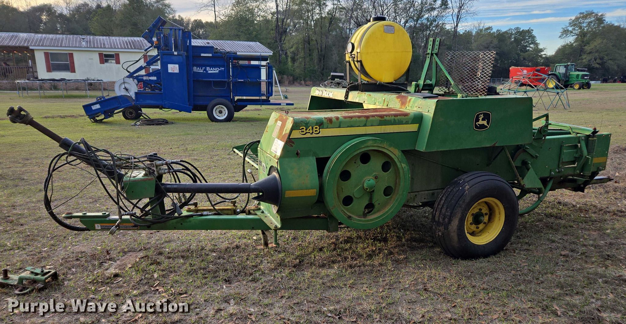Purple Wave is selling a used Square Baler in Alabama. This item is a John Deere 348 small square baler with the following: Serial: E00348T330847
