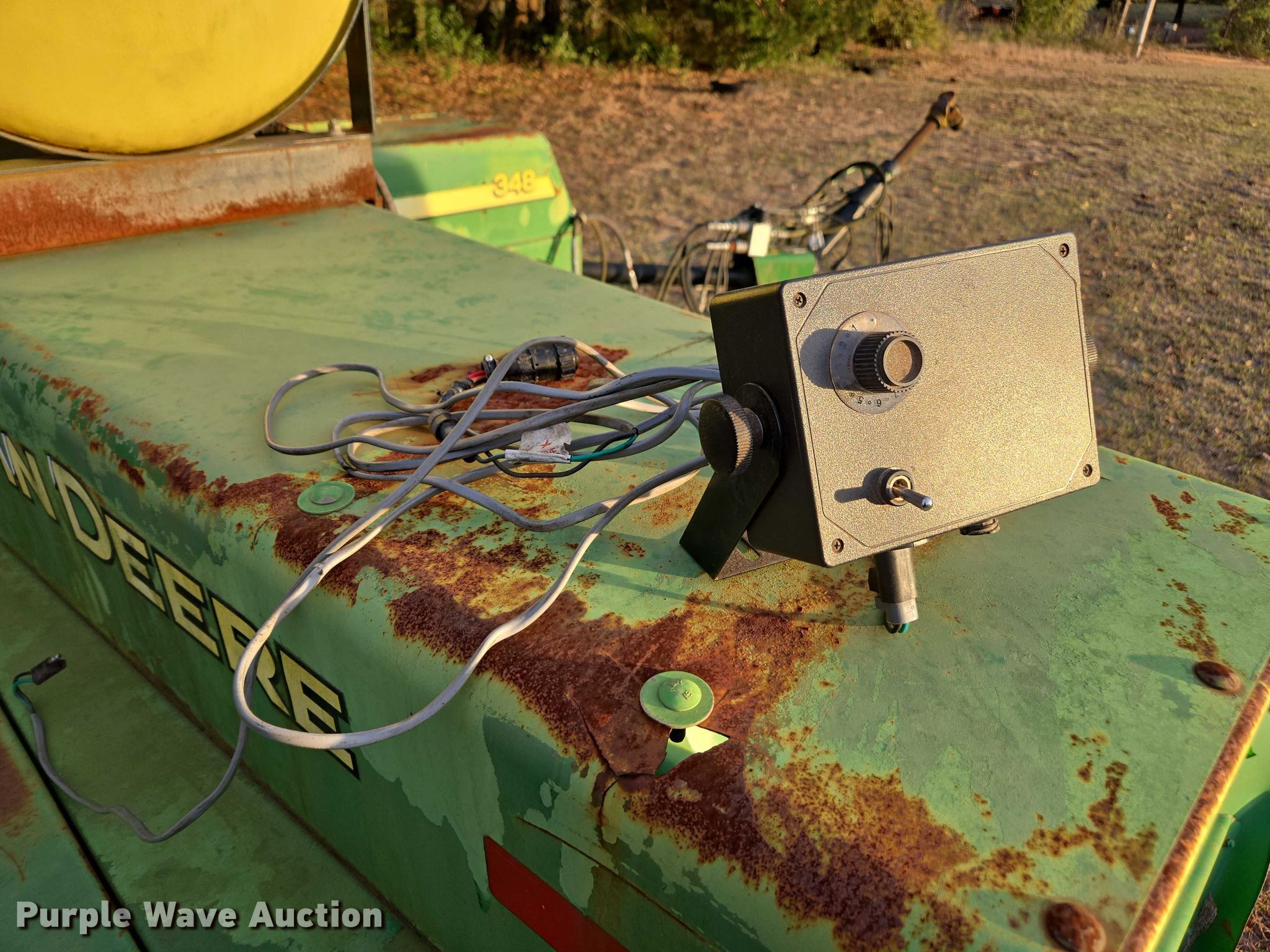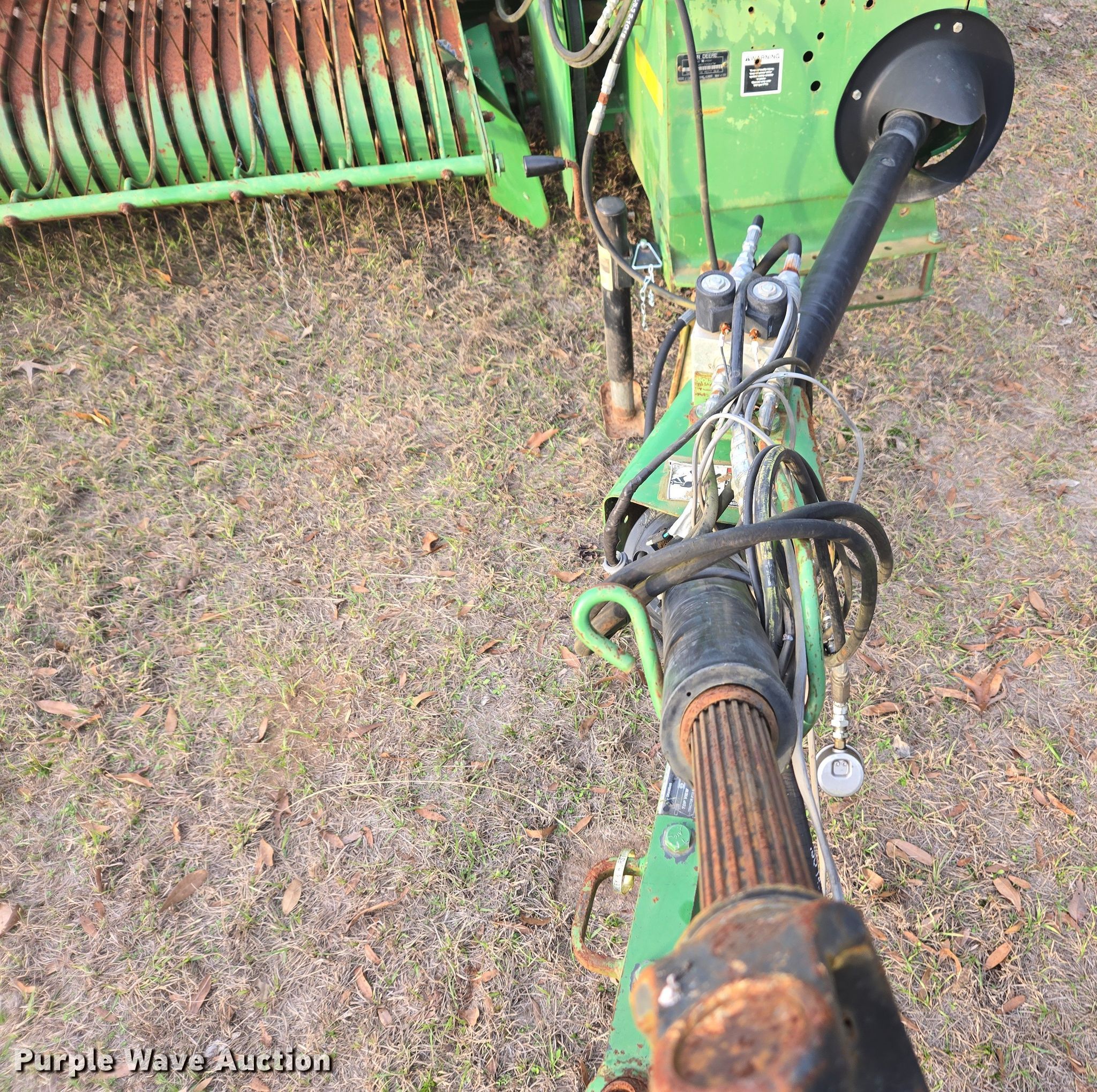 John Deere 348 small square baler. Serial: E00348T330847. Features PTO: 540, Pickup width: 5' 4", Hydraulic pickup lift, Preservative applicator system Tank size: 20 gallons, 12V pump, Small square bale size: 14" x 18", Knotters Quantity: 2, Twine tie. Tires Size: 11L-14. Forest Home, AL 36030