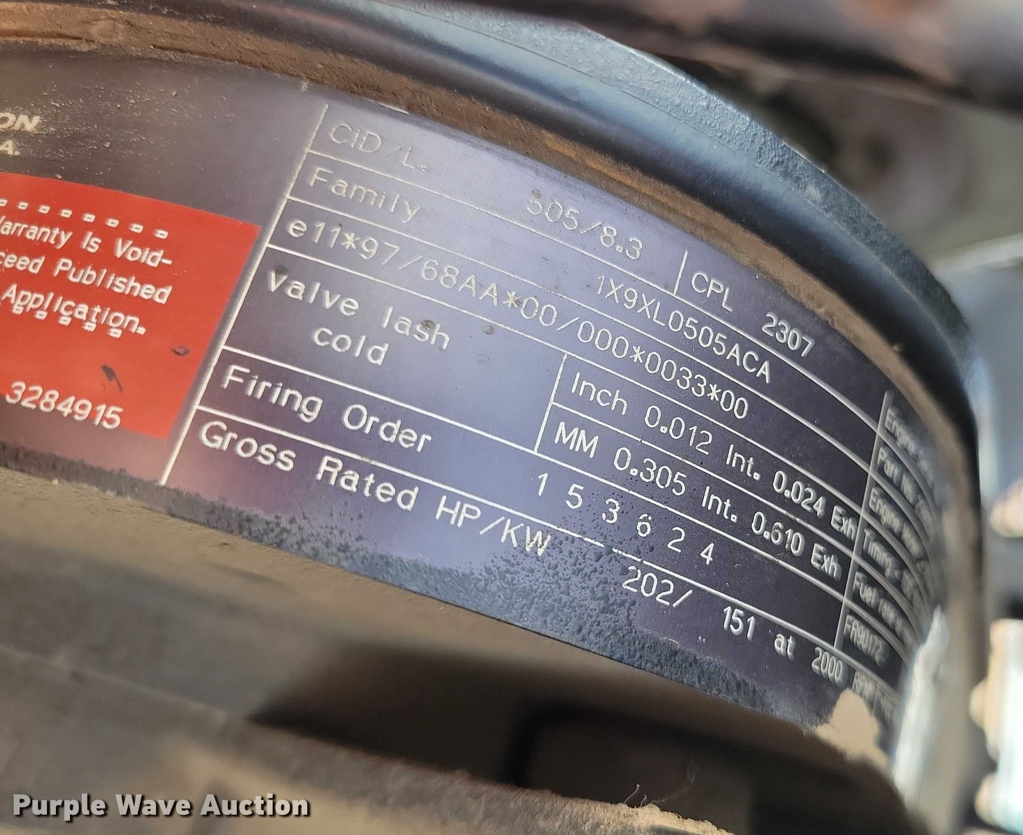 2001 Case IH MX200 tractor. Hours: 3,647 on meter, Serial: X2002C4JJA0111529. Engine Cummins 6TAA-830, Serial: 46104371, Displacement: 8.3L, Cylinders: 6, Fuel type: Diesel, HP: 202, kW: 151. Transmission Powershift, 18F - 4R, Differential lock. Operators station AC, Heat. Features PTO: 1000, Three point Top link, Quick attach, Seven pin outlet, Hydraulic remote sets Rear: 3. Tires Front: 14L-16.1SL, Rear: 18.4R42, Wheel weights: 2, Duals. Notes Transmission issues Non-operational gears,1 through 6, Non-operational reverse.1 and 2, Hydraulic leak. Behnken Farms. Massena, IA 50853