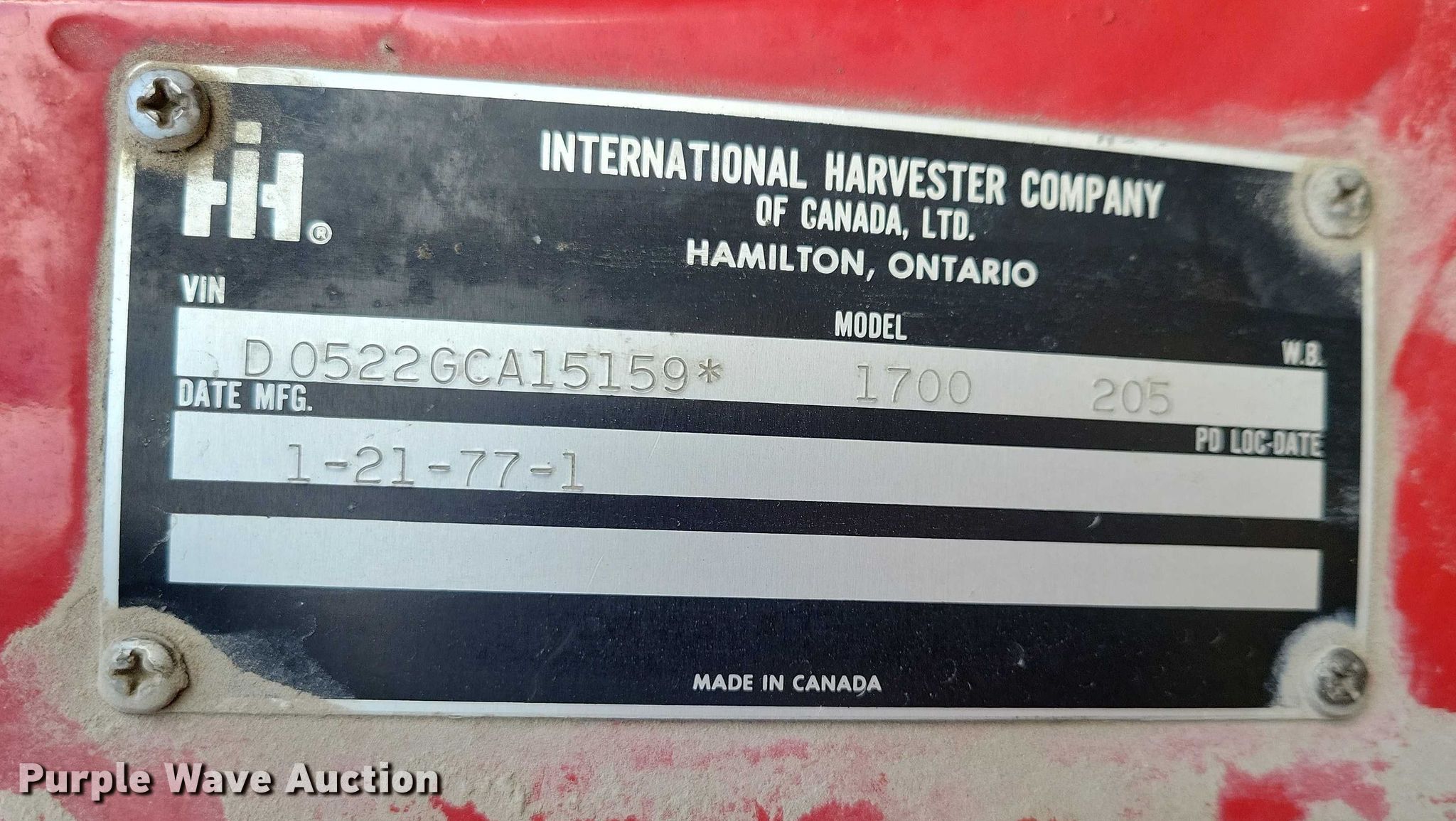 Take a look at this used 1977 IH Loadstar 1700 grain truck being sold on February 4th, 2026 in the Wednesday February 04 Ag Equipment Auction made by IH. Take a look at all of the item information below or take a look at similar auctions for Grain or Fertilizer Handling.