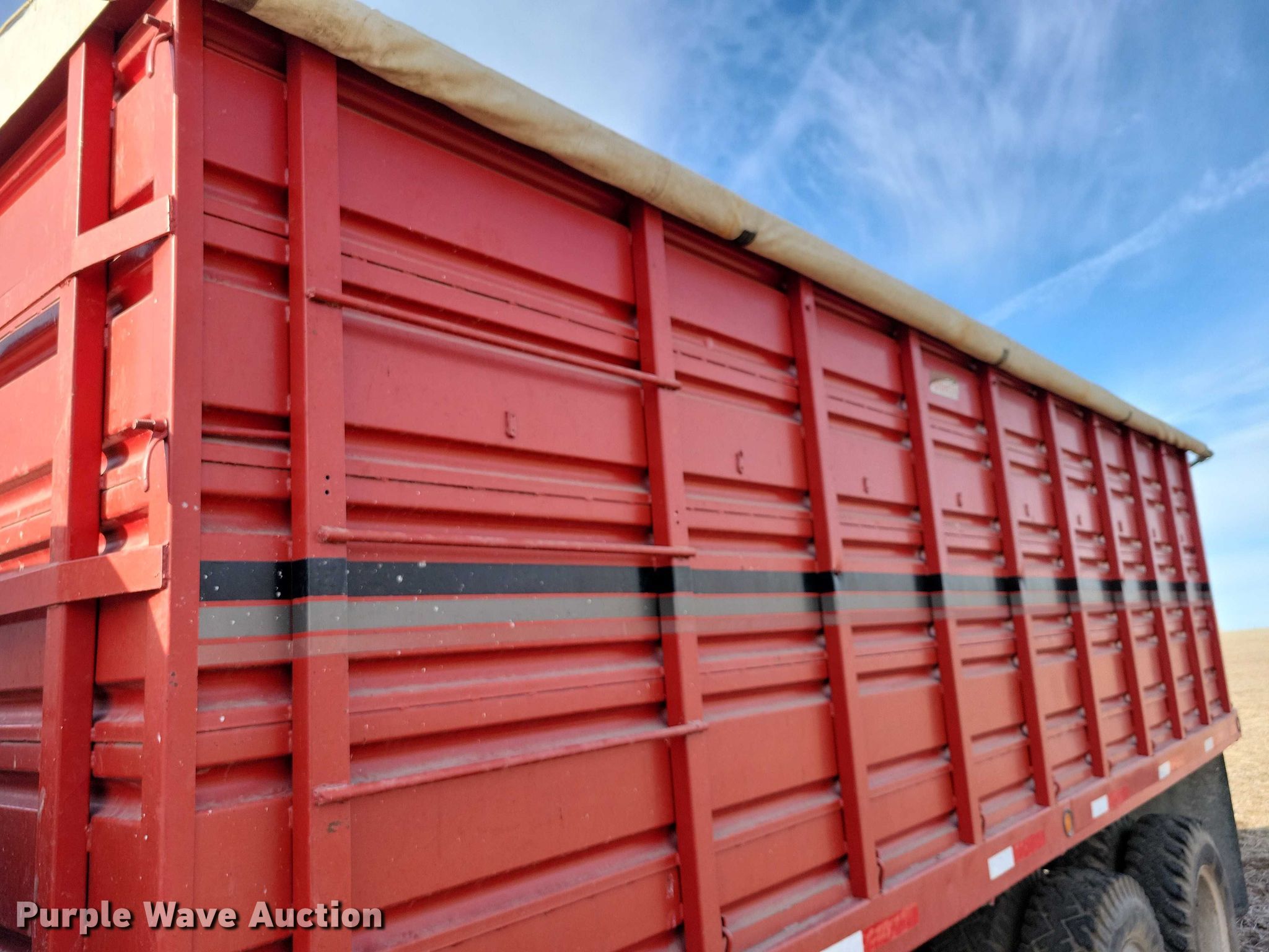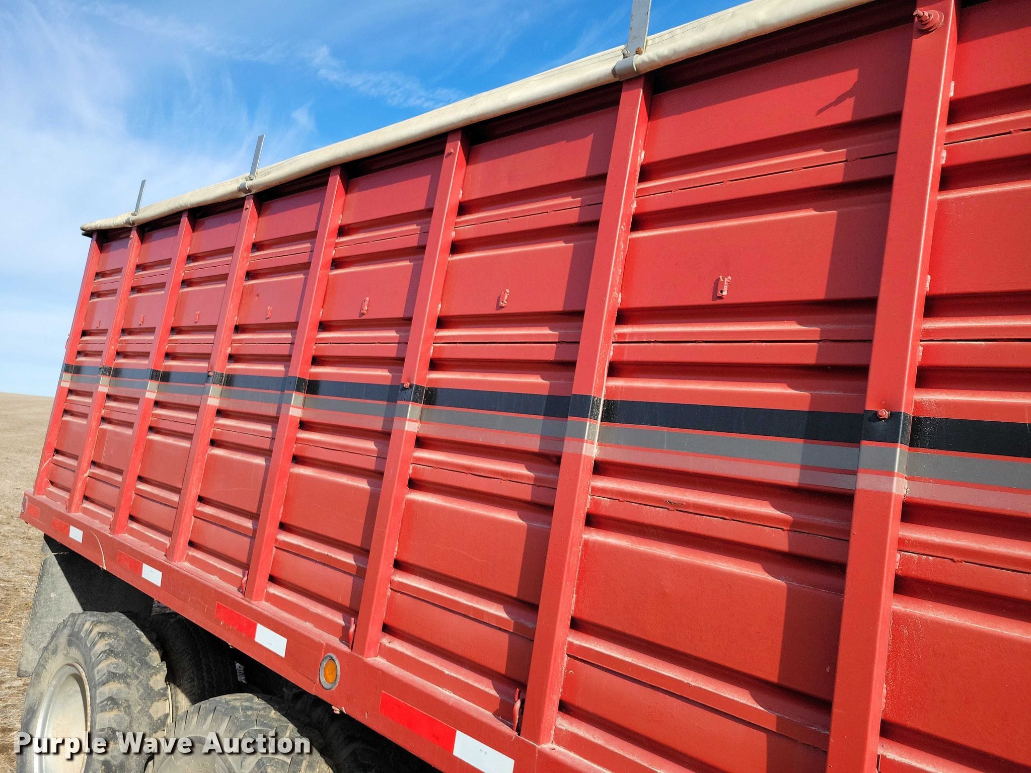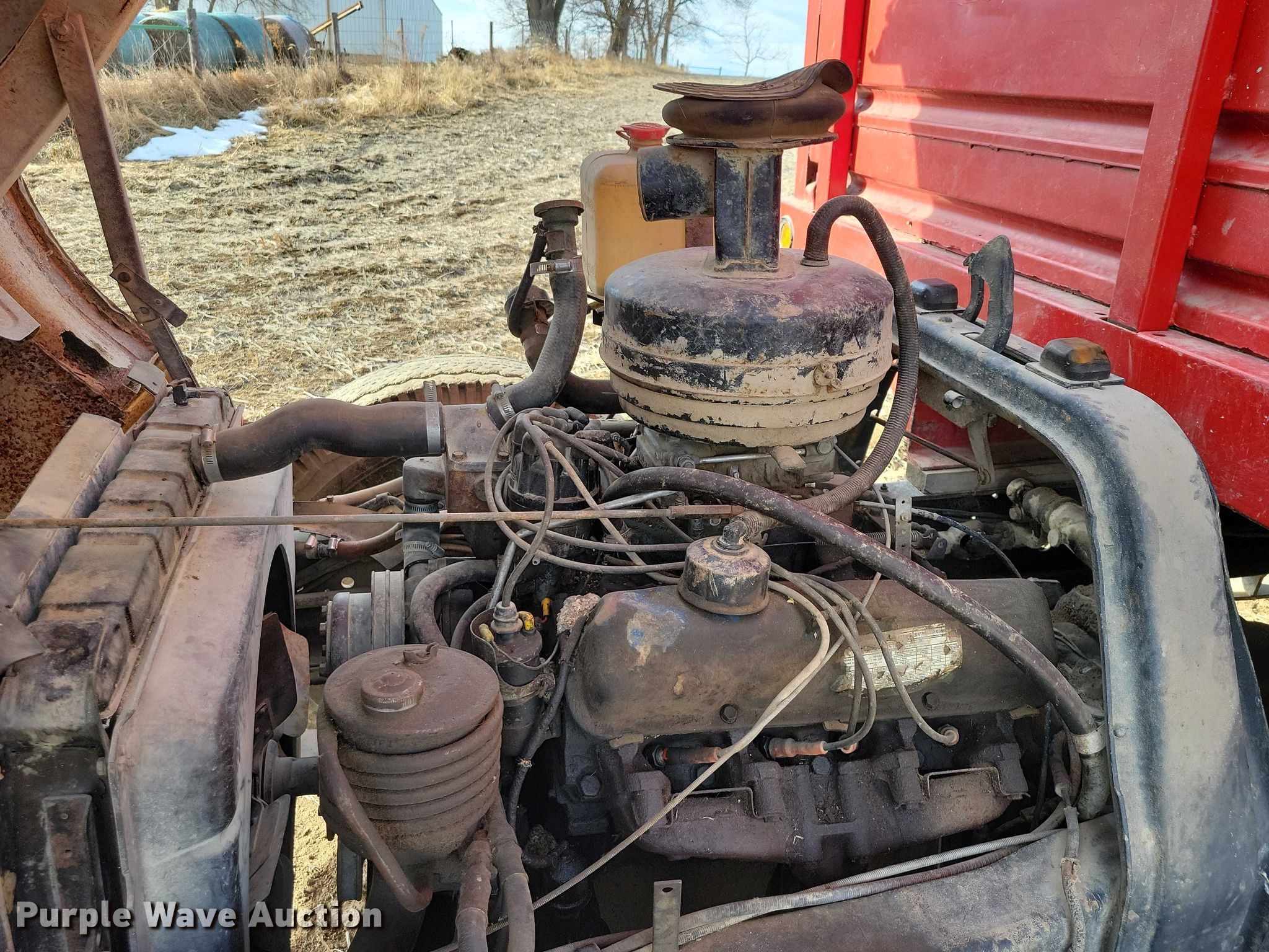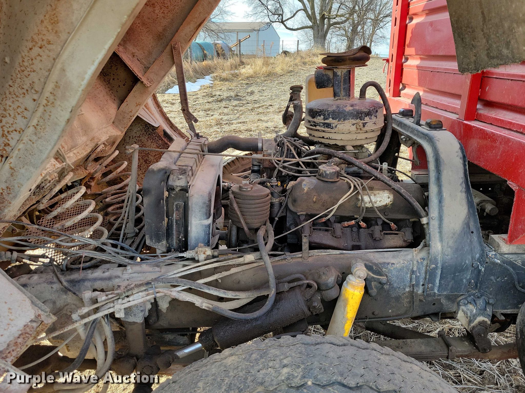 1975 Ford 750 grain truck. Miles: 3,072 on odometer, VIN: C70EVV54681. Engine Cylinders: 8, Fuel type: Gas. Transmission Manual, Speed: 5, plus 2. Chassis Axles: Tandem, Suspension: Spring, Brakes: Hydraulic, PTO, GVWR: 25,500 lbs, Wheelbase: 135". Interior Heat. Features Bed Dump bed, Obeco, Length: 20', Width: 94", Bed type: Steel, Roll tarp, Ram: Dual. Tires Size: 9-20. Notes CB will be removed prior to auction date, Seed auger mount not included, Non-operational unit, Unit must be towed or hauled. Iowa title. Title distribution may be delayed up to 14 days from verification of funds. Behnken Farms. Massena, IA 50853