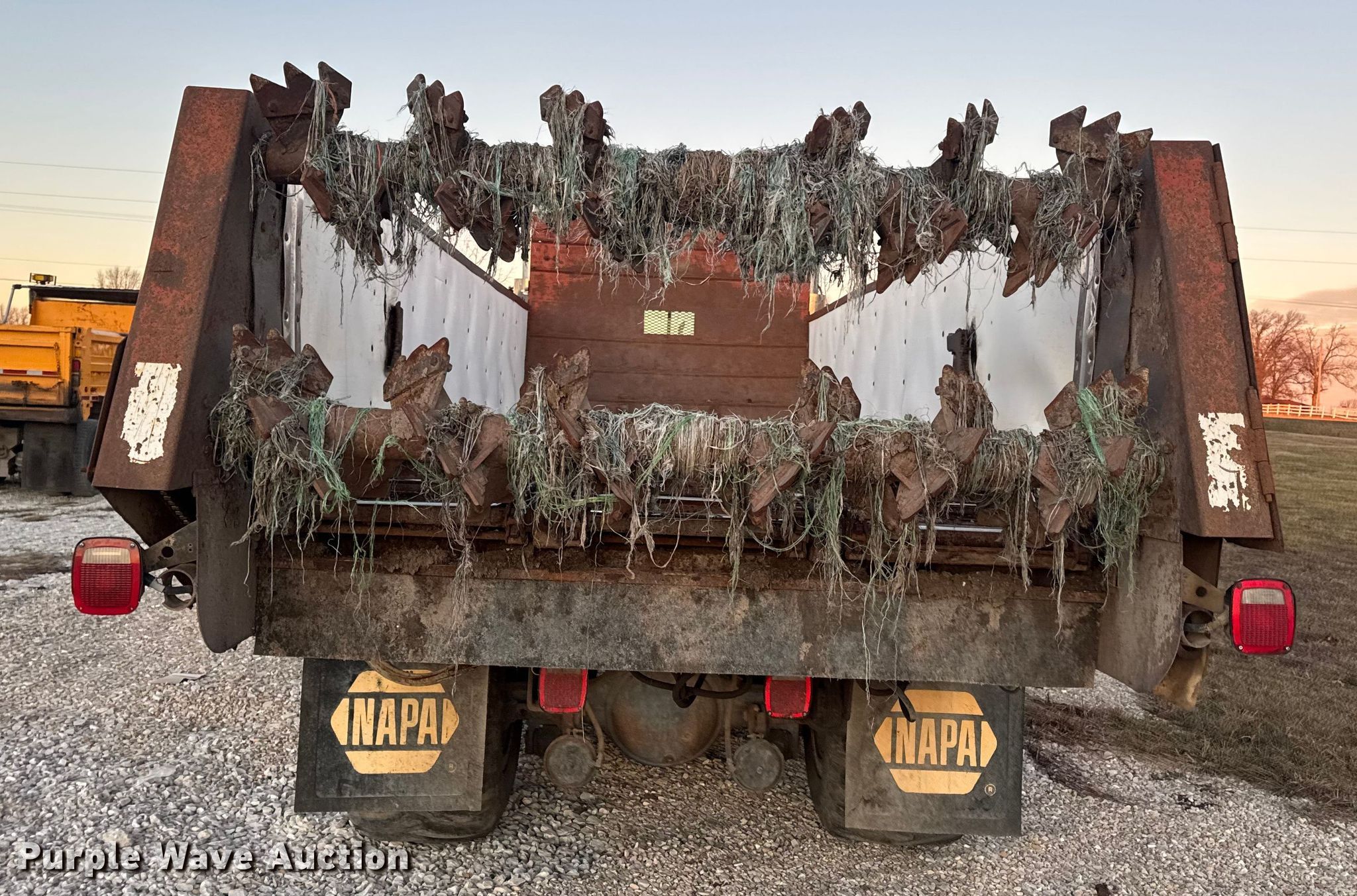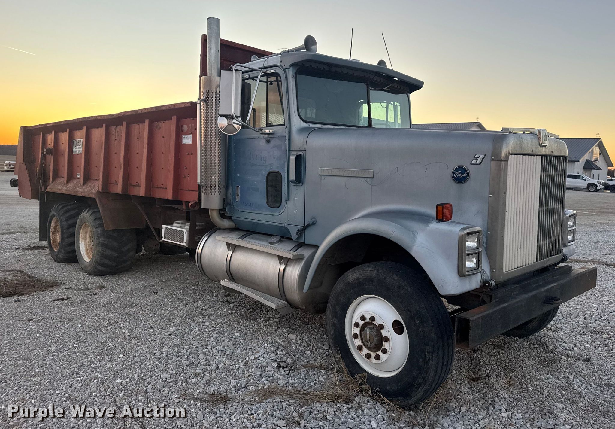This 1986 International F-9370 manure spreader truck will sell to the highest bidder regardless of price.