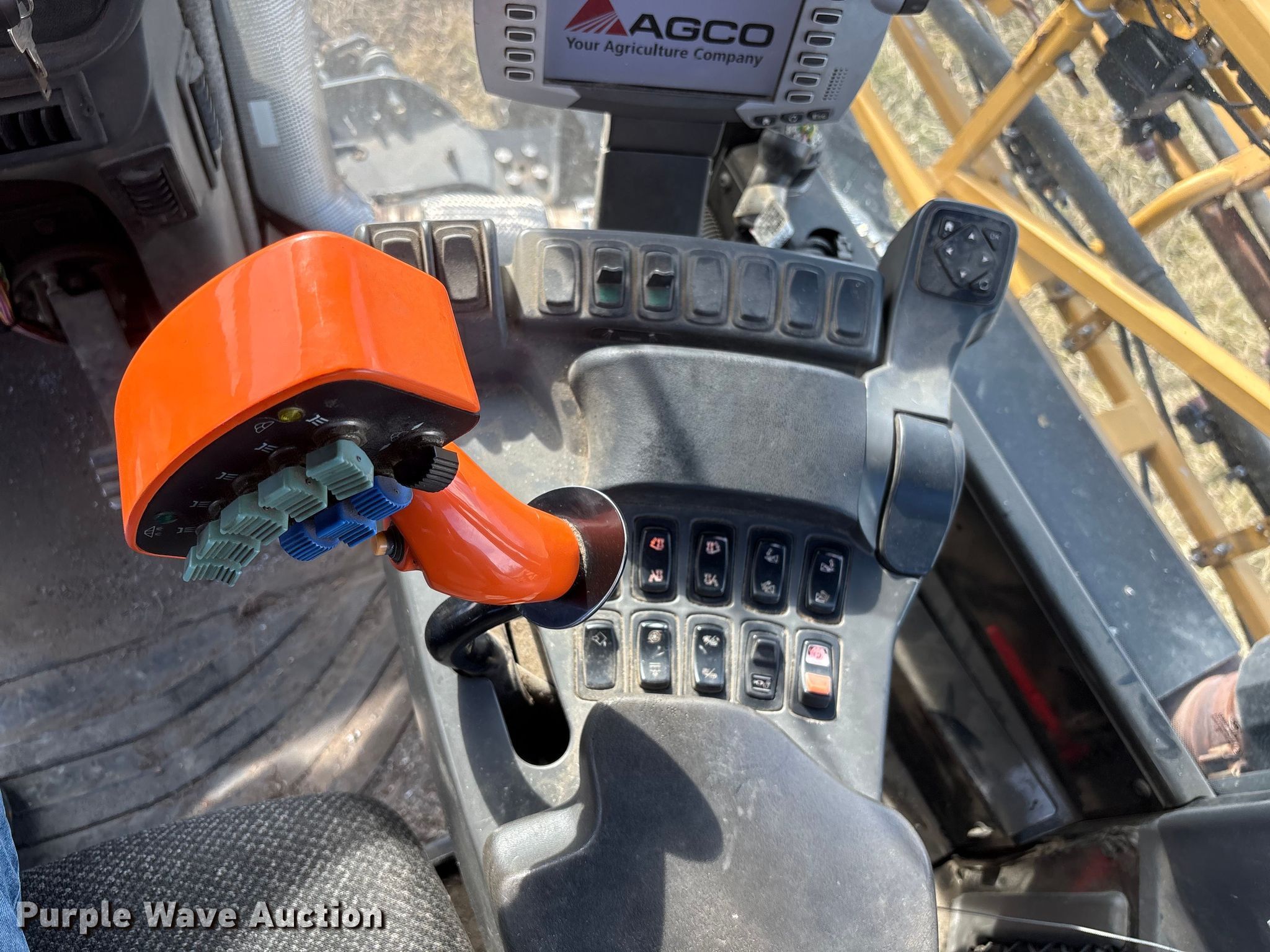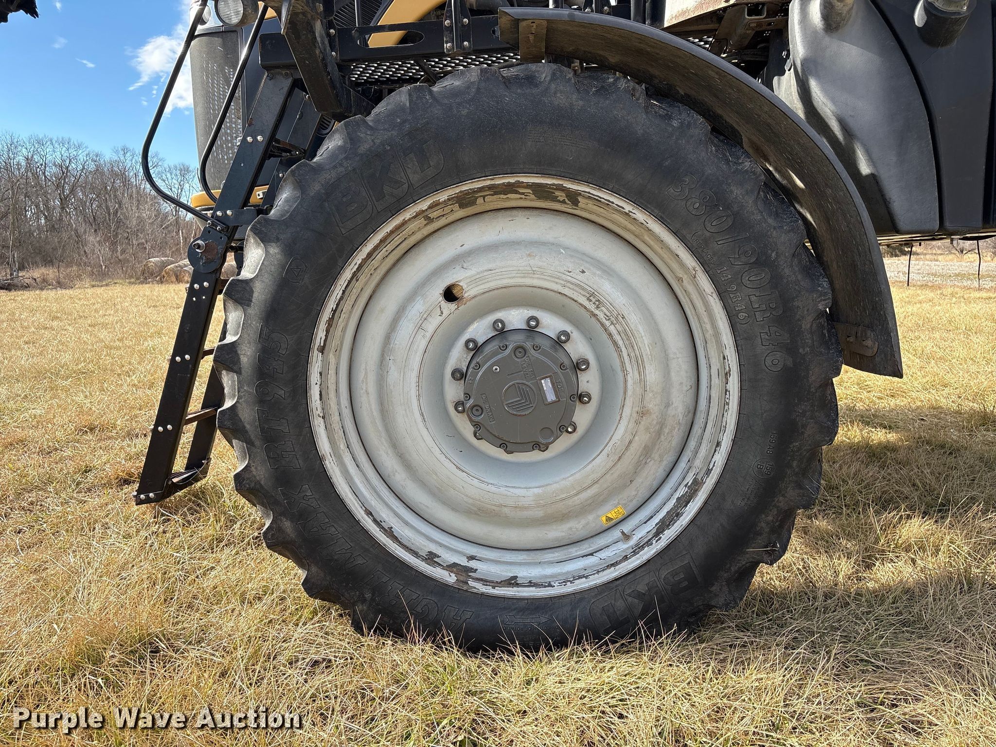 2013 Rogator RG900 sprayer. Engine hours: 6,774 on meter, Serial: AGCA0900HDNSL1102. Engine AGCO Sisu Power 84AWI 715, Serial: Z01238, Displacement: 8.4L, Cylinders: 6, Fuel type: Diesel. Transmission Hydrostatic, Four wheel drive. Chassis Hydraulic axle width adjust. Operators station AC, Heat. Features Hydraulic ladder, Solution tank Capacity: 1,100 gallons, Type: Stainless Steel, Chemical eductor Type: Poly, Rinse tank Capacity: 150 gallons, Clean water tank, Boom Width: 100', Sections: 5, Boom breakaway, Hydraulic boom fold, Hydraulic height control, Nozzle Spacing: 20", Make: AGCO, Nozzle bodies: 5-way, Electronics GPS monitor Ag Leader, GPS receiver, Spray controls, Ground radar. Tires Size: 380/90R46, Row crop tires. Notes Float tires and wheels included Size: 650/65R38. MFA Ag Inc. Bethany, MO 64424
