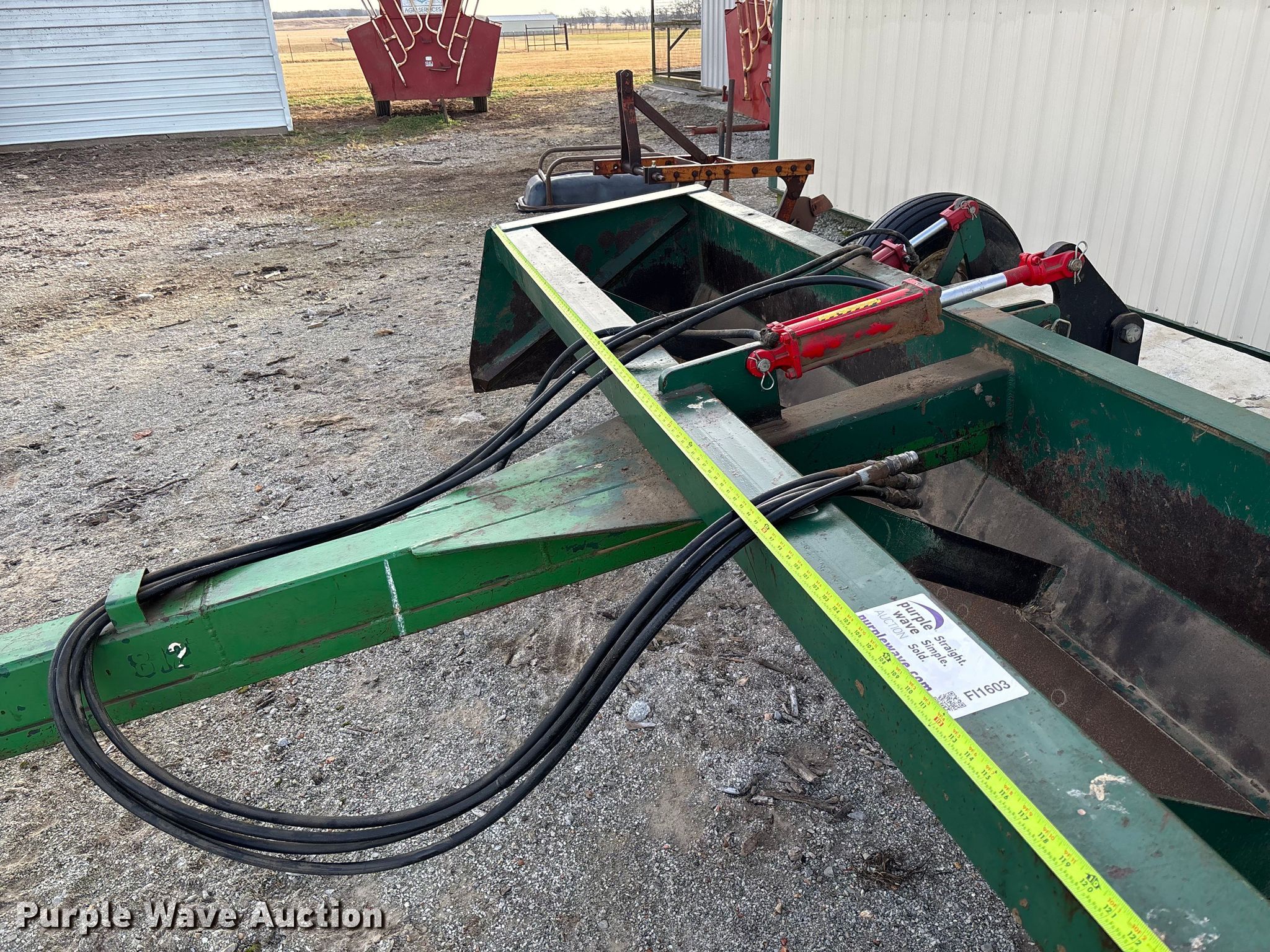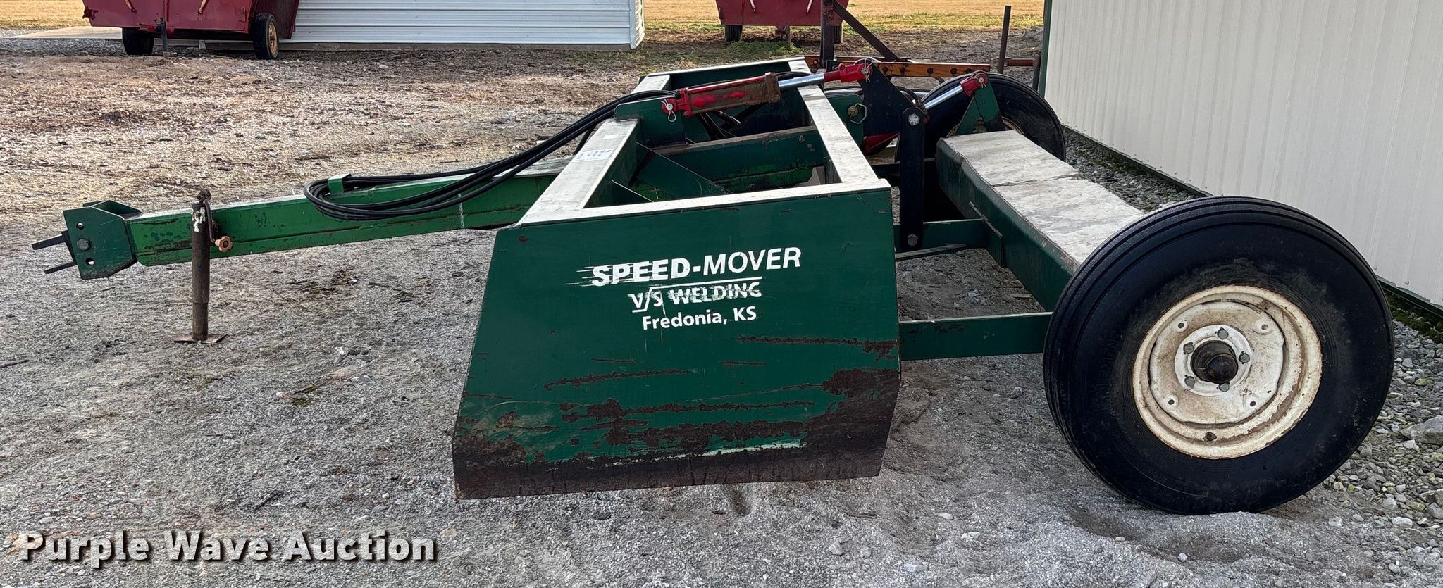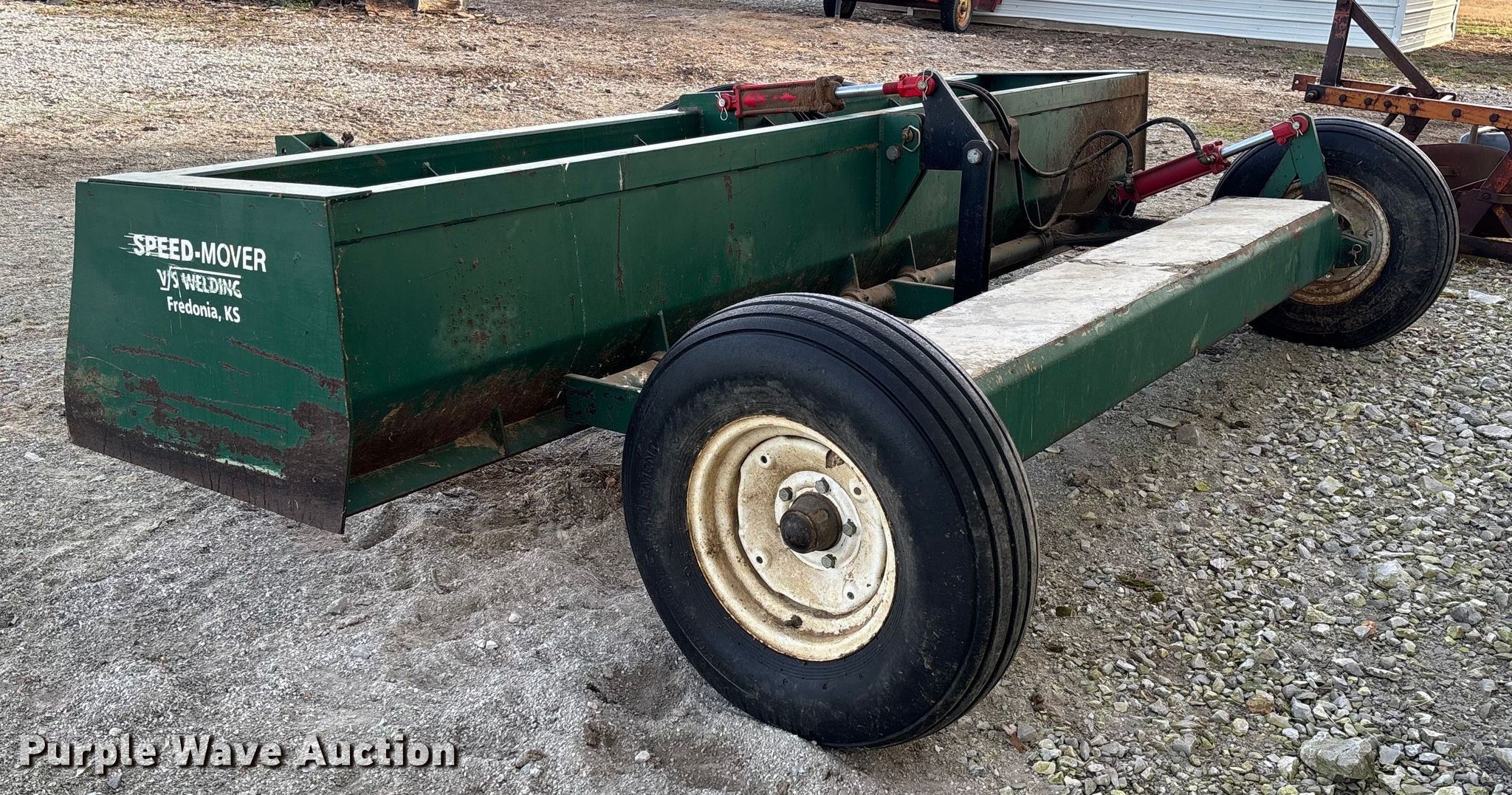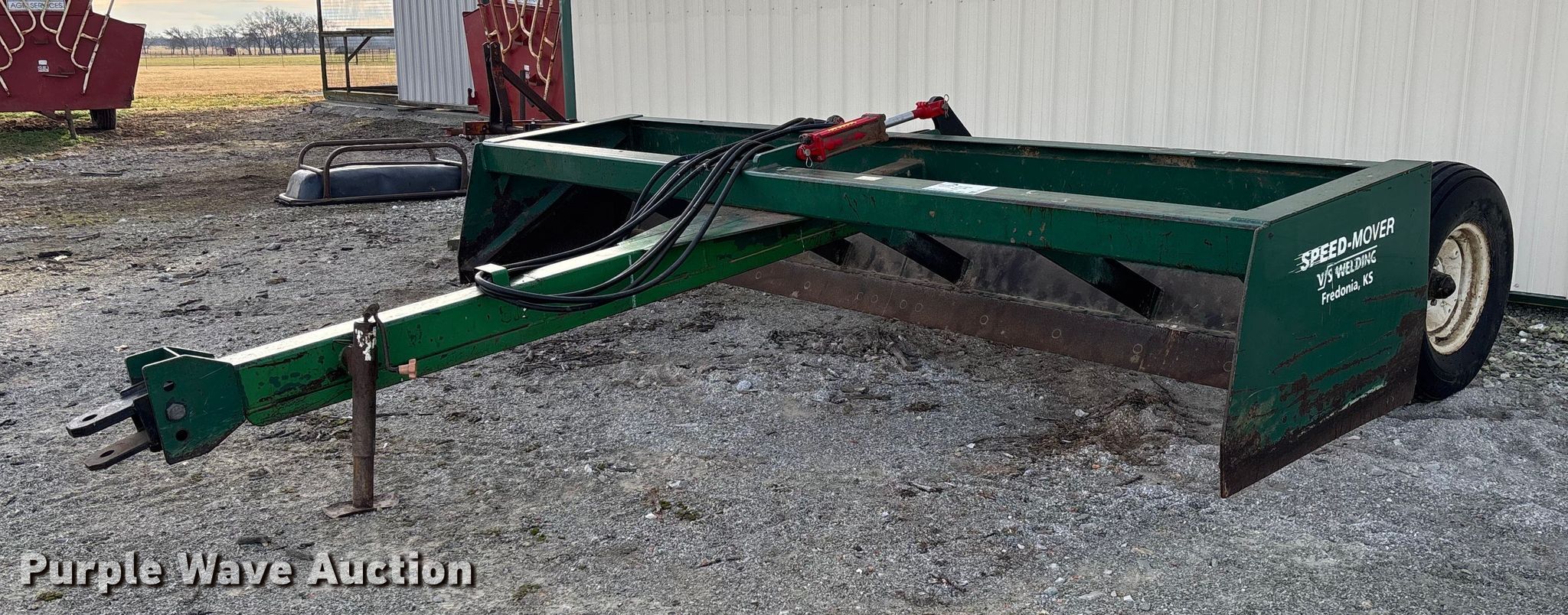 Purple Wave is selling a used Pull Type Scraper in Oklahoma. This item is a J&W box blade with the following: Hydraulic lift, Hitch: Pin, Width: 12'