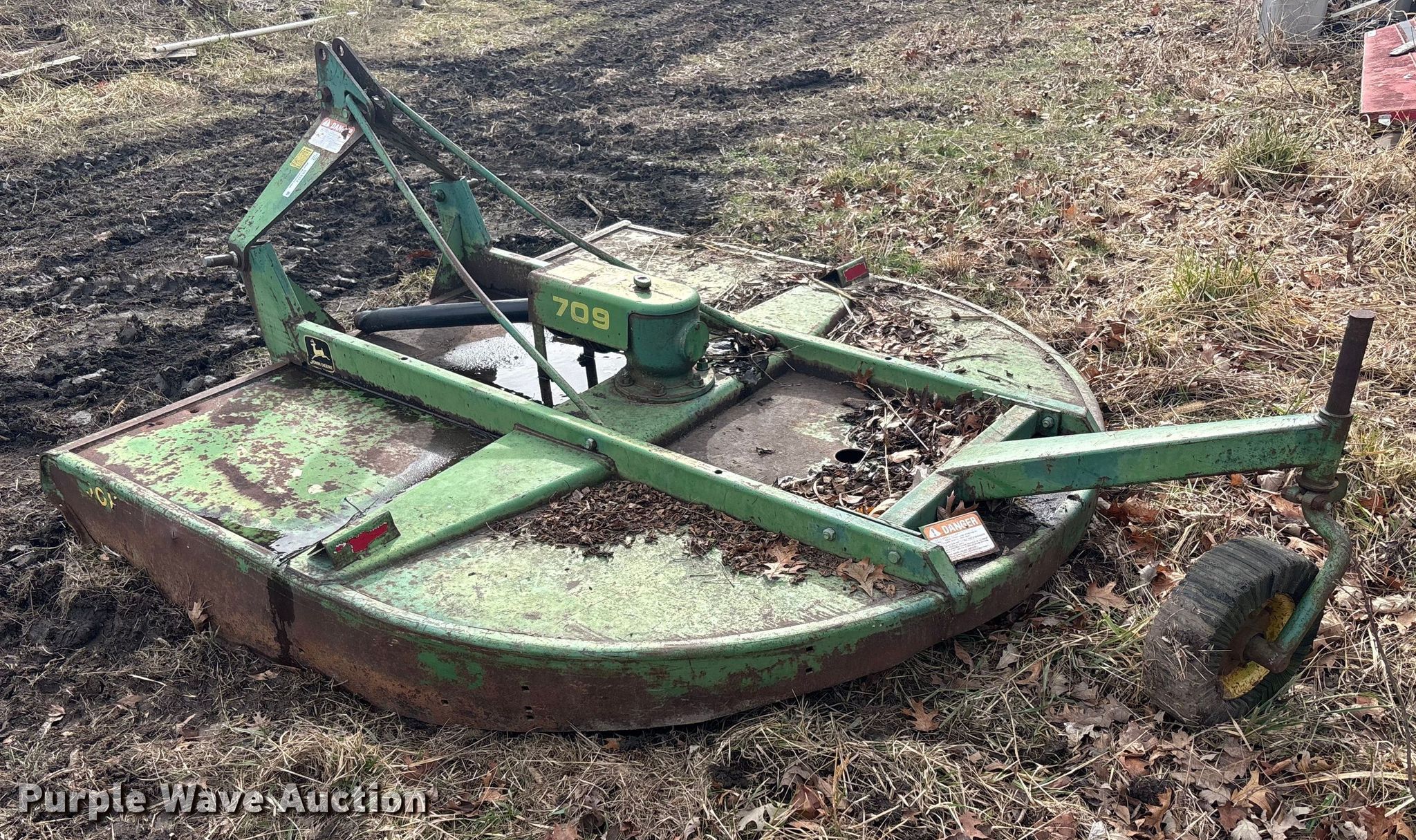 Purple Wave is selling a used Mower, Cutter, Shredder in Kansas. This item is a John Deere 709 rotary mower with the following: Width: 7', PTO: 540, Hitch: Three point