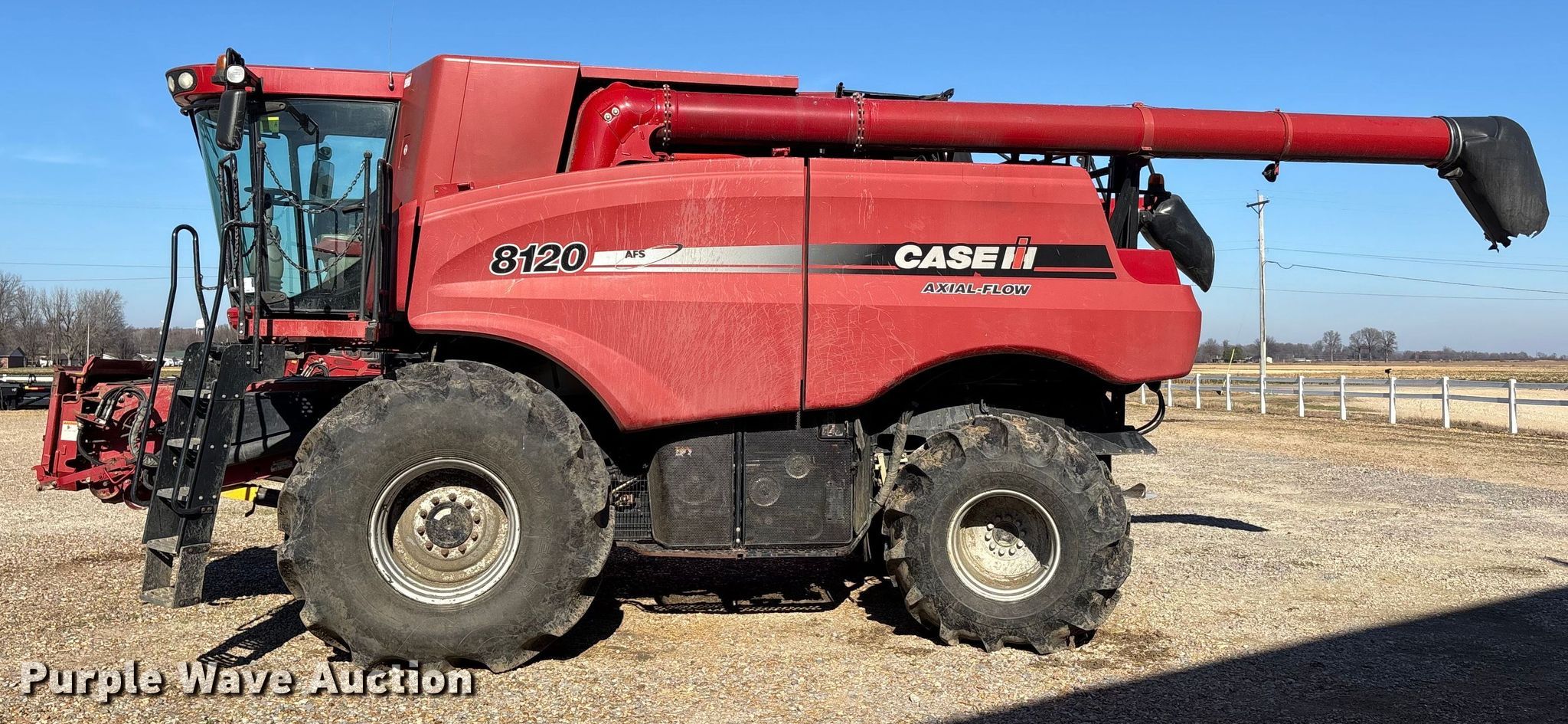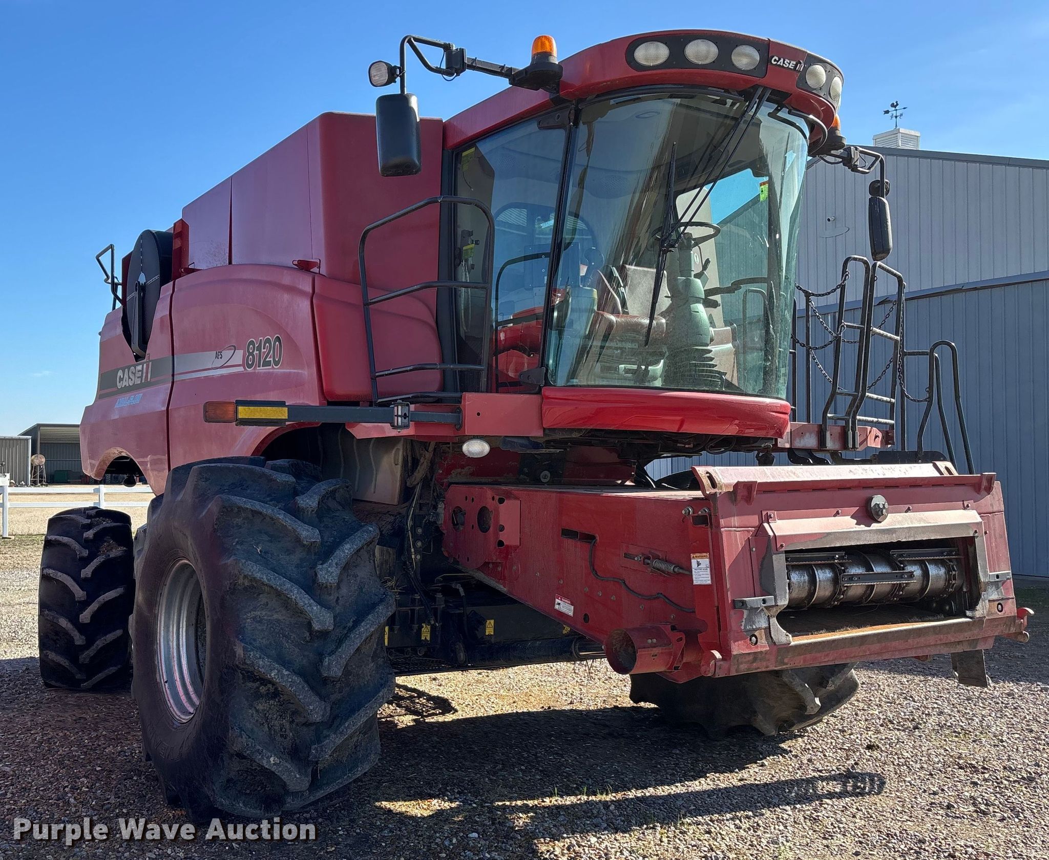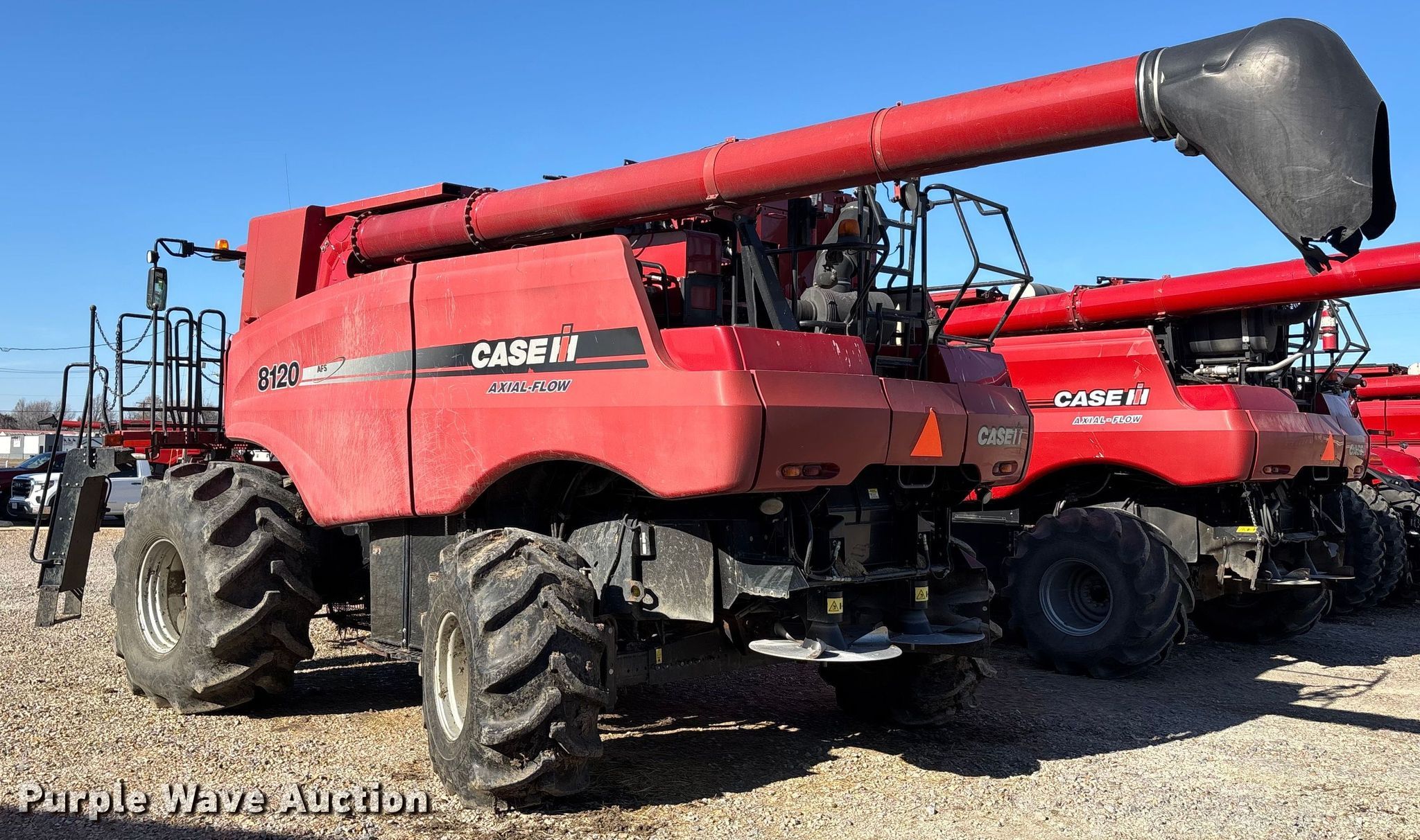 Purple Wave is selling a used Combine in Missouri. This item is a 2011 Case IH 8120 RWA combine with the following: Engine hours: 3,080 on meter, Separator hours: 2,288 on meter, Serial: YAG210455, Unit #: 97602675