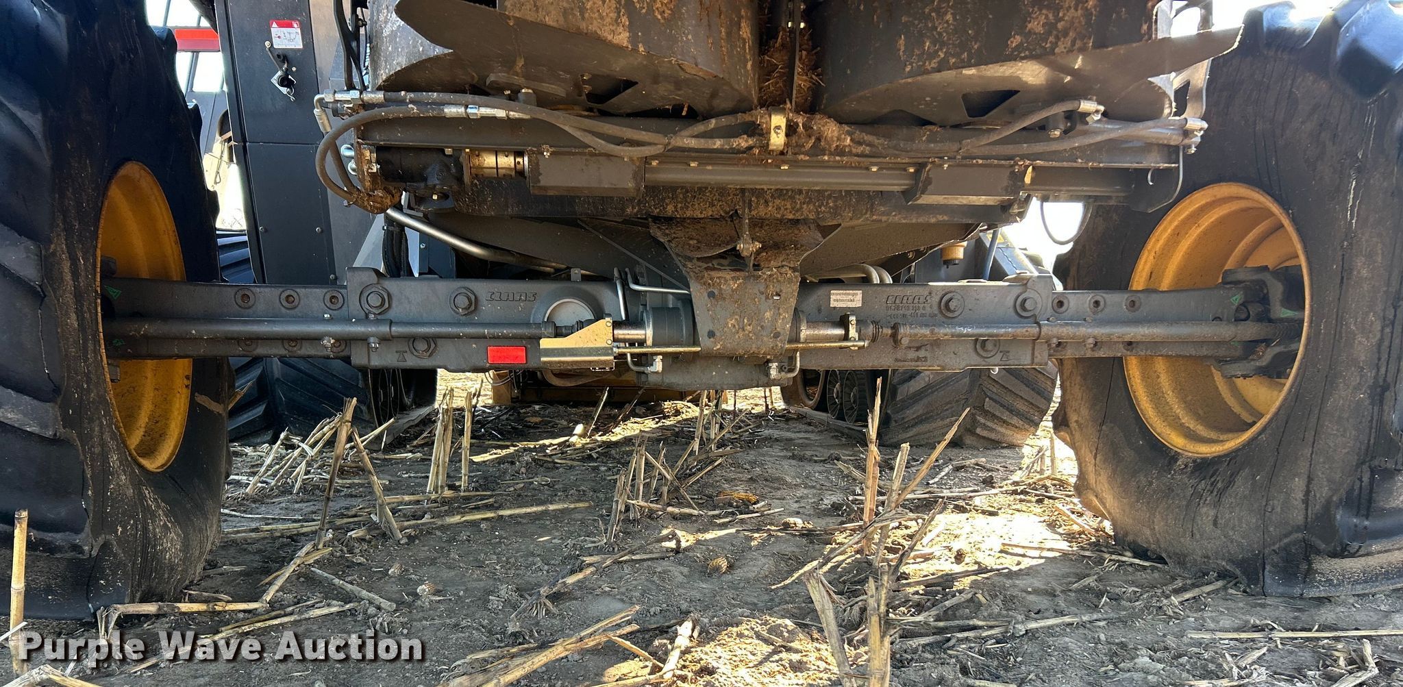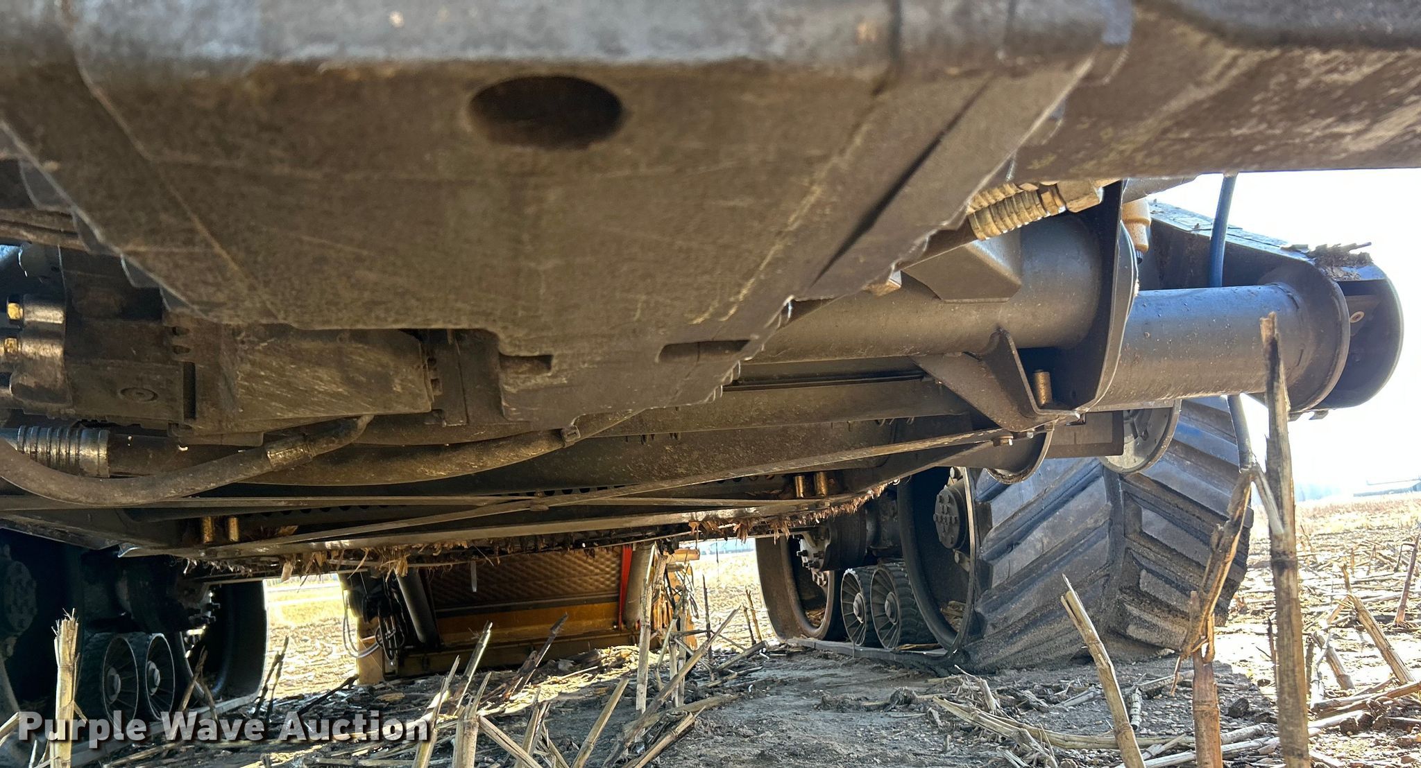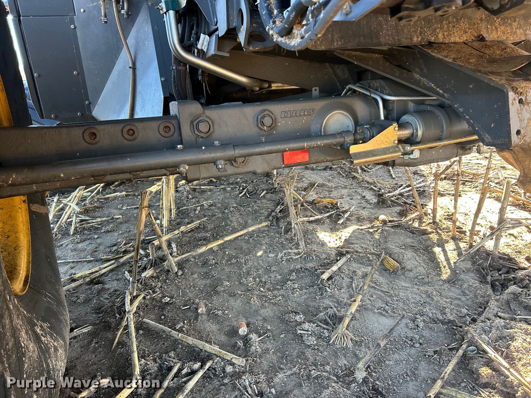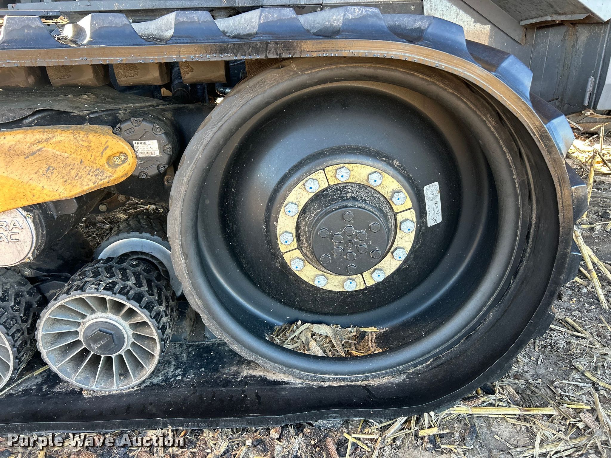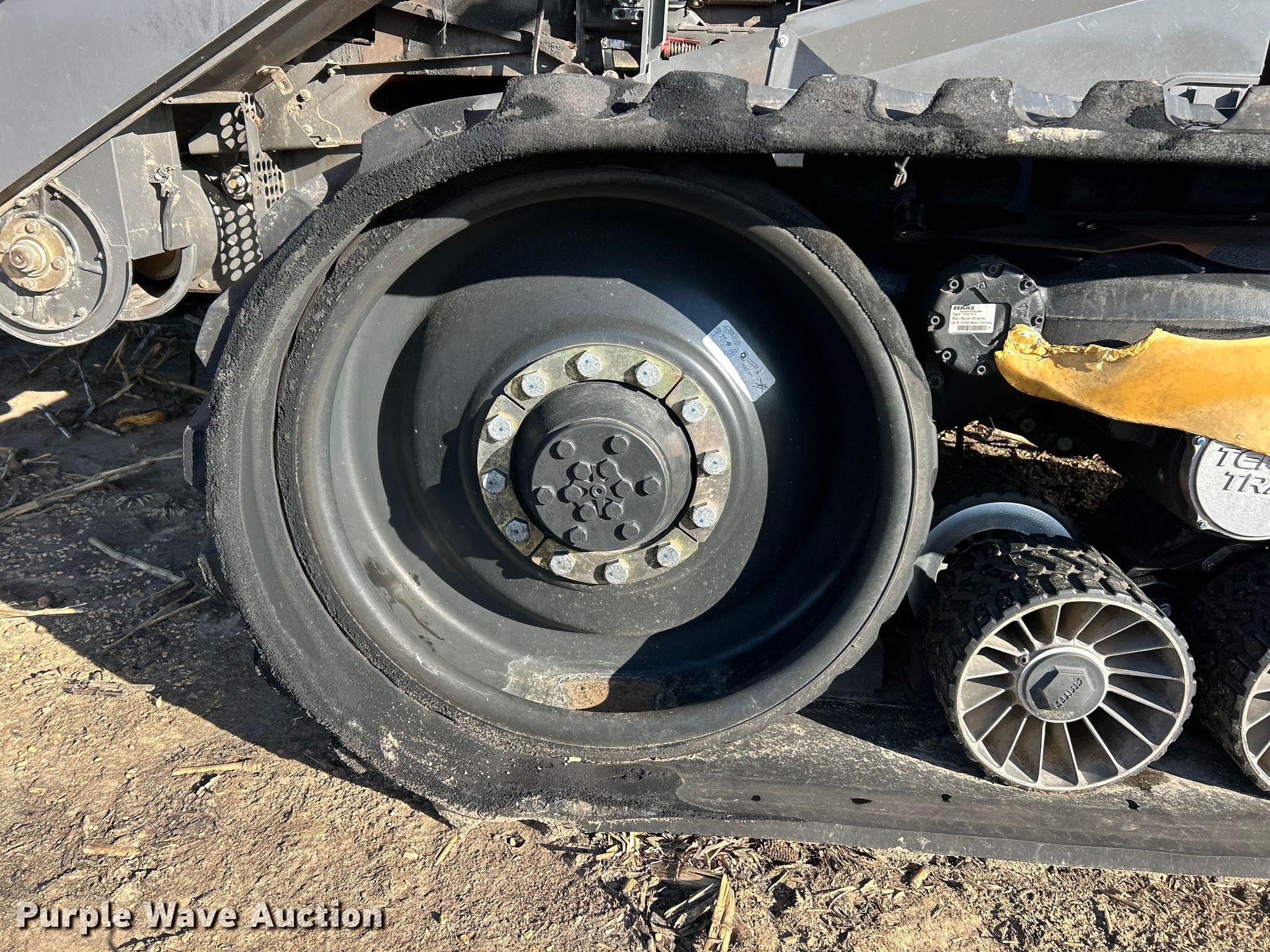 Claas Lexion 740 combine. Hours: Unknown, Serial: C7800516, Unit #: 96543065. Engine Caterpillar C13, Displacement: 12.5L, Cylinders: 6, Fuel type: Diesel. Transmission Hydrostatic. Chassis Differential lock. Operators station AC, Heat, Display, Auto steer. Features Single point header coupler, Feederhouse: Lateral tilt, Reverser, Multi-speed, Concaves: Round, Chaff spreader, Bin: Power folding bin, Unloading auger length: 29'. Tires Rear: 750/65R26. Tracks Width: 35", Rubber. Notes Burn damage, Non-operational unit. Insurance Salvage. Franklin, IL 62638