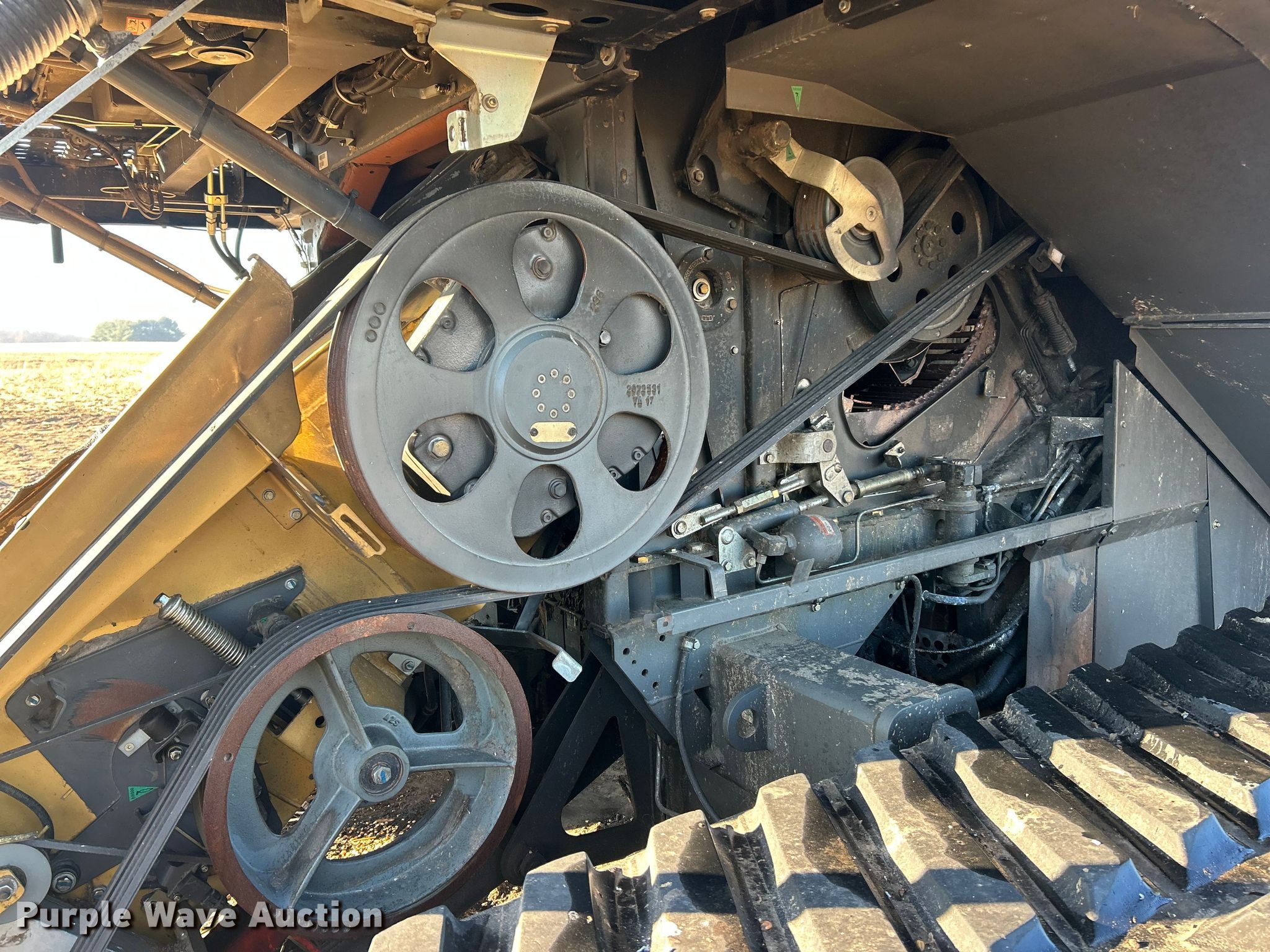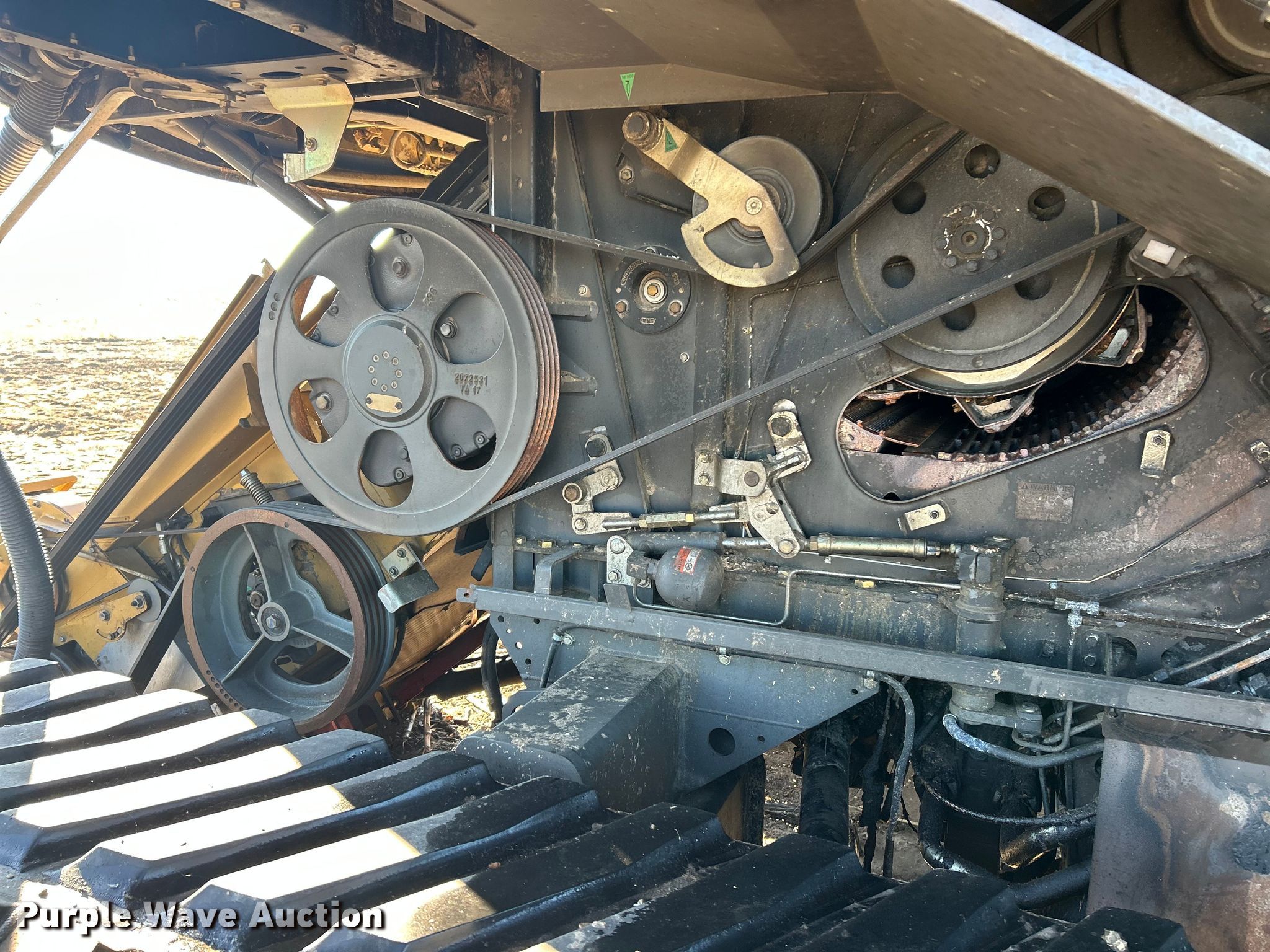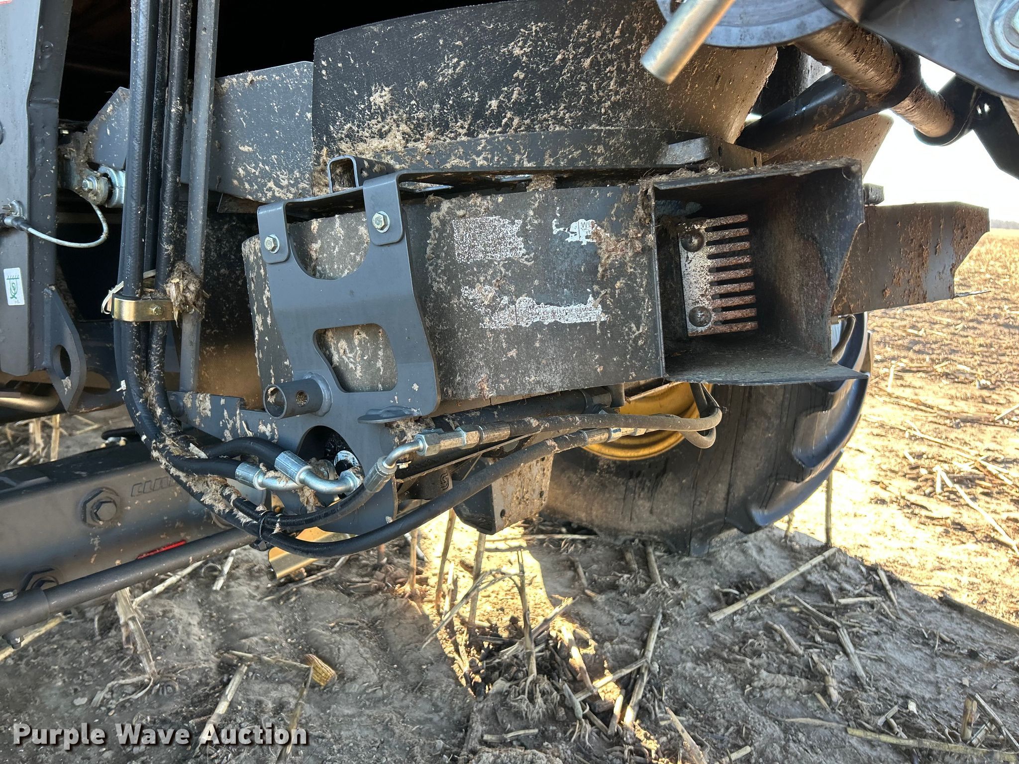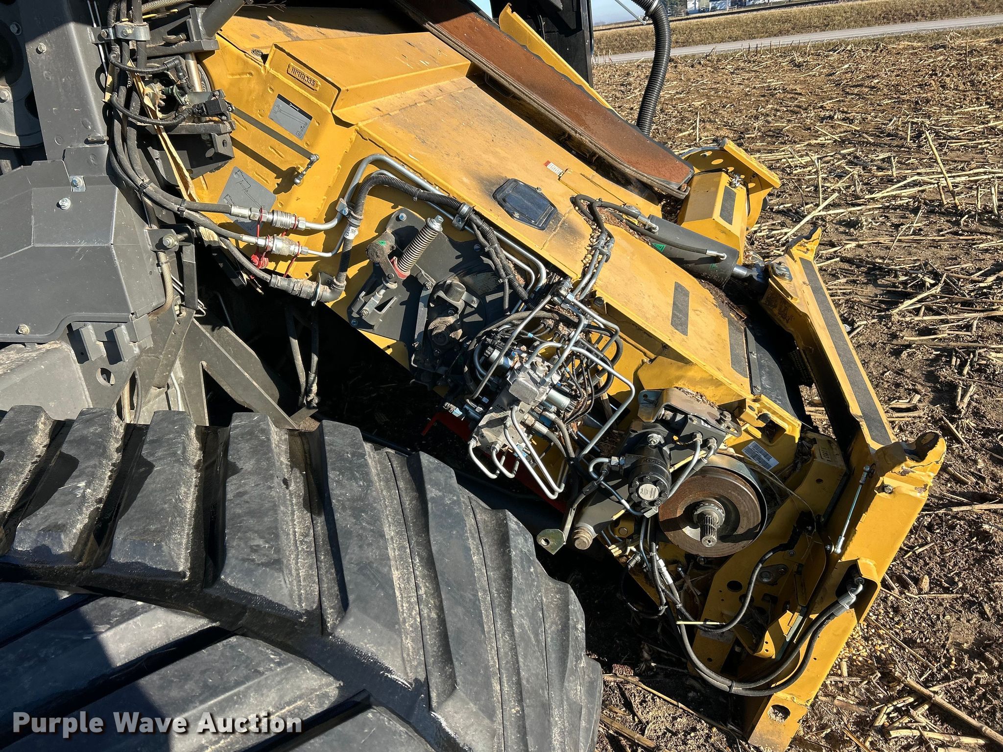 Claas Lexion 740 combine. Hours: Unknown, Serial: C7800516, Unit #: 96543065. Engine Caterpillar C13, Displacement: 12.5L, Cylinders: 6, Fuel type: Diesel. Transmission Hydrostatic. Chassis Differential lock. Operators station AC, Heat, Display, Auto steer. Features Single point header coupler, Feederhouse: Lateral tilt, Reverser, Multi-speed, Concaves: Round, Chaff spreader, Bin: Power folding bin, Unloading auger length: 29'. Tires Rear: 750/65R26. Tracks Width: 35", Rubber. Notes Burn damage, Non-operational unit. Insurance Salvage. Franklin, IL 62638