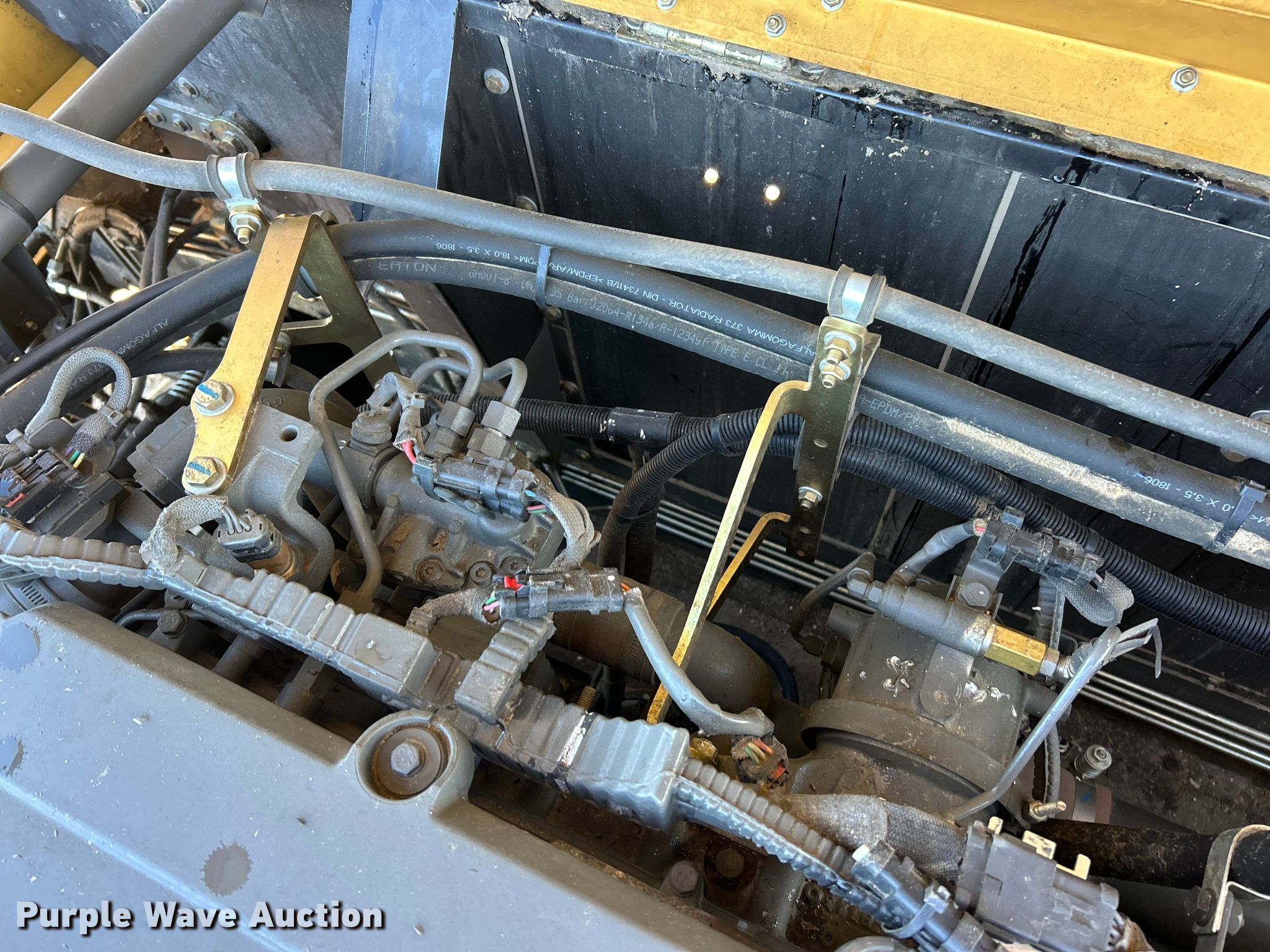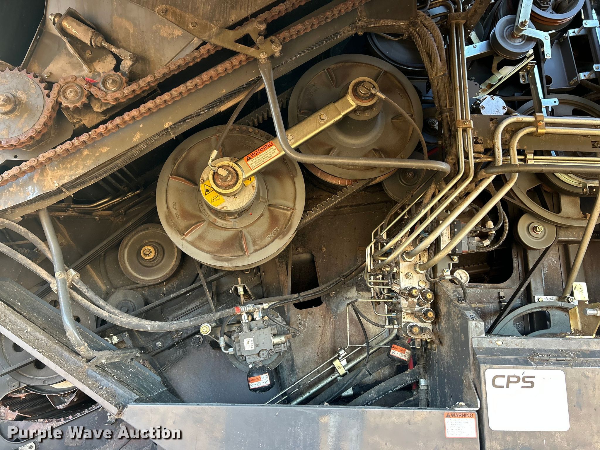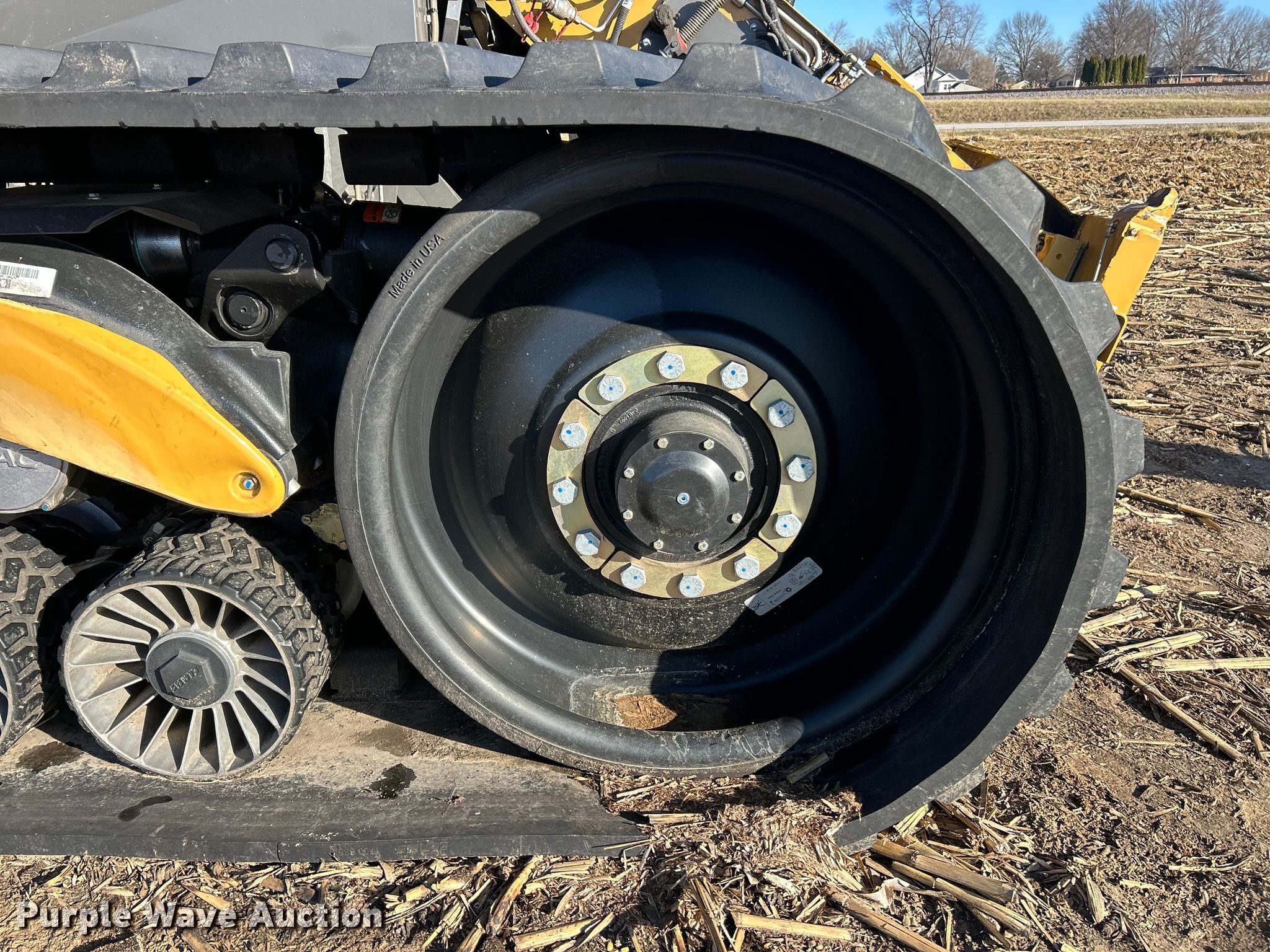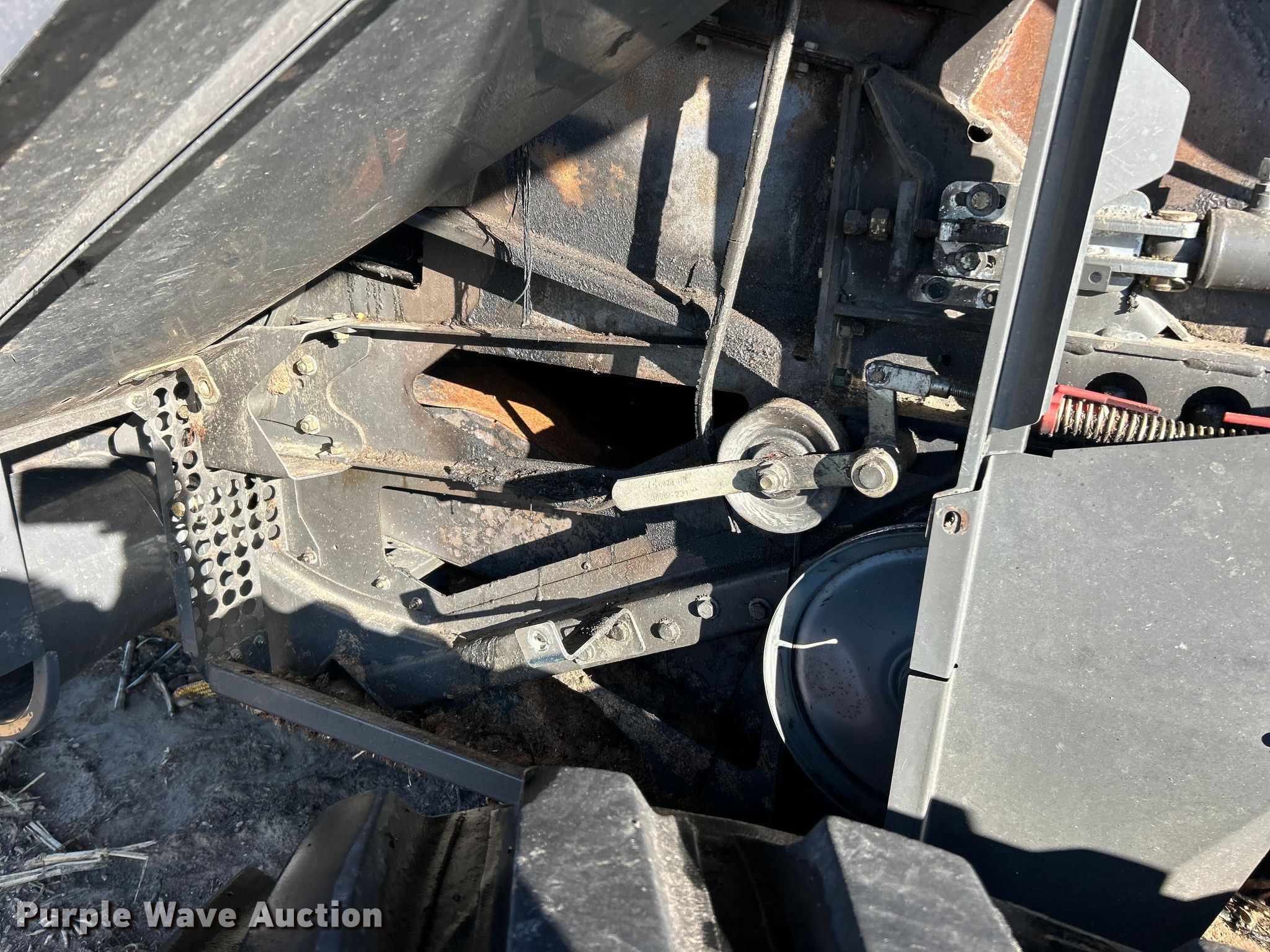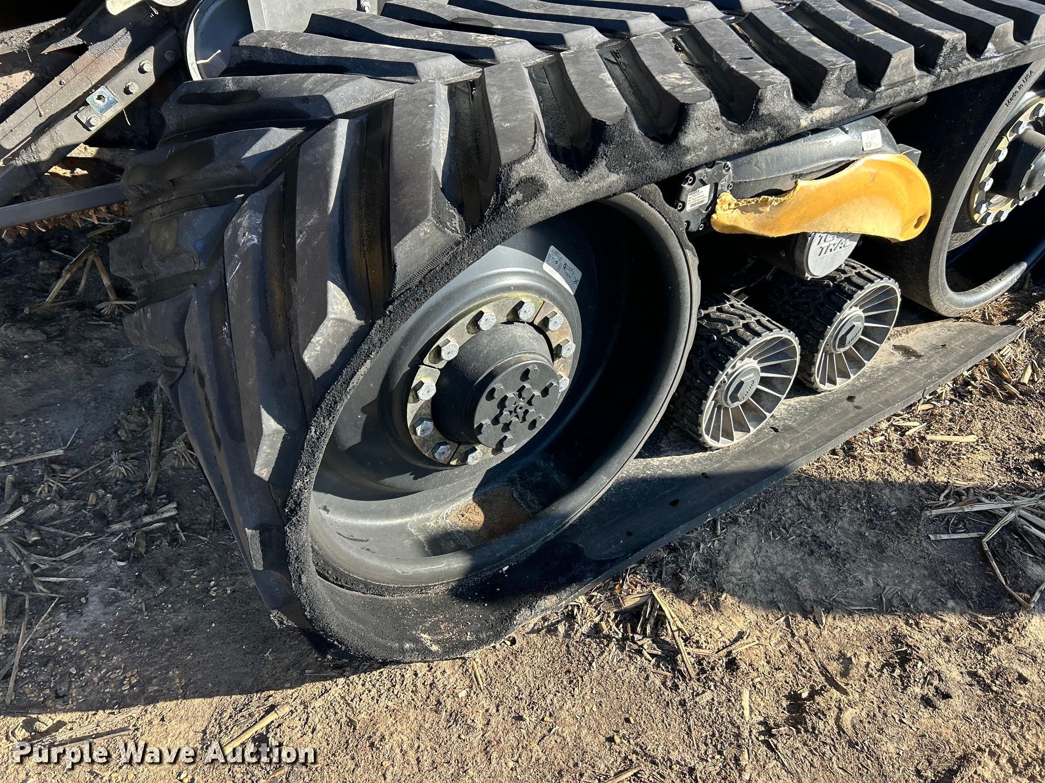 Claas Lexion 740 combine. Hours: Unknown, Serial: C7800516, Unit #: 96543065. Engine Caterpillar C13, Displacement: 12.5L, Cylinders: 6, Fuel type: Diesel. Transmission Hydrostatic. Chassis Differential lock. Operators station AC, Heat, Display, Auto steer. Features Single point header coupler, Feederhouse: Lateral tilt, Reverser, Multi-speed, Concaves: Round, Chaff spreader, Bin: Power folding bin, Unloading auger length: 29'. Tires Rear: 750/65R26. Tracks Width: 35", Rubber. Notes Burn damage, Non-operational unit. Insurance Salvage. Franklin, IL 62638