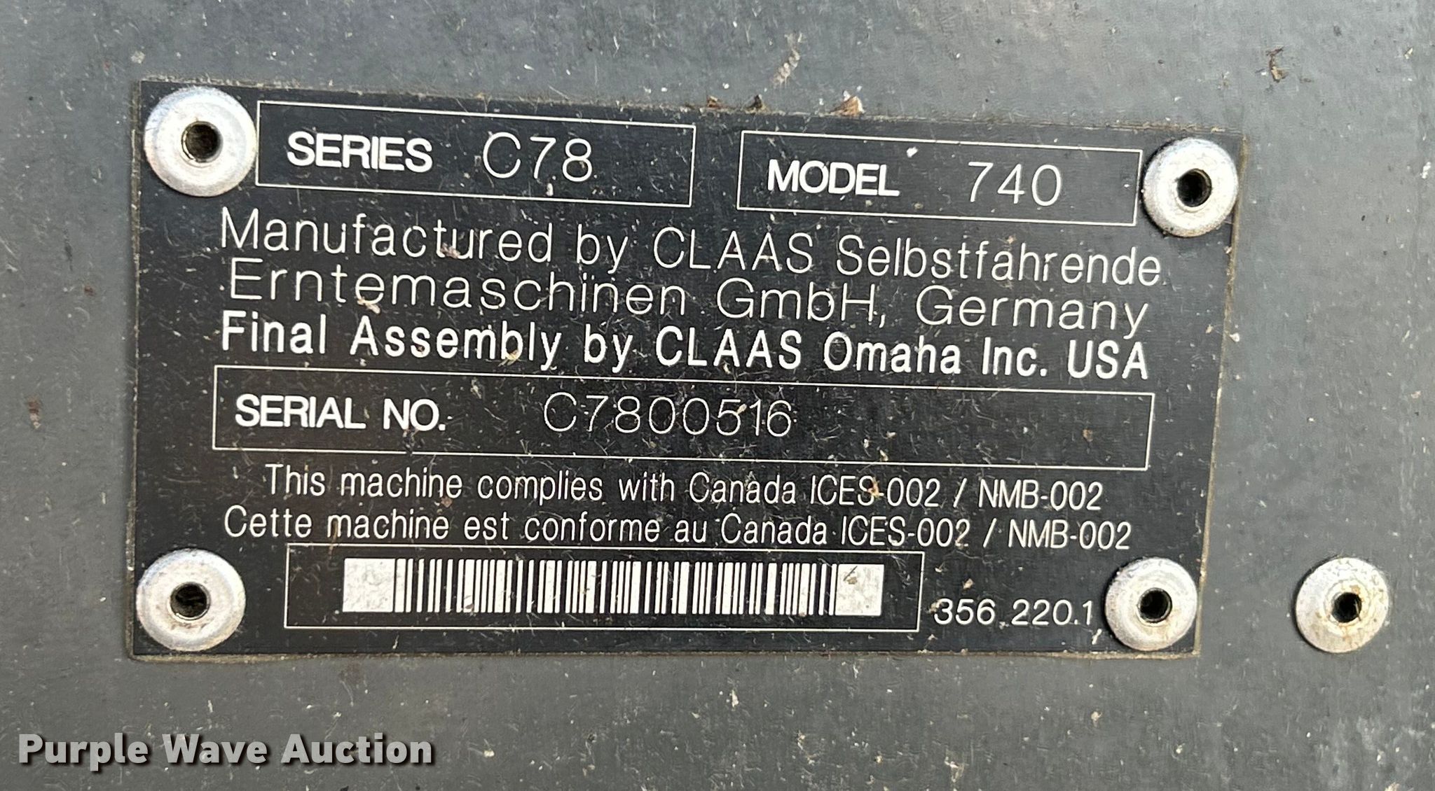 Purple Wave is selling a used Combine in Illinois. This item is a Claas Lexion 740 combine with the following: Hours: Unknown, Serial: C7800516, Unit #: 96543065