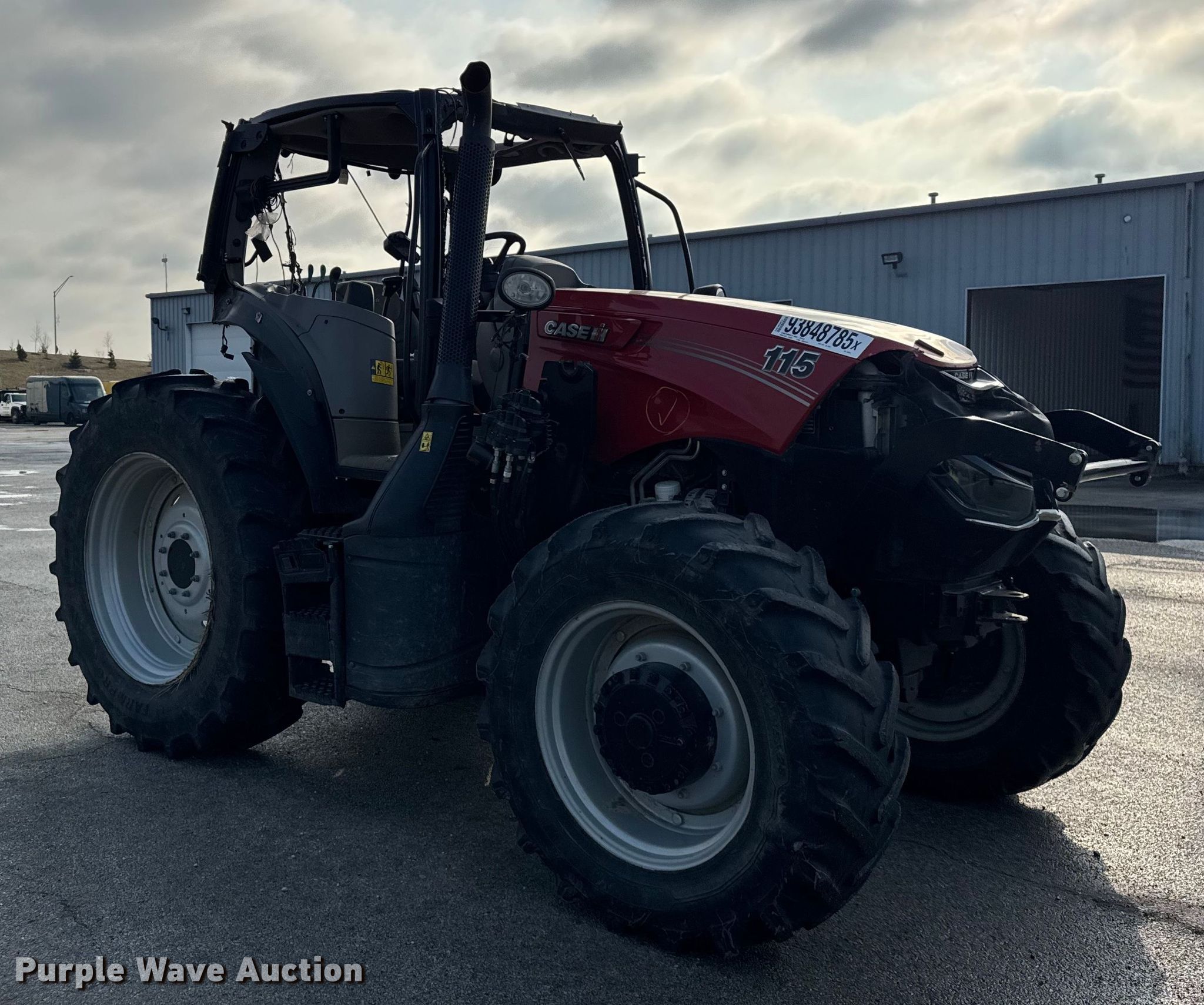 2023 Case IH MAXXUM 115 MFWD tractor. Hours: 1,294 on meter, Serial: HACMX115JPDH00544, Unit #: 93848785. Engine FPT F4DGE4132V, Serial: 002030990, Displacement: 4.5L, Cylinders: 4, Fuel type: Diesel. Transmission Powershift, 16F - 16R, Left-hand reverser, Differential lock. Operators station AC, Heat. Features PTO: 1000, Seven pin outlet, Hydraulic remote sets Rear: 3, Loader ready, Loader Controls: Joystick. Tires Front: 380/85R28, Rear: 460/85R38. Notes Rollover damage, Non-operational throttle, Unknown operating condition of PTO, Park light illuminated, will not disengage. Insurance salvage, stored at a secured facility. Please review REQUIRED REMOVAL INSTRUCTIONS. Insurance Salvage. Dyer, IN 46311