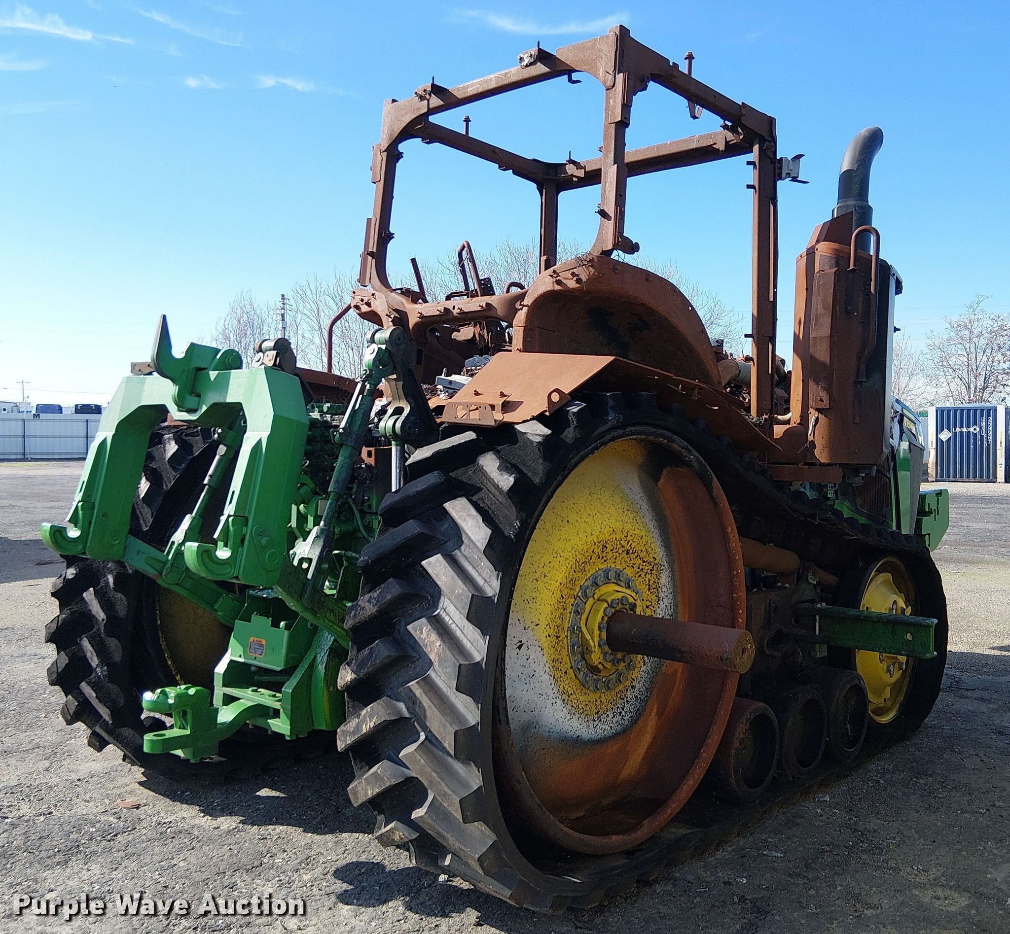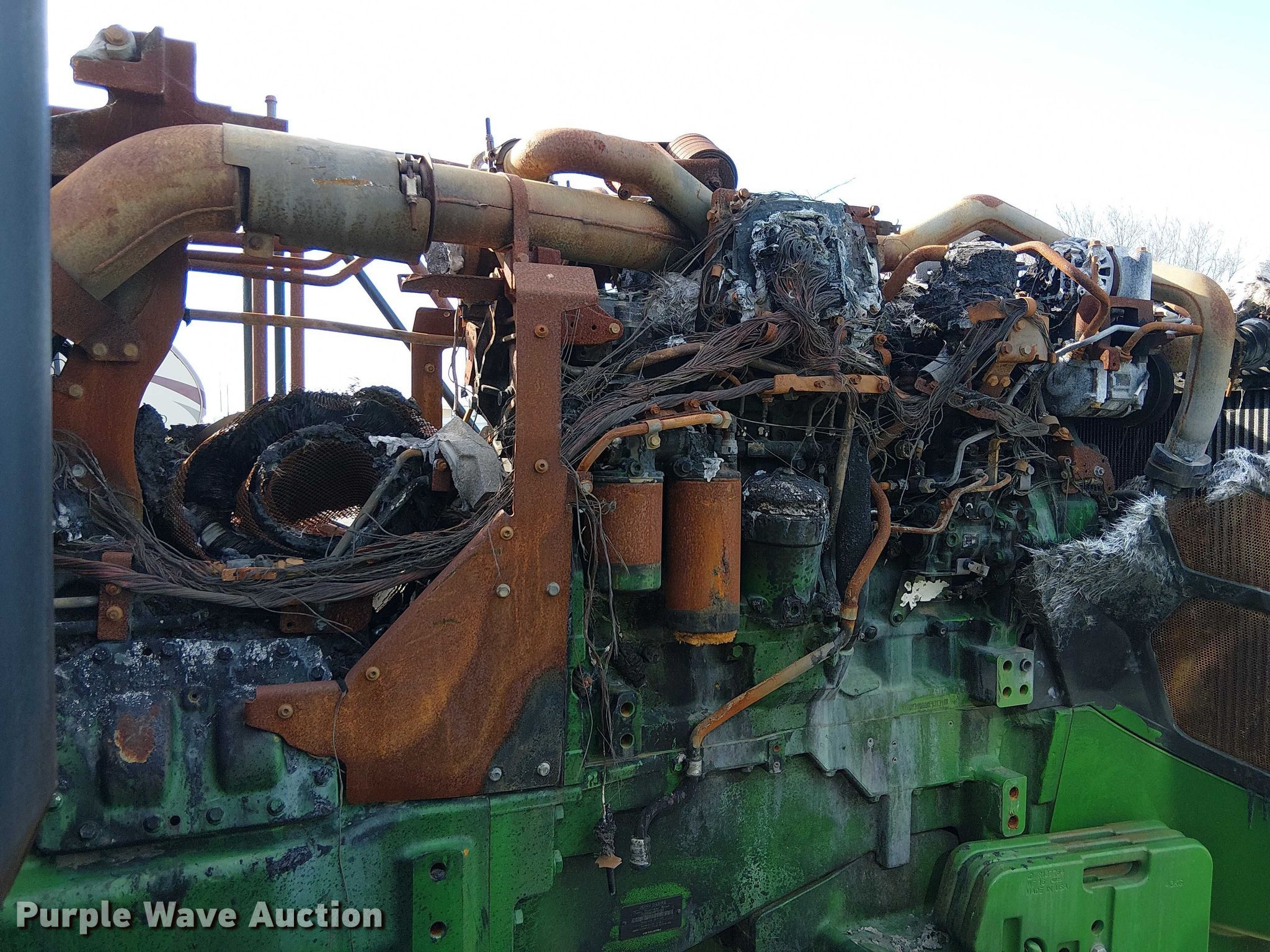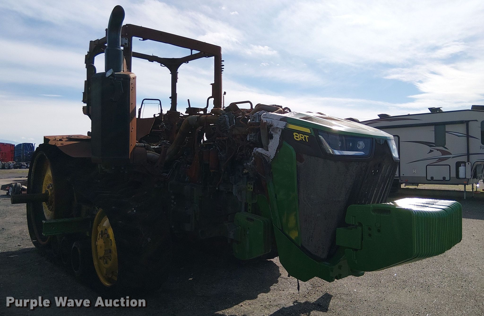 2024 John Deere 8RT 340 tractor. Hours: Unknown, Serial: 1RW8340DARF931348, Unit #: 97187145. Engine John Deere, Displacement: 9.0L, Cylinders: 6, Fuel type: Diesel. Transmission Powershift, 23F - 11R. Features PTO: 1 3/4" 1000, Three point Top link, Quick attach, Seven pin outlet, ISOBUS outlet, Hydraulic remote sets Rear: 4, Suitcase weights: 31. Tracks Width: 25". Notes Fire damage, Non-operational unit. Insurance salvage, stored at a secured facility. Please review REQUIRED REMOVAL INSTRUCTIONS. Insurance Salvage. Bakersfield, CA 93307