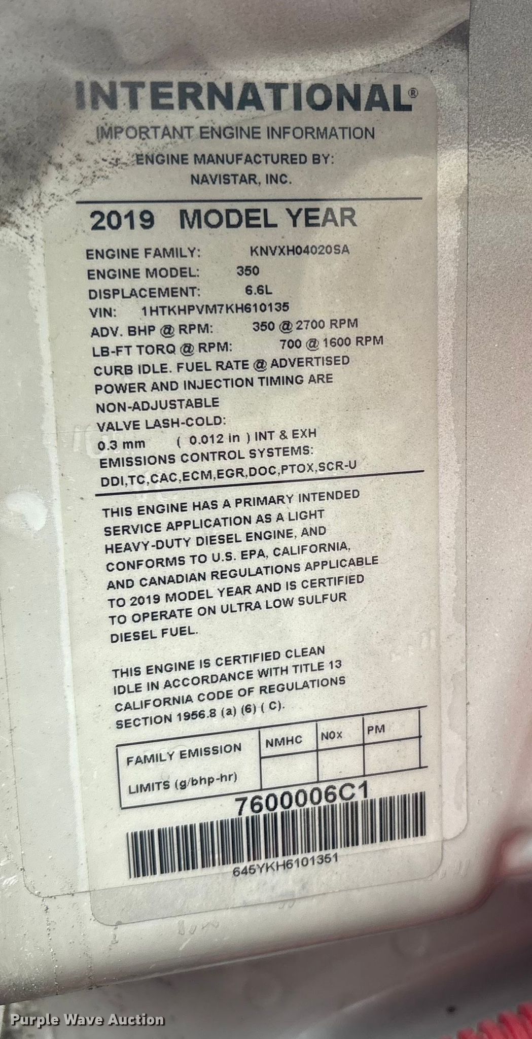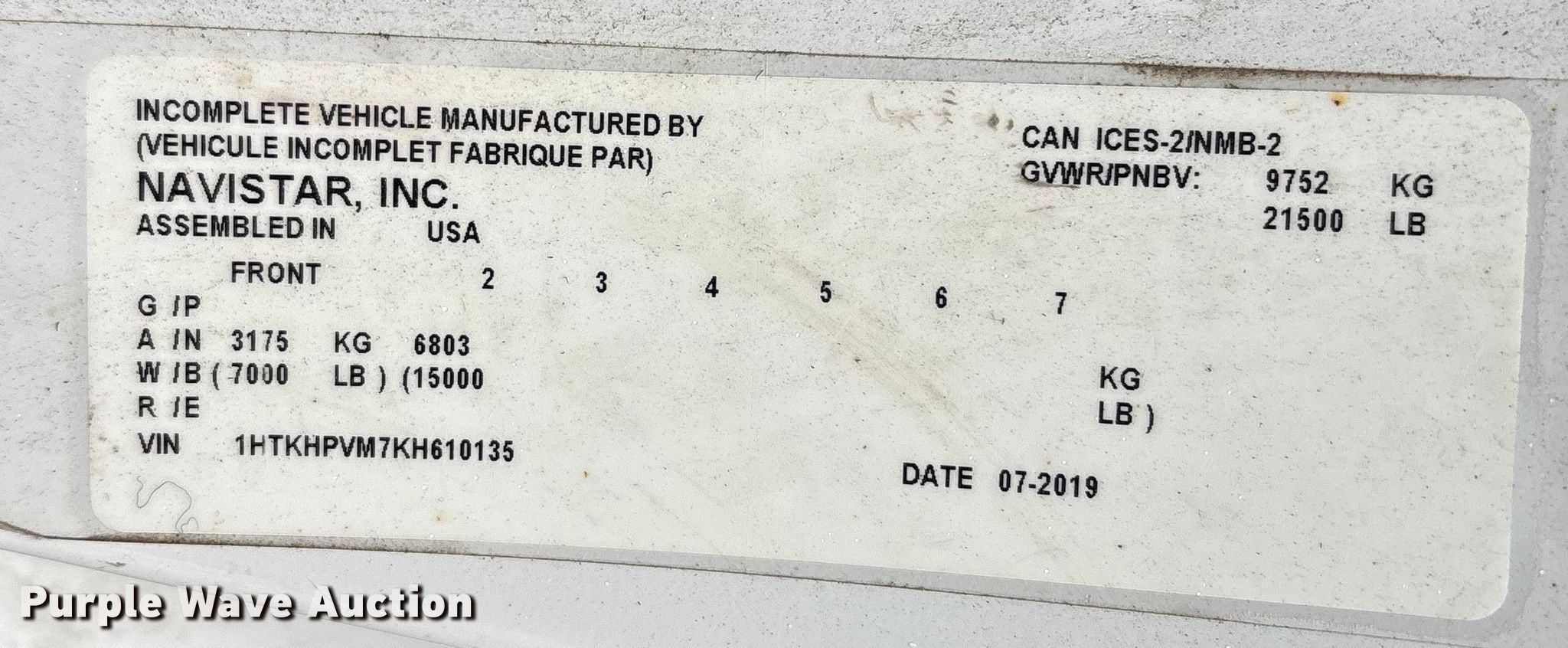 - VIN: 1HTKHPVM7KH610135