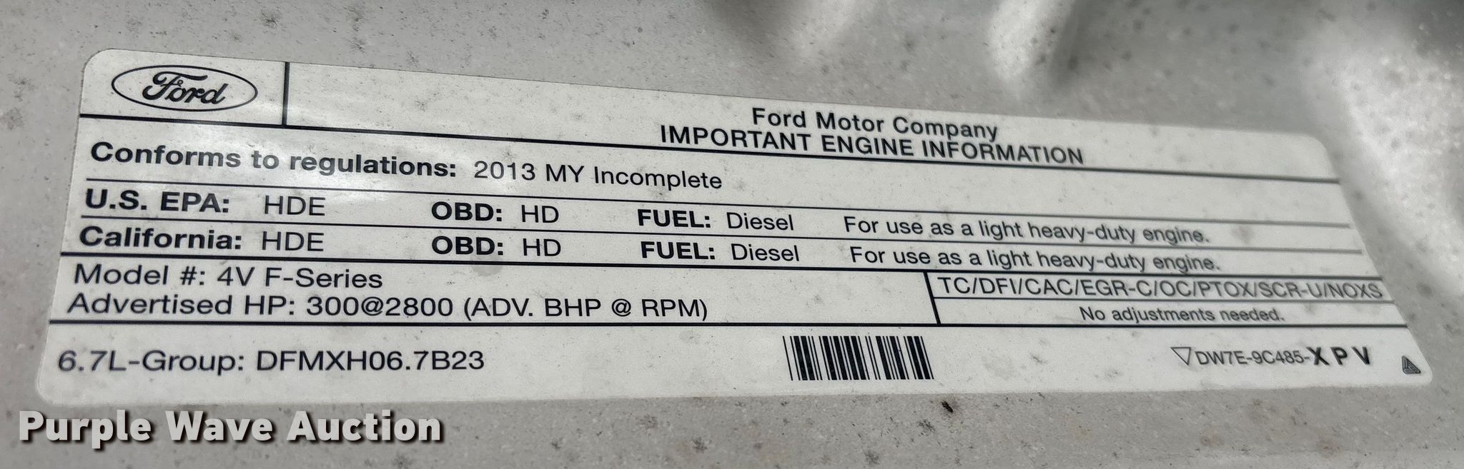 2013 Ford F550 flatbed truck. Miles: 261,596 on odometer, VIN: 1FDUF5GT5DEB00287. Engine Ford, Displacement: 6.7L, Cylinders: 8, Fuel type: Diesel. Transmission Automatic. Chassis Axles: Single, Suspension: Spring, Brakes: Hydraulic, GVWR: 19,500 lbs. Interior AC, Heat, Power windows, Power locks, Cruise control, Auxiliary controls, Brake controller. Features Bed Flatbed, PJ, Length: 16', Width: 93". Tires Size: 225/70R19.5. Notes Oil leak, Jump start required during on-site data collection. North Carolina title. Title distribution may be delayed up to 30 days from verification of funds. DH Pace Company, Inc.. Greensboro, NC 27406