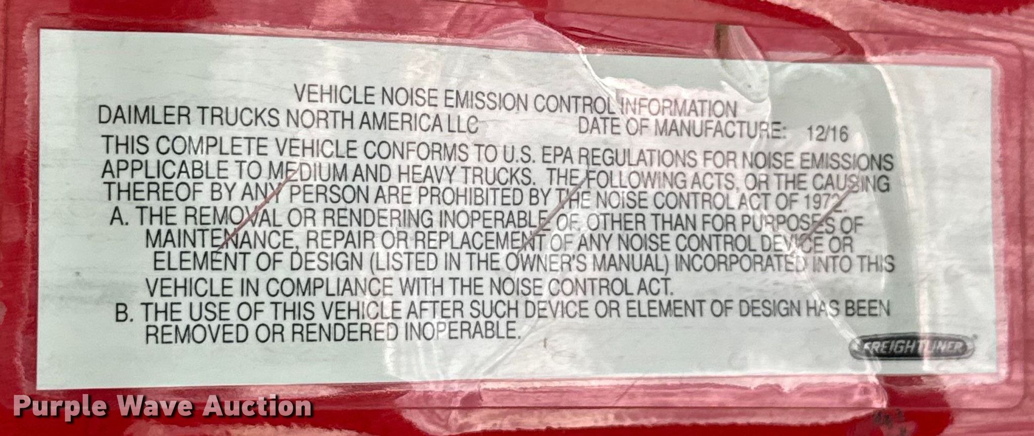Take a look at this used 2017 Freightliner Cascadia semi truck being sold on February 5th, 2026 in the Thursday February 05 Truck and Trailer Auction made by Freightliner. Take a look at all of the item information below or take a look at similar auctions for Trucks.