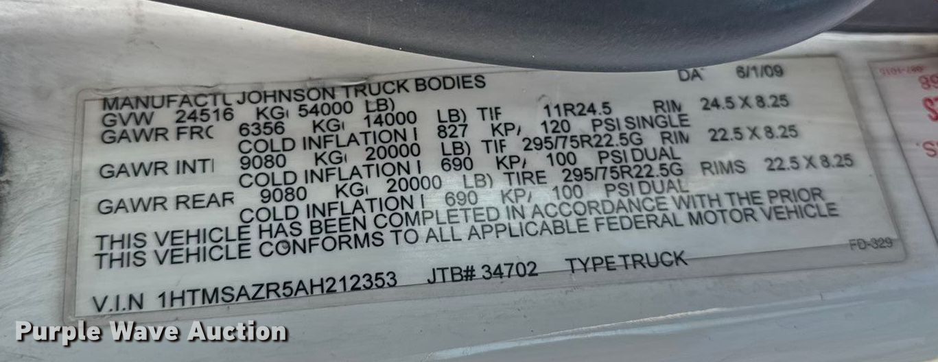 - VIN: 1HTMSAZR5AH212353