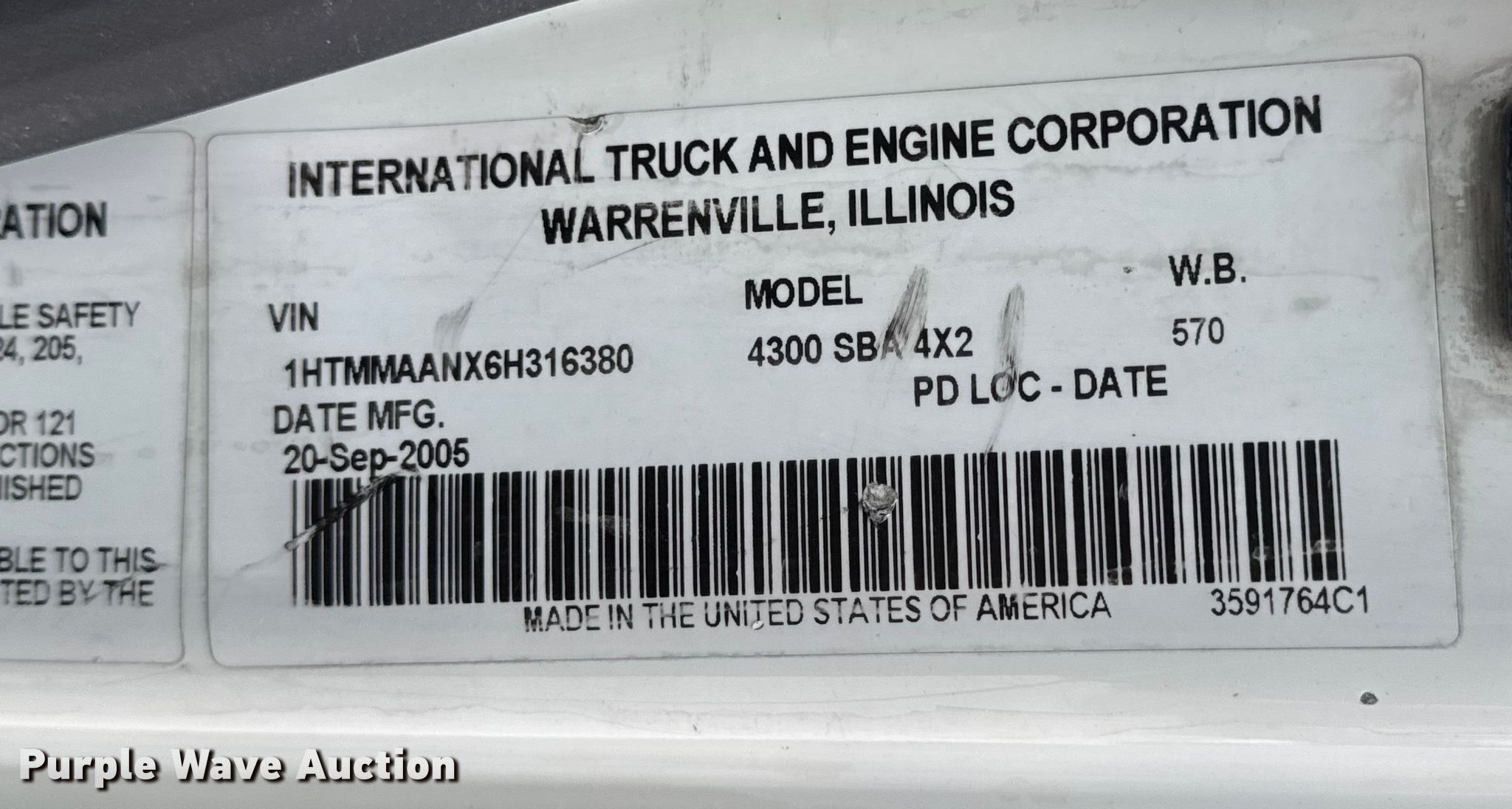 Purple Wave is selling a used Truck Chassis in Missouri. This item is a 2006 International 4300 truck cab and chassis with the following: Miles: 280,274 on odometer, Hours: 10,582 on meter, VIN: 1HTMMAANX6H316380, Unit #: 66380