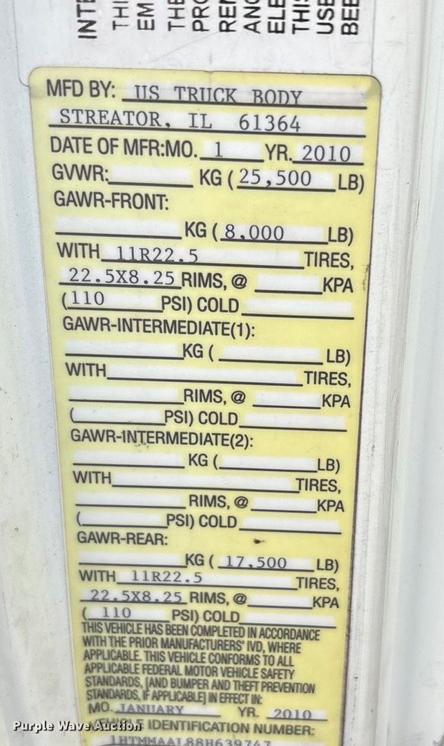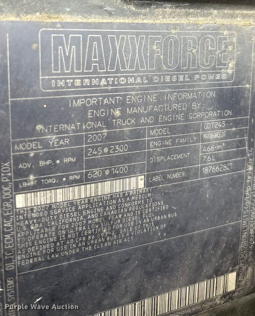 2008 International MA025 box truck. Miles: 218,289 on odometer, VIN: 1HTMMAAL88H639747. Engine Maxxforce DT466, Displacement: 7.64L, Cylinders: 6, Fuel type: Diesel. Transmission Automatic. Chassis Axles: Single, Suspension: Spring, Brakes: Air, GVWR: 25,000 lbs. Interior AC, Heat, Heated mirrors. Features Bed Box bed, Us truck body, Serial: 912-01509, Length: 292", Width: 8', Floor: Wood, End gate lift, Capacity: 2,500 lbs. Tires Size: 11R22.5. Notes Dash warning indicator: Econ. Illinois title. Seller is a Texas licensed motor vehicle dealer. The buyer may be required to pay sales tax and/or registration fees to the dealer prior to taking possession. Buyers may be required to provide identification to the licensed dealer to comply with state laws. Title will be assigned and distributed by the dealer. Please contact the seller for distribution questions. Roy's Trucks. Caddo Mills, TX 75135