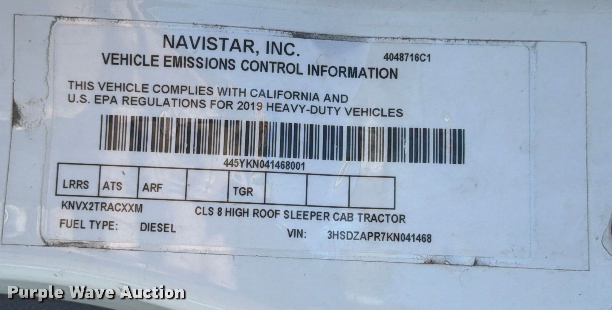 Purple Wave is selling a used Truck Tractor in Texas. This item is a 2019 International LT625 semi truck with the following: Miles: 428,002 on odometer, VIN: 3HSDZAPR7KN041468, Unit #: 219516