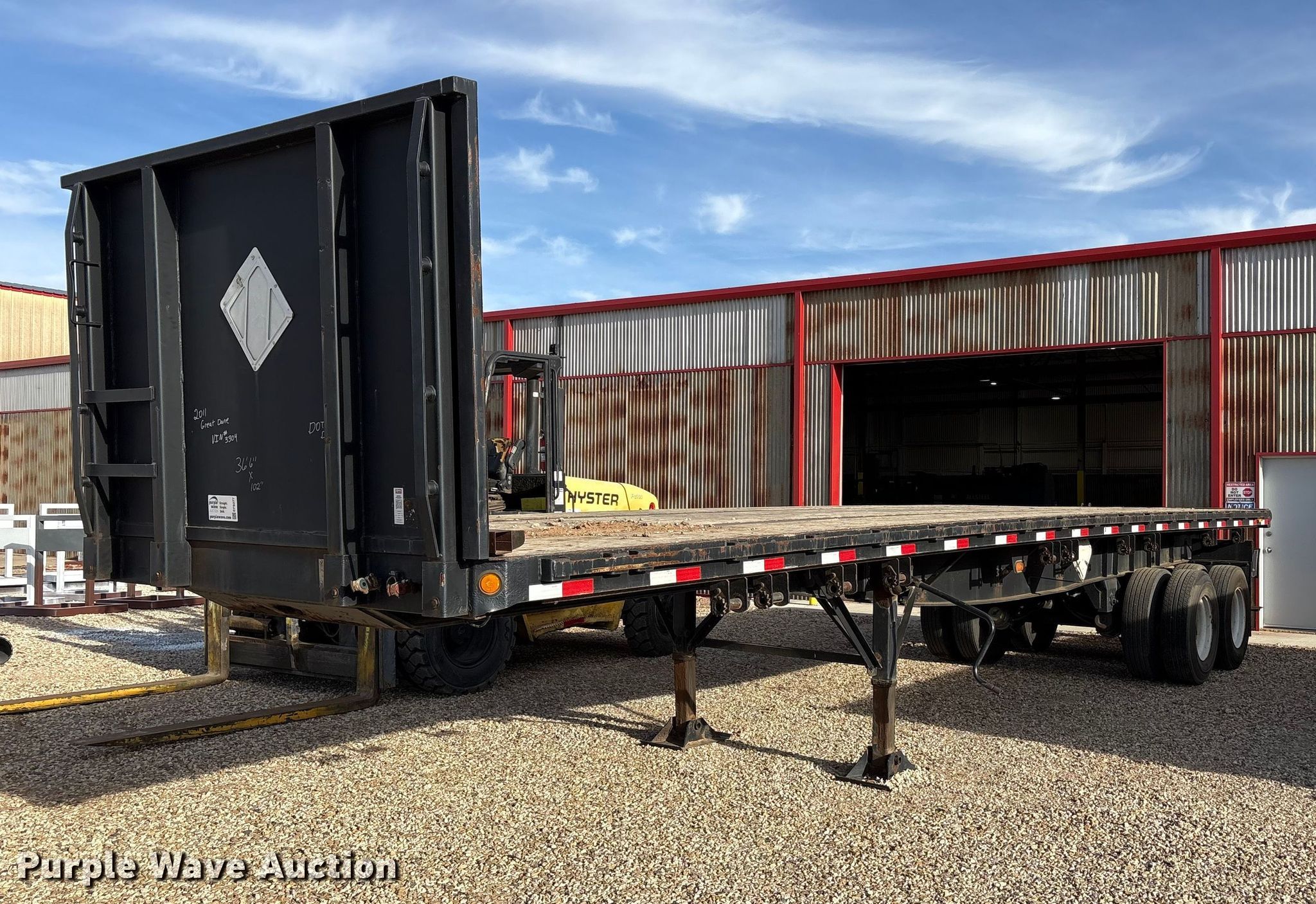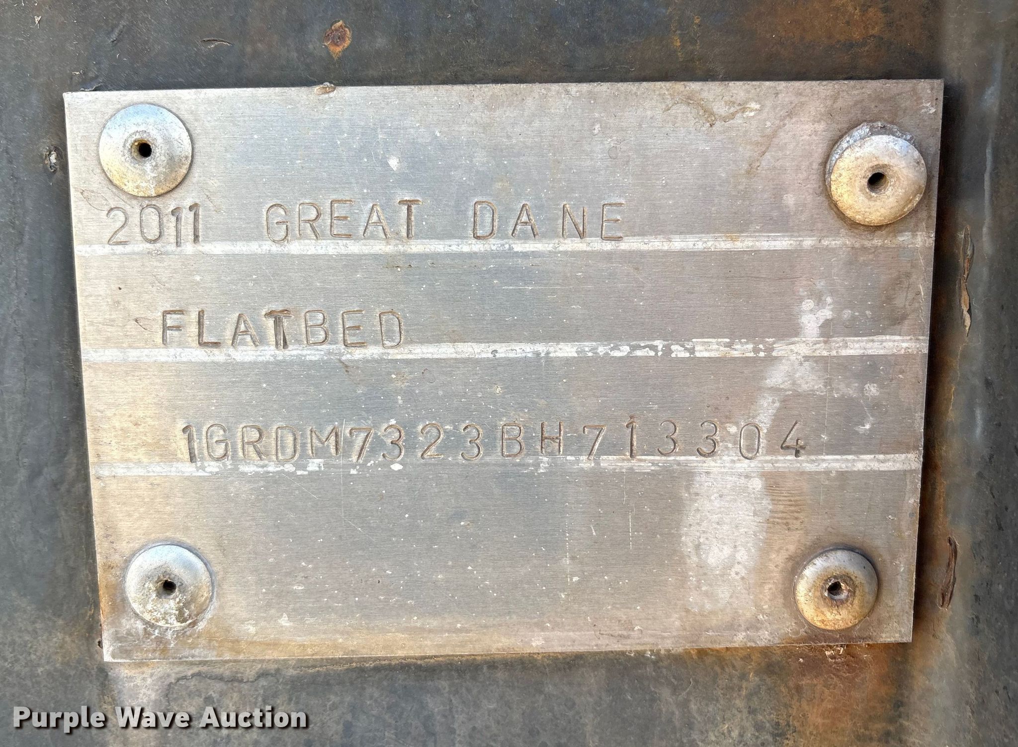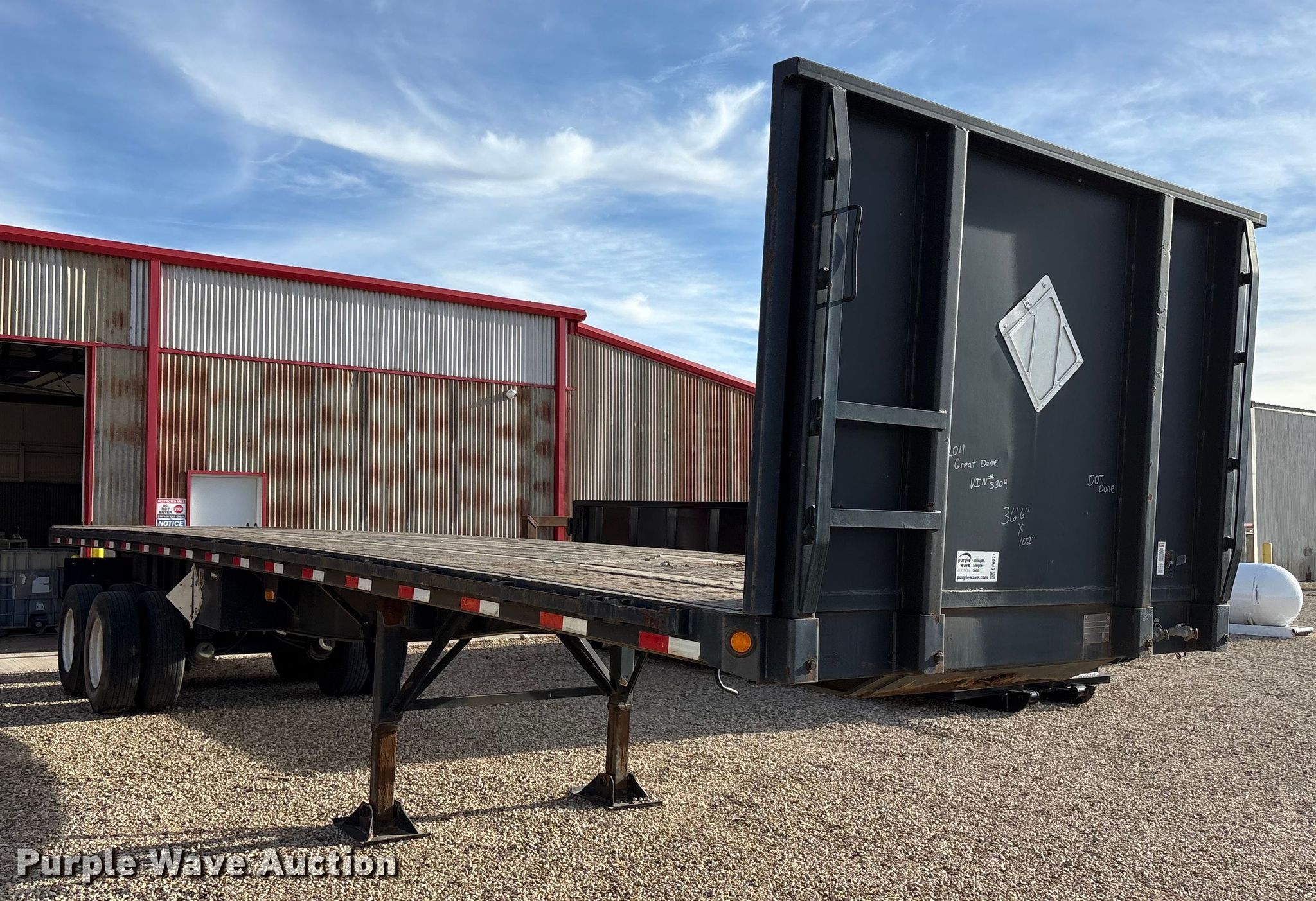 Purple Wave is selling a used Flat or Drop Deck Trailer in Texas. This item is a 2011 Great Dane flatbed trailer with the following: VIN: 1GRDM7323BH713304