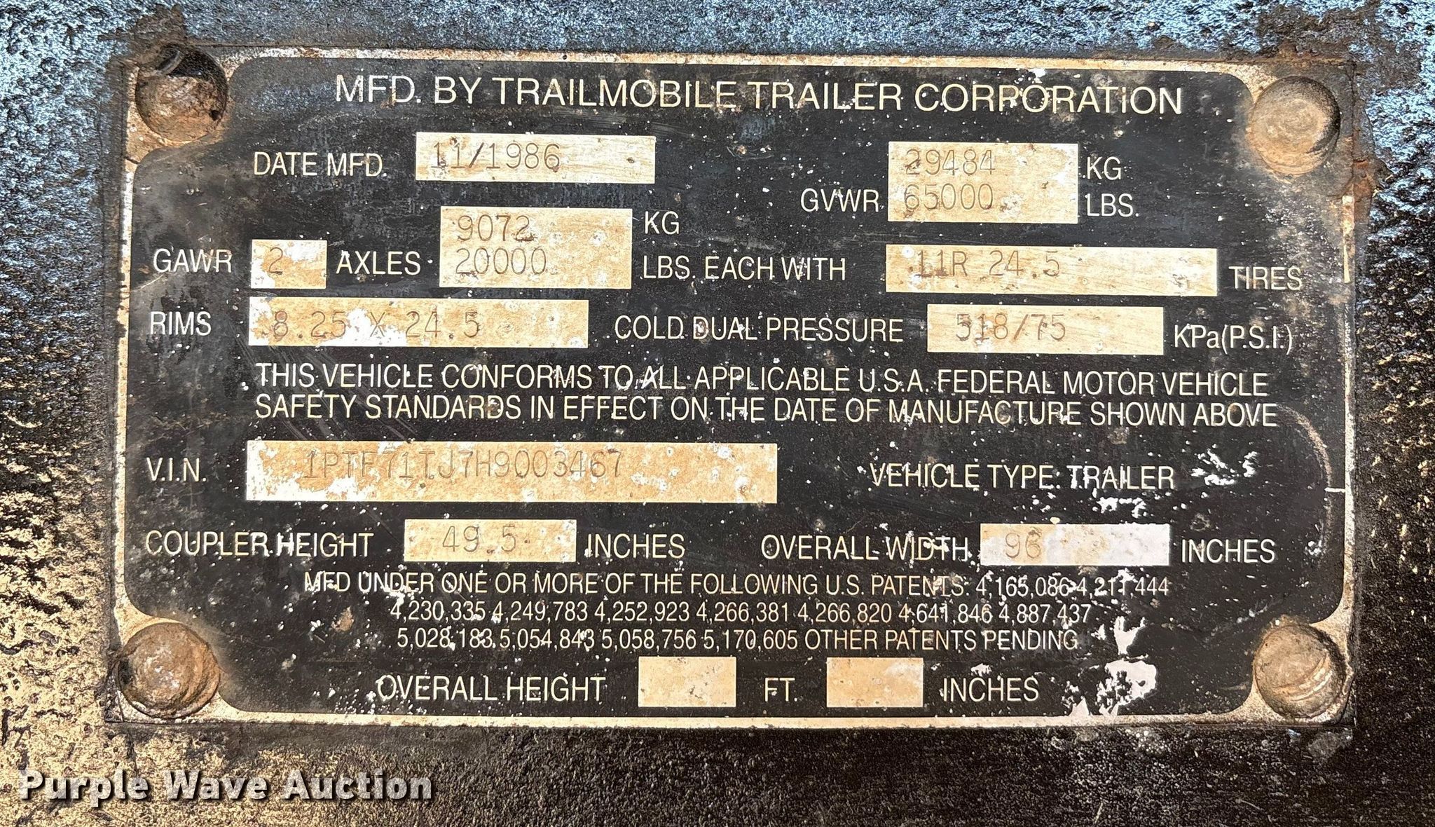 Purple Wave is selling a used Flat or Drop Deck Trailer in Texas. This item is a 1987 Trailermobile flatbed trailer with the following: VIN: 1PTF71TJ7H9003467
