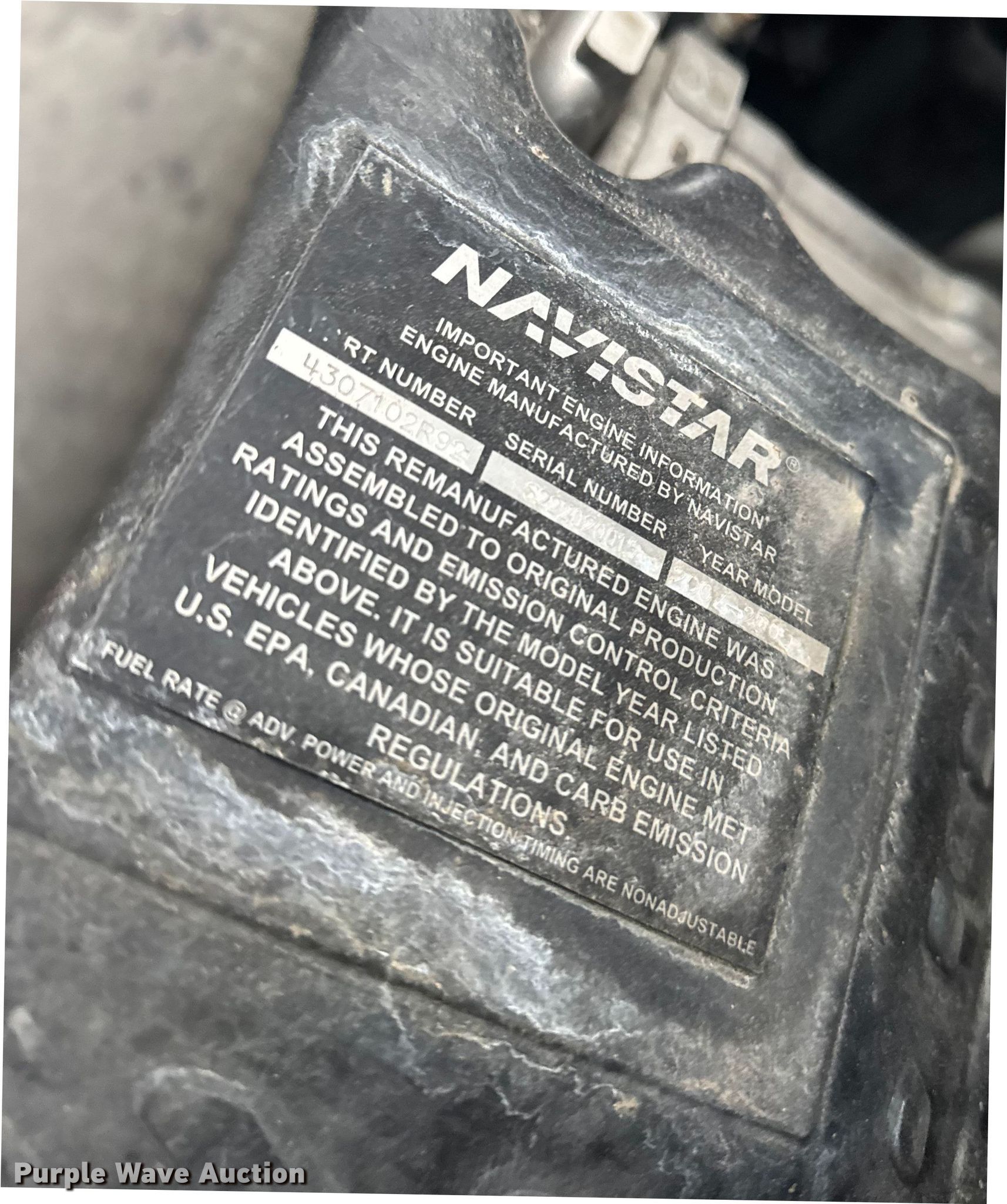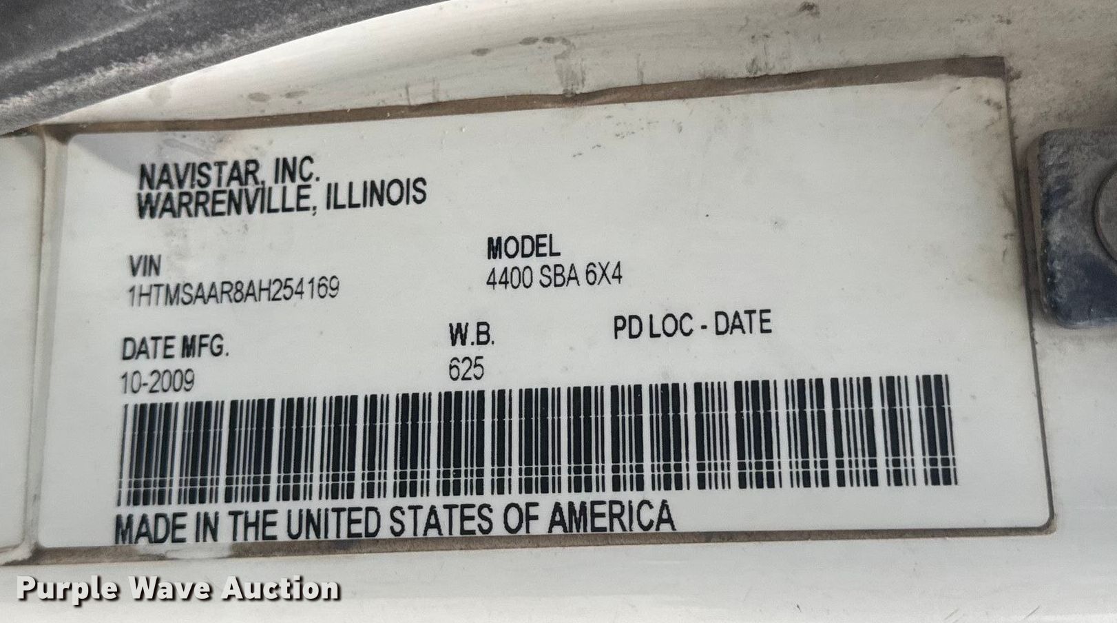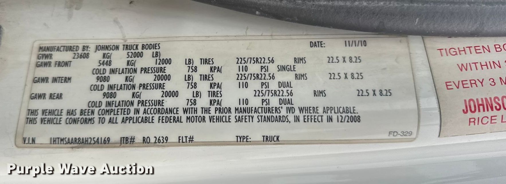 2010 International 4400 truck cab and chassis. Miles: 288,964 on odometer, Hours: 13,171 on meter, VIN: 1HTMSAAR8AH254169, Unit #: 2569. Engine International Maxxforce, Displacement: 7.64L, Cylinders: 6, Fuel type: Diesel. Transmission Allison, Automatic. Chassis Axles: Tandem, Suspension: Spring, Brakes: Air, Truck chassis: 24' 9". Interior AC, Heat, Heated mirrors, Cruise control. Features Fuel tank: Single. Tires Size: 275/80R22.5. Iowa title. Title distribution may be delayed up to 14 days from verification of funds. Hiland Dairy. New Bloomfield, MO 65063