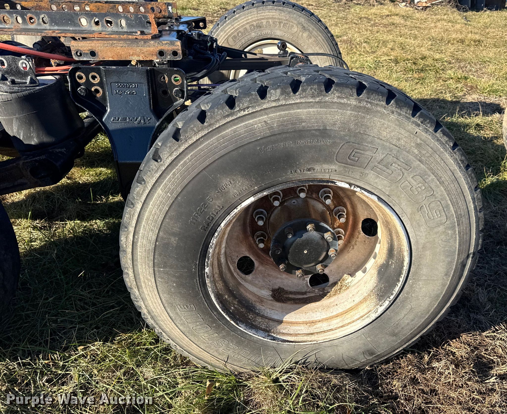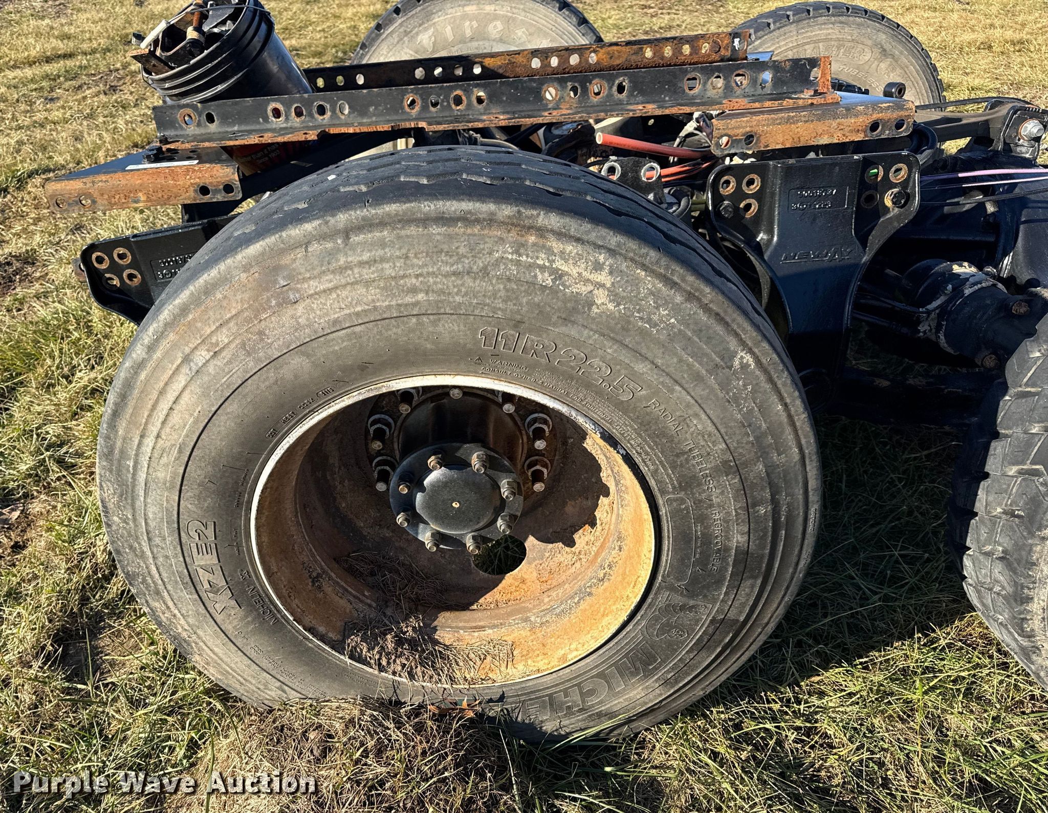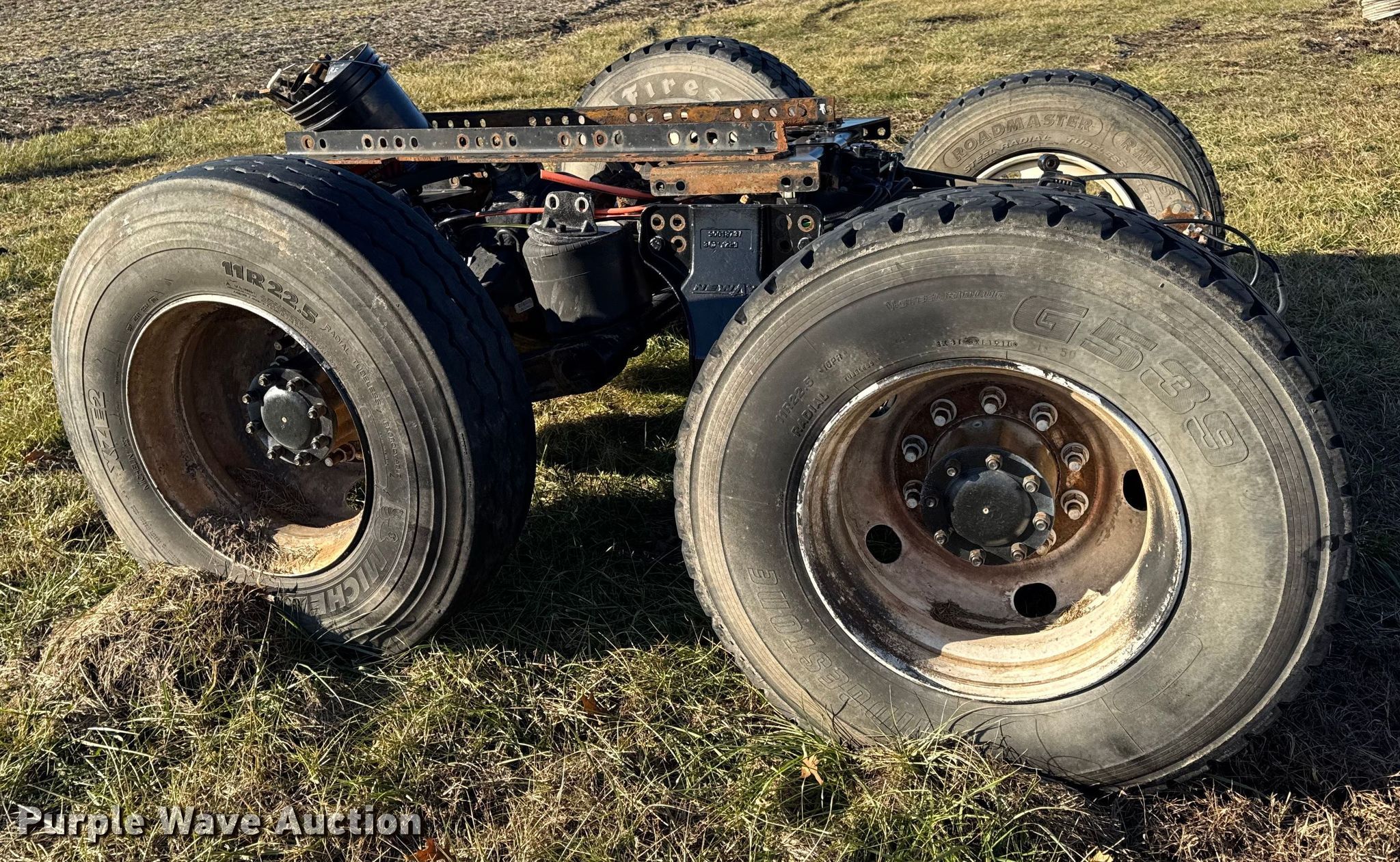 Rear axle assembly. Chassis. Axles: Tandem, Suspension: Air, Brakes: Air. Tires Size: 11R22.5. Notes Tire off wheel. Meyers Truck Service LLC. Mexico, MO 65265