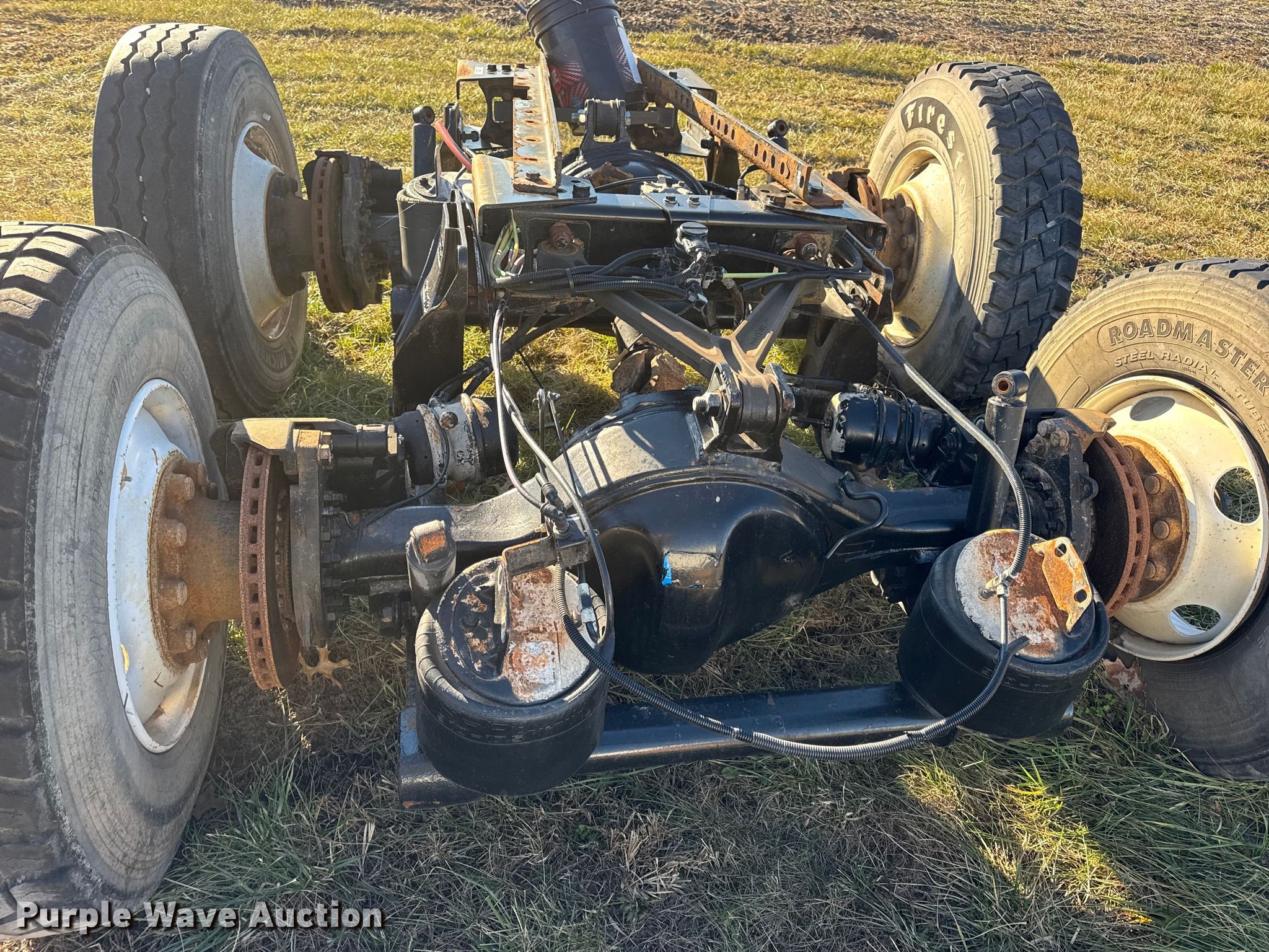 Purple Wave is selling a used Truck Part and Attach. in Missouri. This item is a Rear axle assembly with the following: Axles: Tandem, Suspension: Air, Brakes: Air
