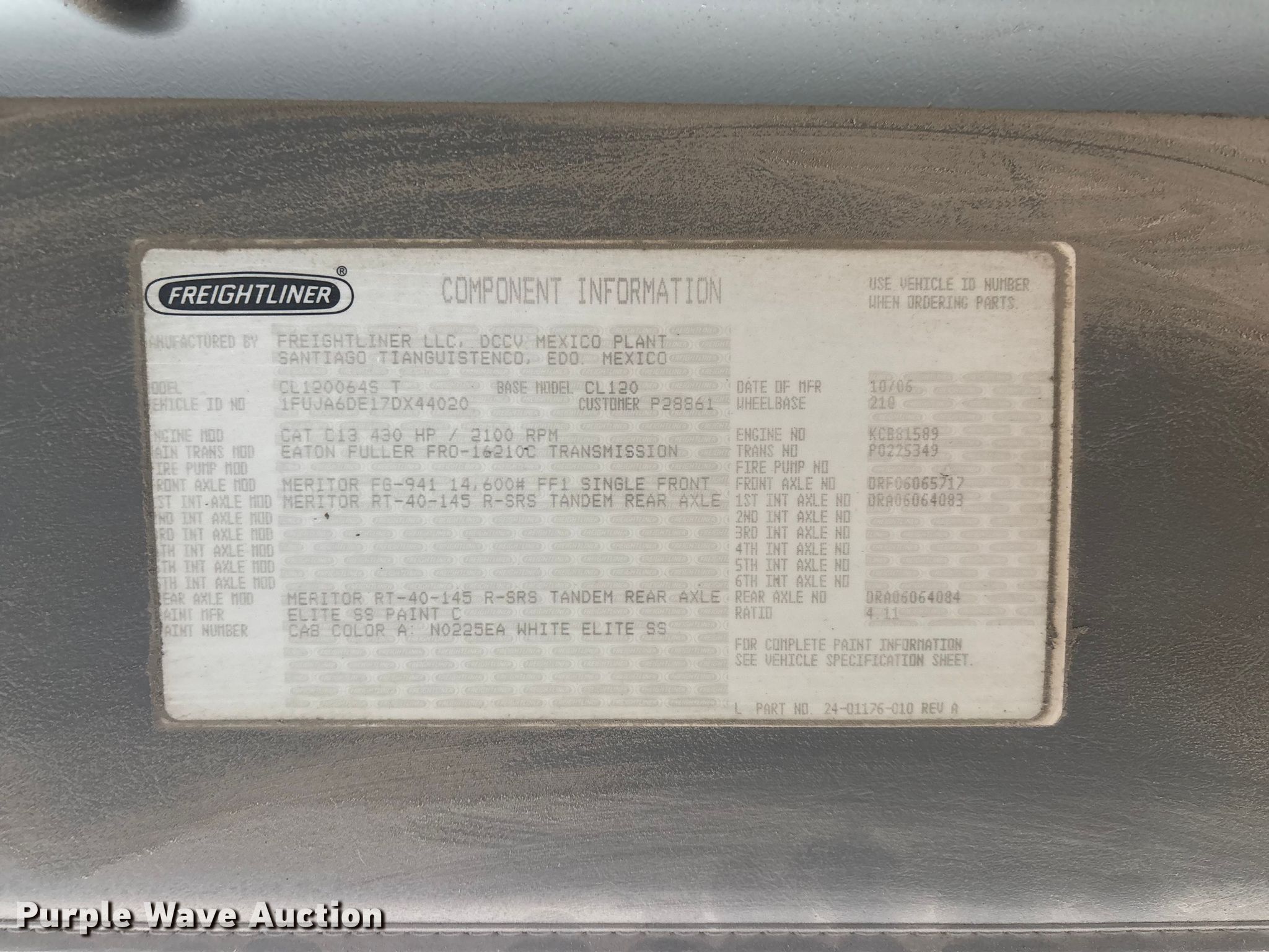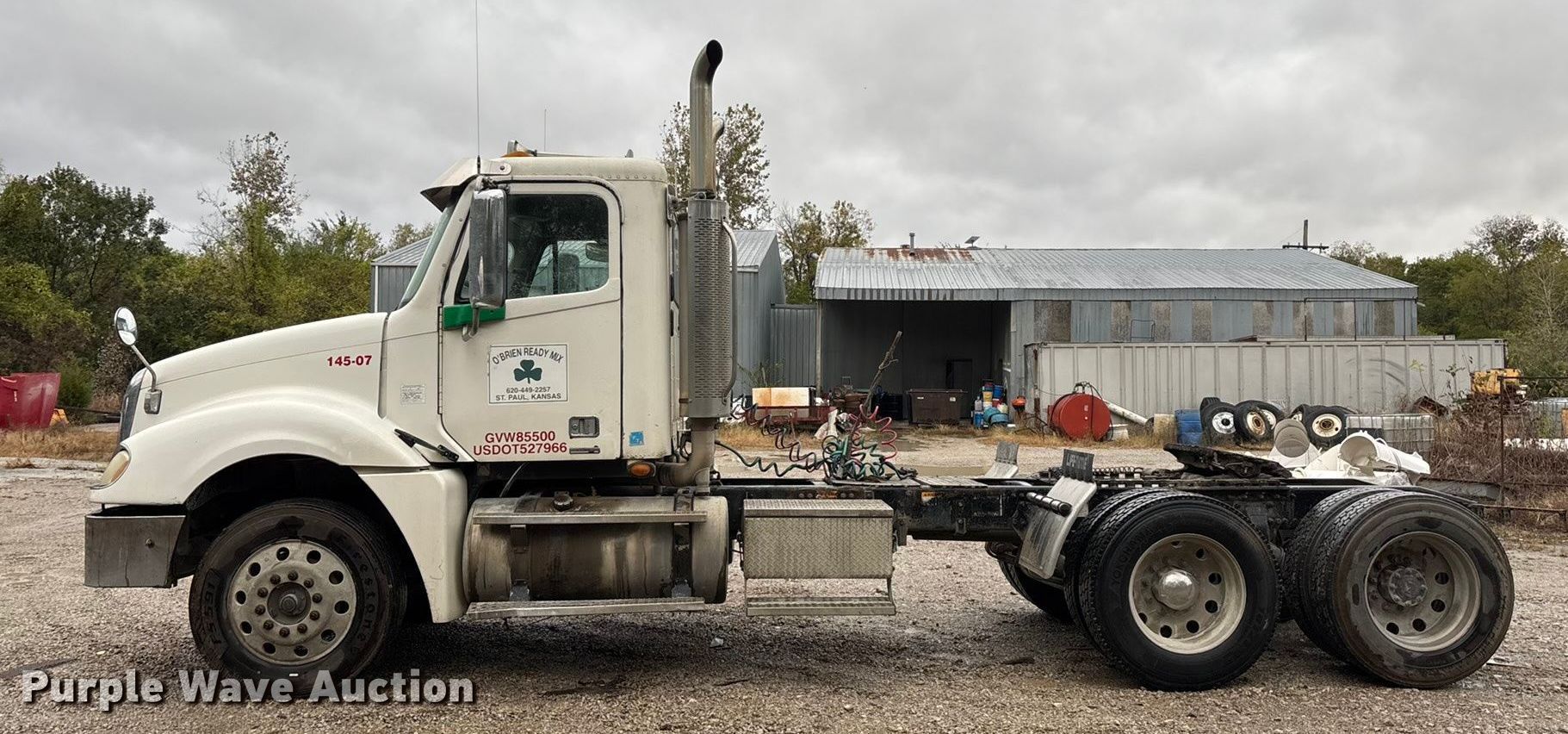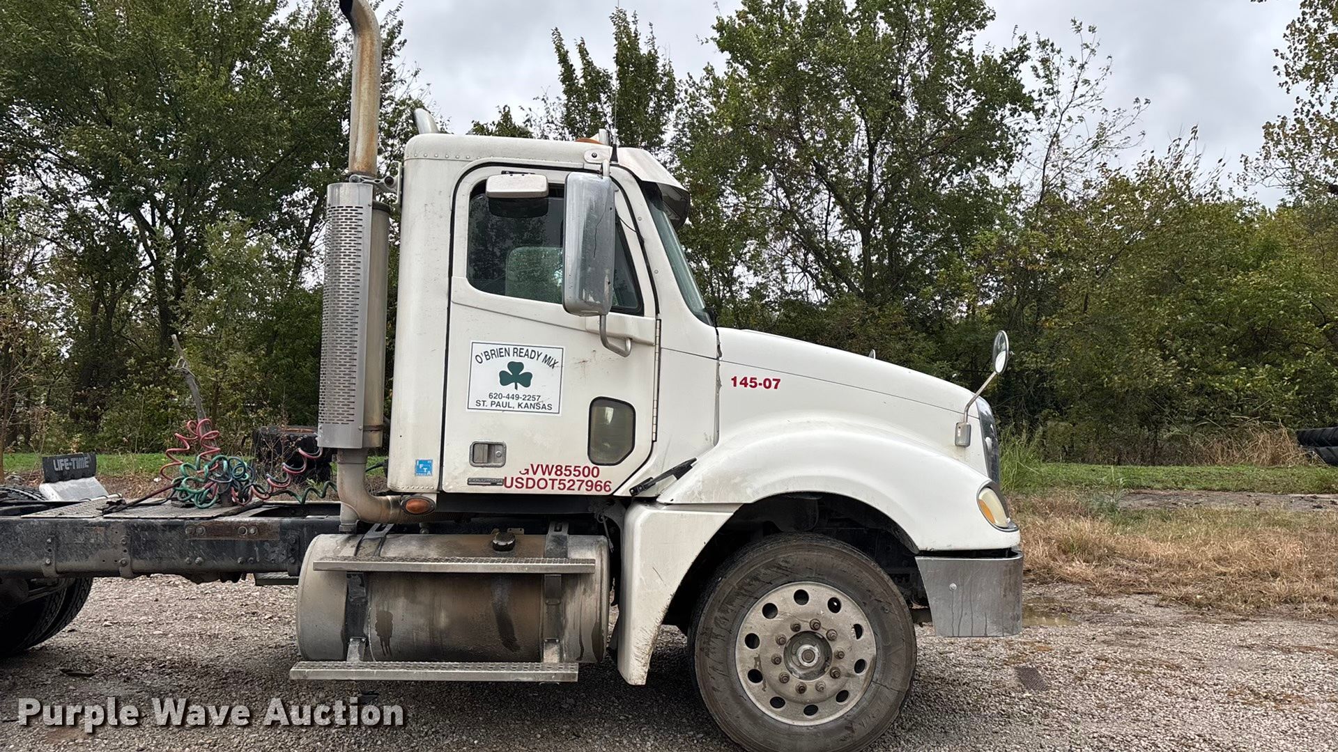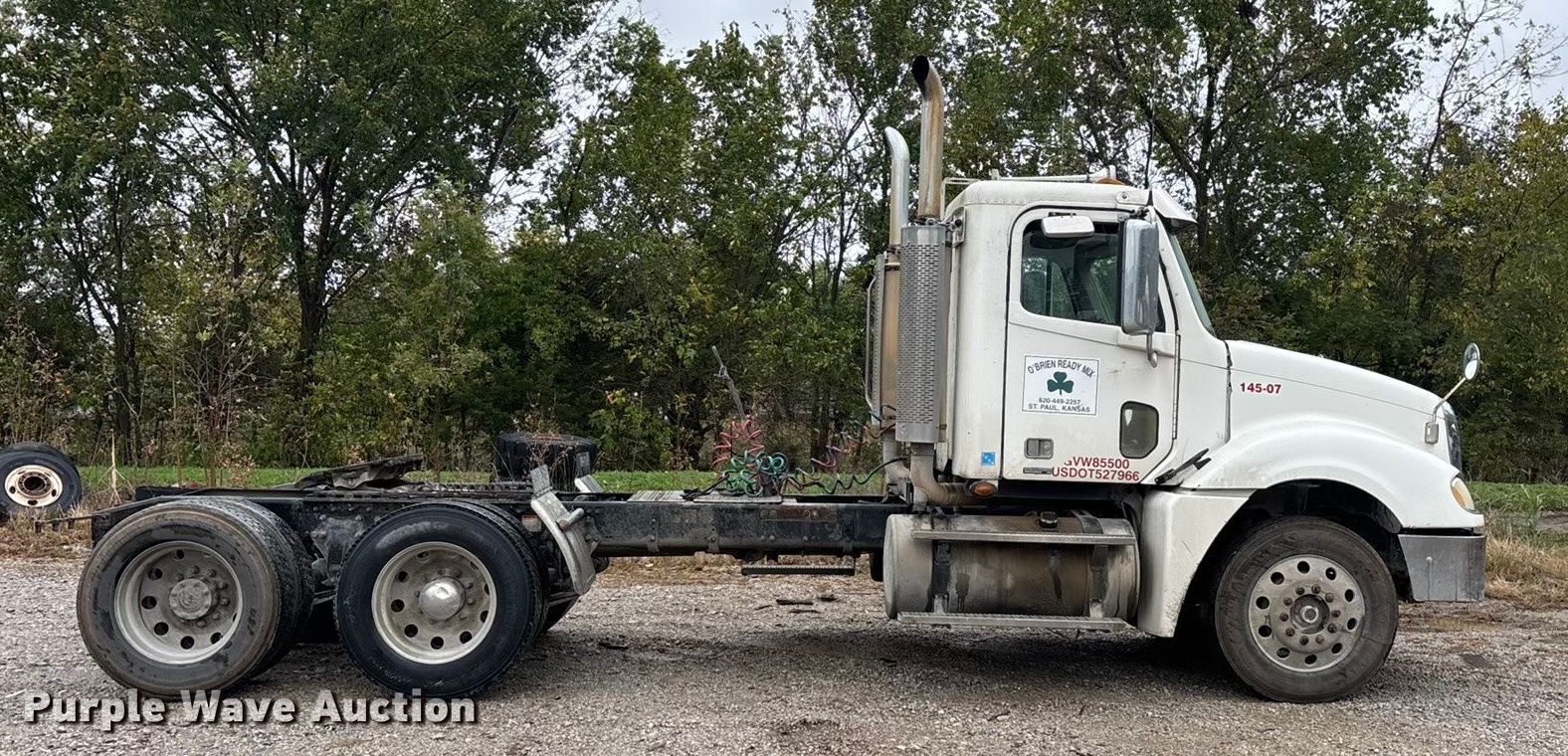 Purple Wave is selling a used Truck Tractor in Kansas. This item is a 2007 Freightliner Columbia semi truck with the following: Miles: 1,037,148 on odometer, Hours: 35,746 on meter, VIN: 1FUJA6DE17DX44020, Unit #: 145-07