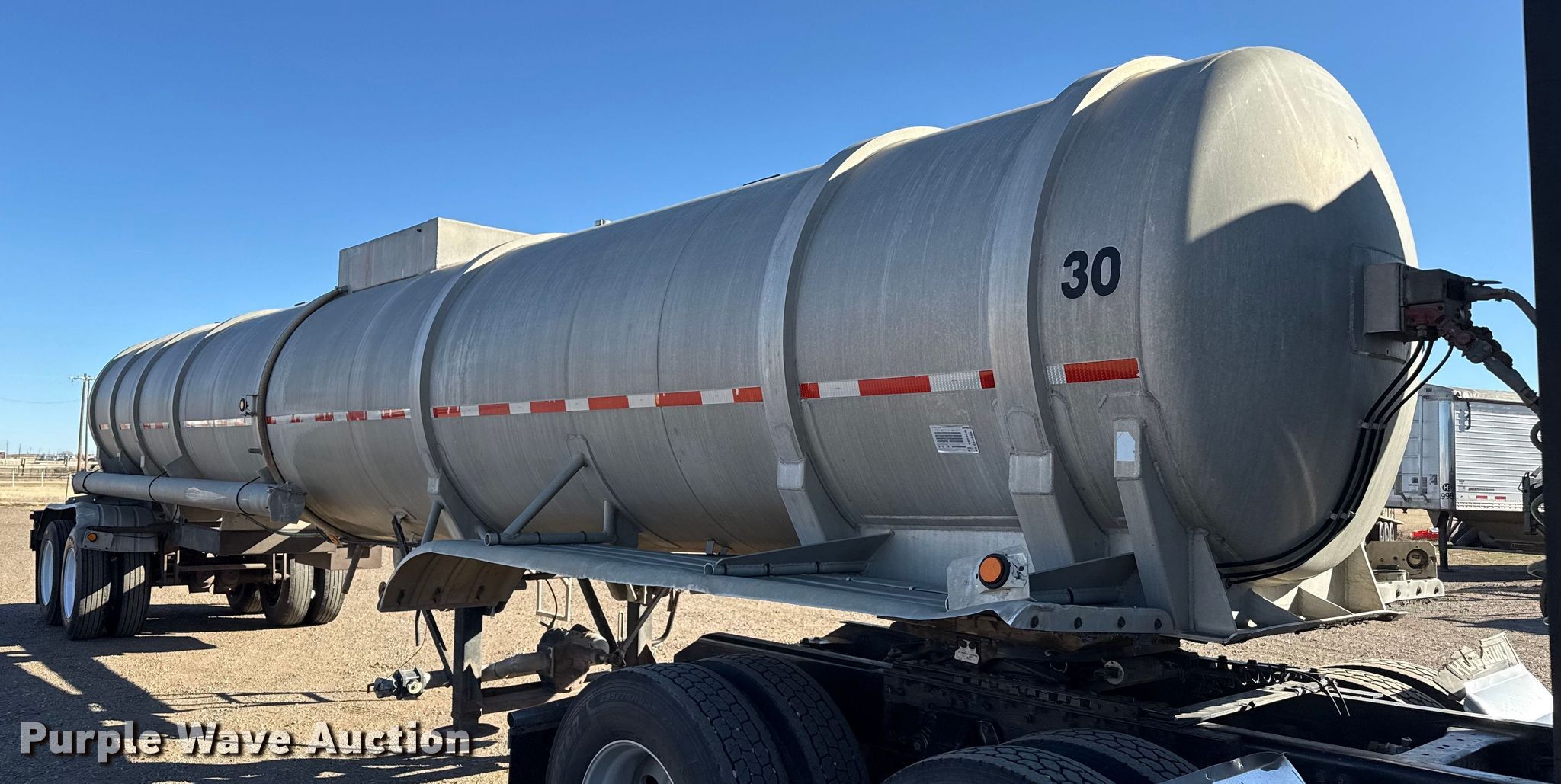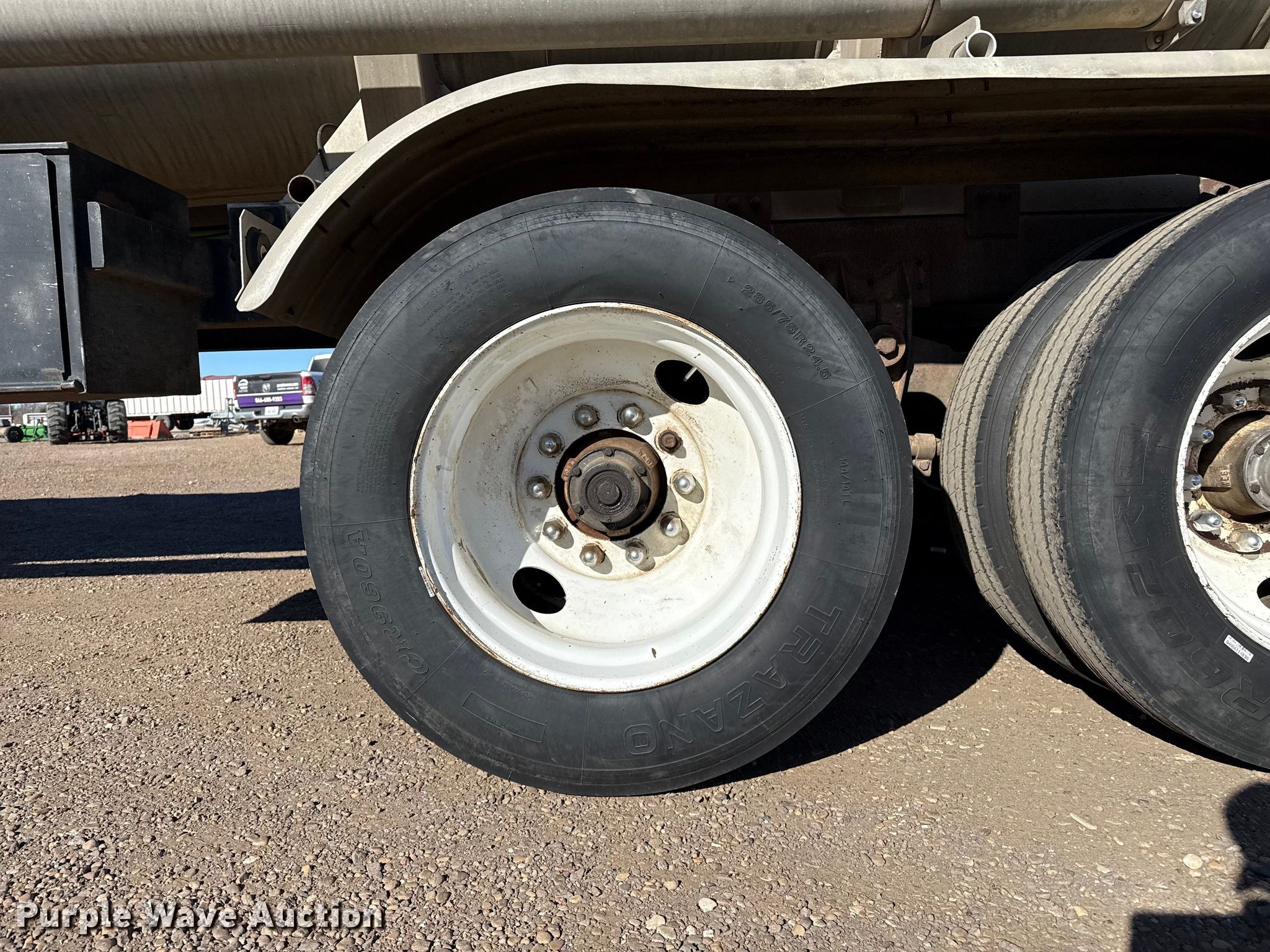 1987 Trailmaster Tanks, Inc. tank trailer. VIN: 1T9AE15B5GF003161. Dimensions Overall Length: 43', Width: 96". Features Tank type: Aluminum, Outlet valves: 2 Size: 4", No. of manways/manholes: 1 Width: 18", Pump Outlet size: 4". Chassis Landing gear: Dual, Suspension: Spring, Brakes: Air, Axles: Tandem, GVWR: 65,000 lbs. Tires Steel wheels, Size: 285/75R24.5. Notes Semi truck not included. Oklahoma title. Title distribution may be delayed up to 30 days from verification of funds. Hager Brothers Trucking. Goodwell, OK 73939