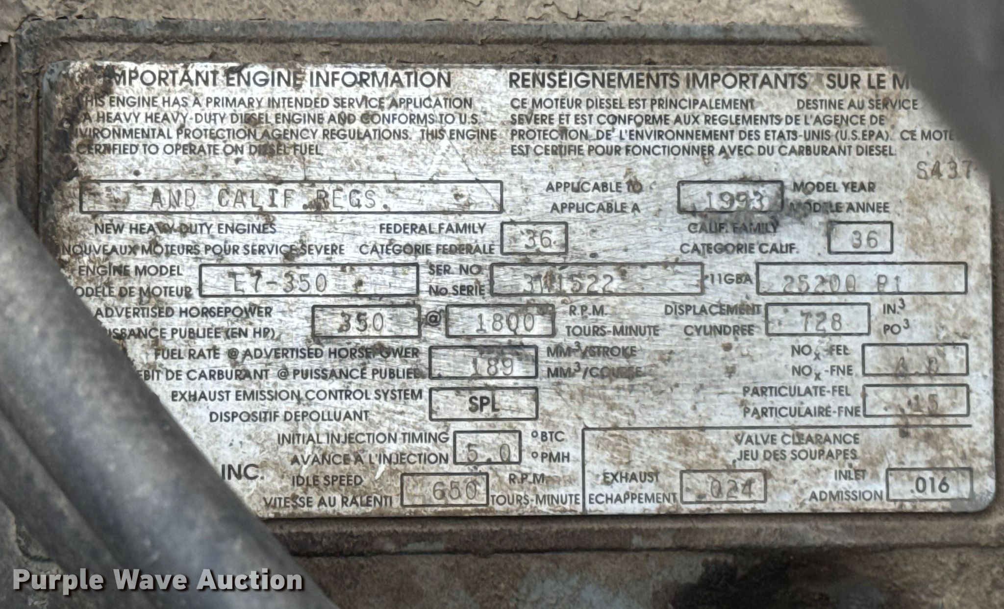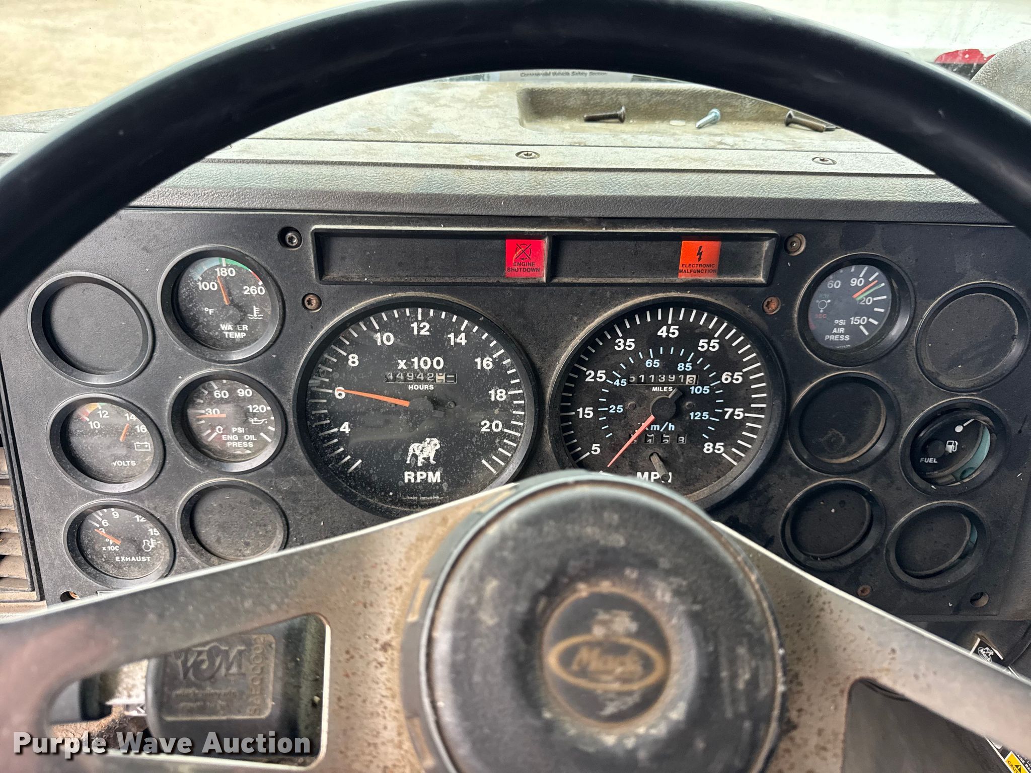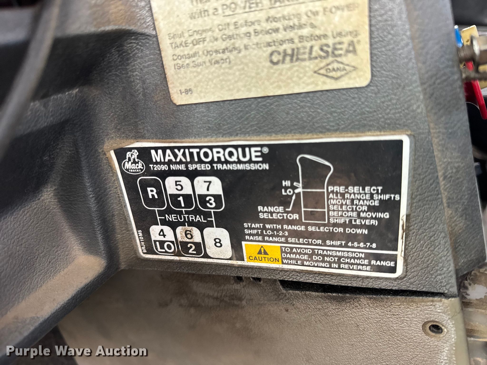 1994 Mack CH613 semi truck. Miles: 511,391 on odometer, Hours: 44,943 on meter, VIN: 1M2AA13Y5RW036202. Engine Mack E7-350, Displacement: 12.0L, Cylinders: 6, Fuel type: Diesel, HP: 350. Transmission Mack Maxitorque, Manual, Speed: 9. Chassis Axles: Tandem, Suspension: Camelback, Brakes: Air, PTO, Wet kit. Interior AC, Heat, Cruise control. Features Deck plate: Aluminum, Fifth wheel type: Sliding, Fuel tank: Dual. Tires Front: 295/75R22.5, Rear: 11R22.5. Notes Dash warning indicator: Engine Shutdown, Electronic Malfunction, Dash illumination issues, Non-operational AC, Transmission issues Non-operational 4-9 gears. Illinois title. Title distribution may be delayed up to 14 days from verification of funds. Zamora Trucking. Waukegan, IL 60085