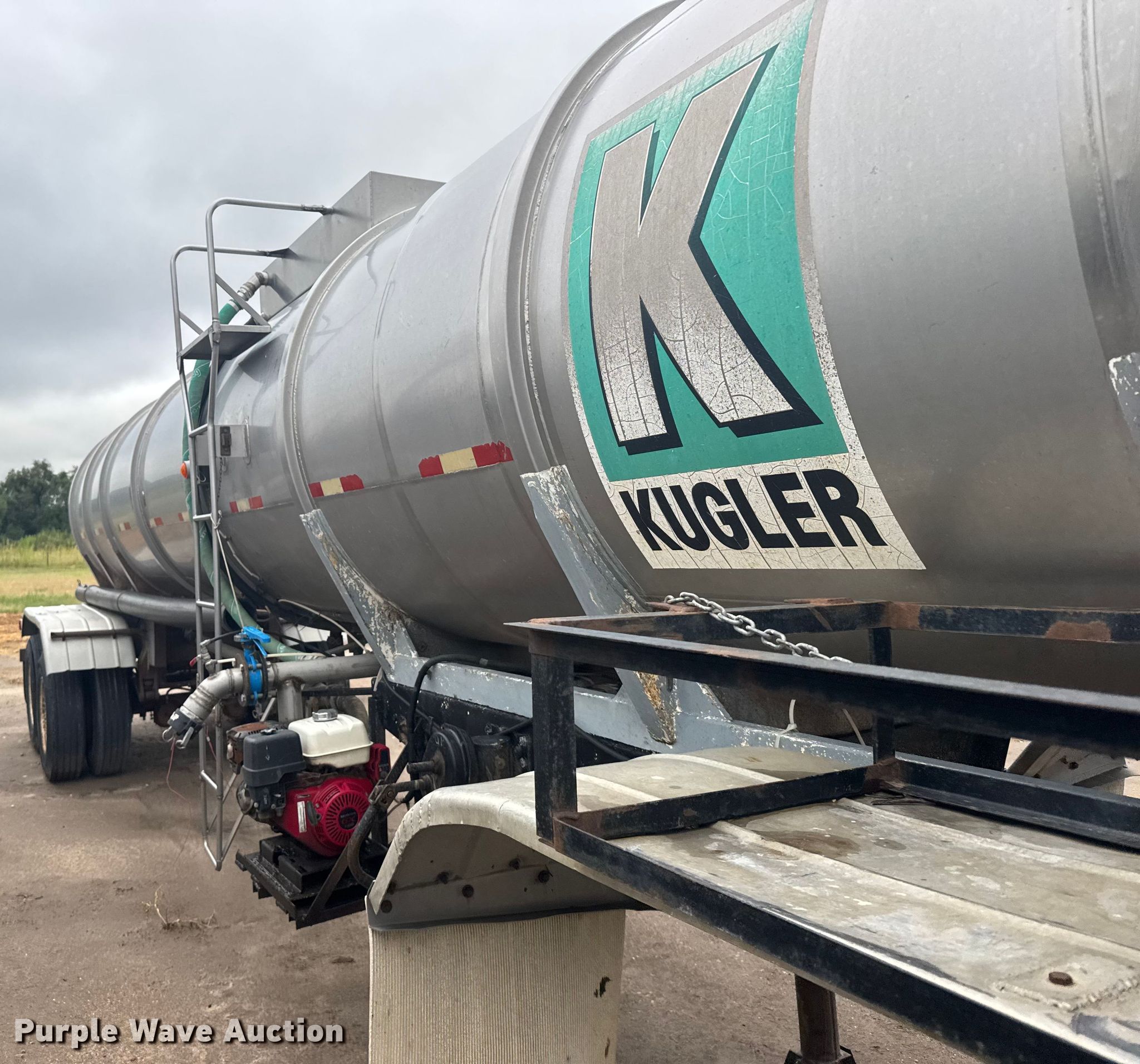 1974 Polar tank trailer. VIN: 0V2500009002048NE. Dimensions Overall Length: 40', Width: 96". Features Tank type: Stainless steel Capacity: 6,000 gallons, Outlet valves: 1 Size: 3", Pump Outlet size: 3", Hose length: 20'. Chassis Landing gear: Dual, Suspension: Spring, Brakes: Air, Axles: Tandem. Tires Steel wheels, Size: 11R22.5. Notes Honda GX 390 engine. Nebraska title. Title distribution may be delayed up to 14 days from verification of funds. Kugler Company. Culbertson, NE 69024