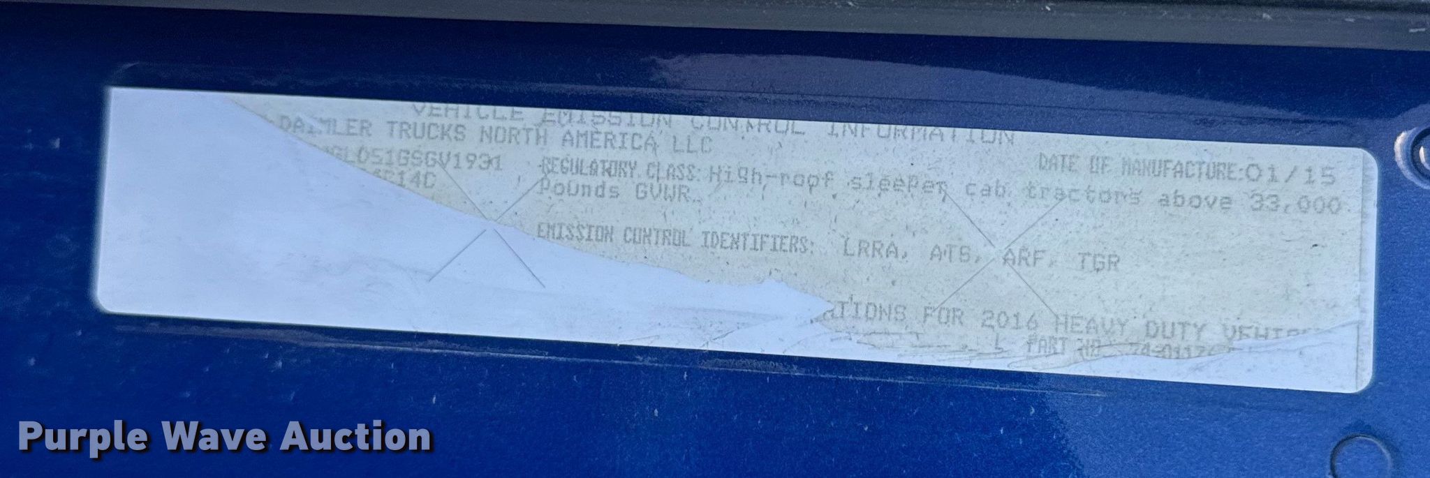 Purple Wave is selling a used Truck Tractor in Kansas. This item is a 2016 Freightliner Cascadia semi truck with the following: Miles: Unknown, VIN: 3AKJGLD51GSGV1931