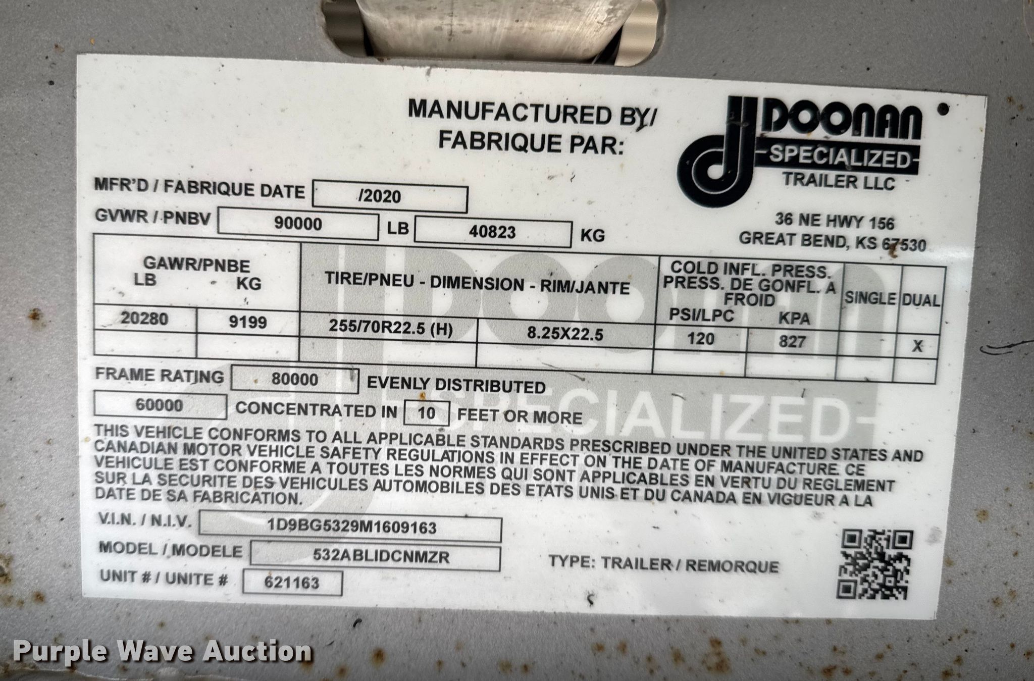 Purple Wave is selling a used Flat or Drop Deck Trailer in Kansas. This item is a 2021 Doonan drop deck trailer with the following: VIN: 1D9BG5329M1609163