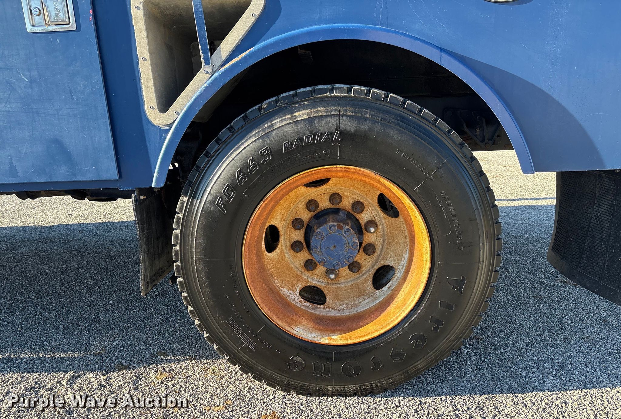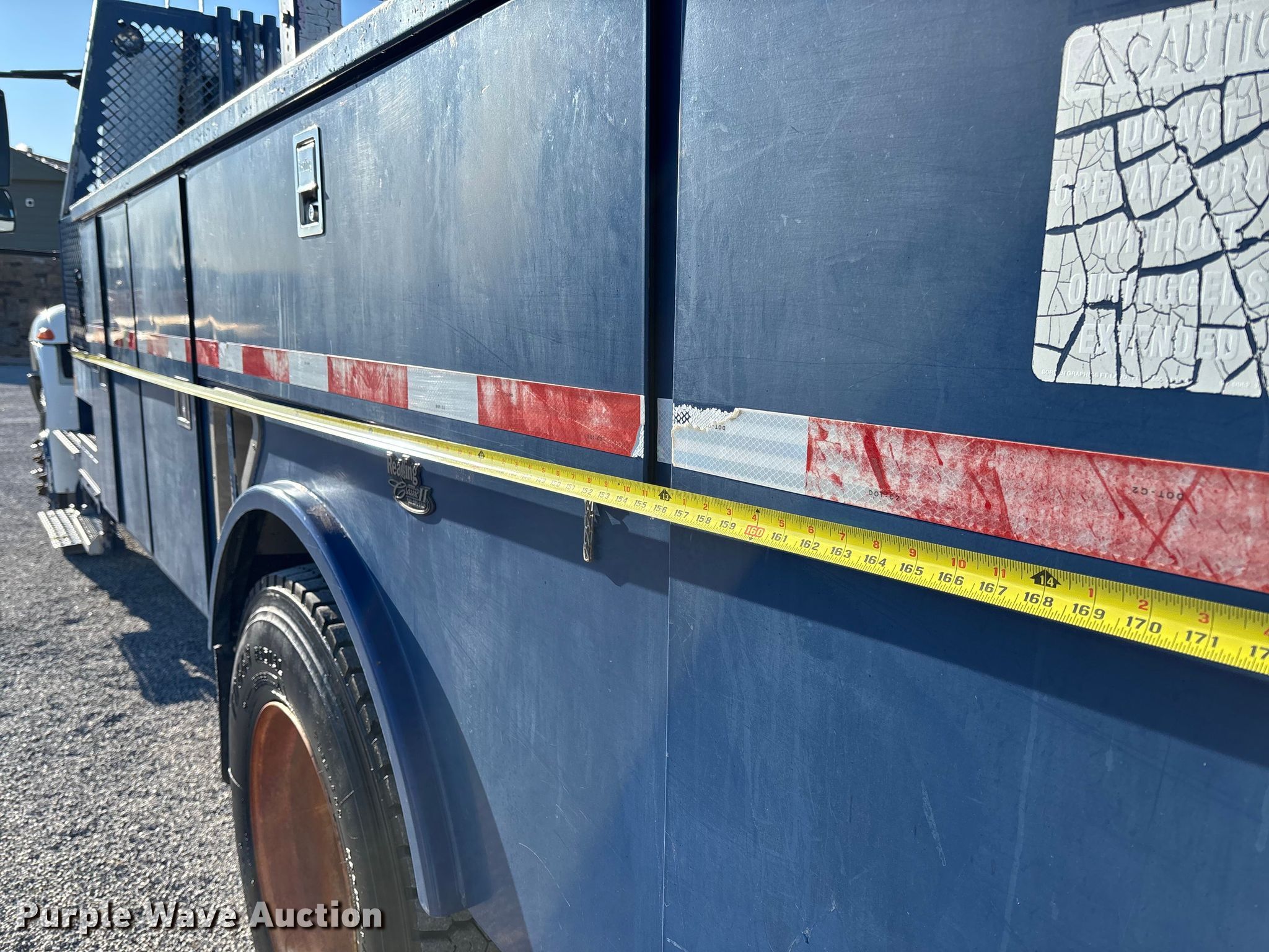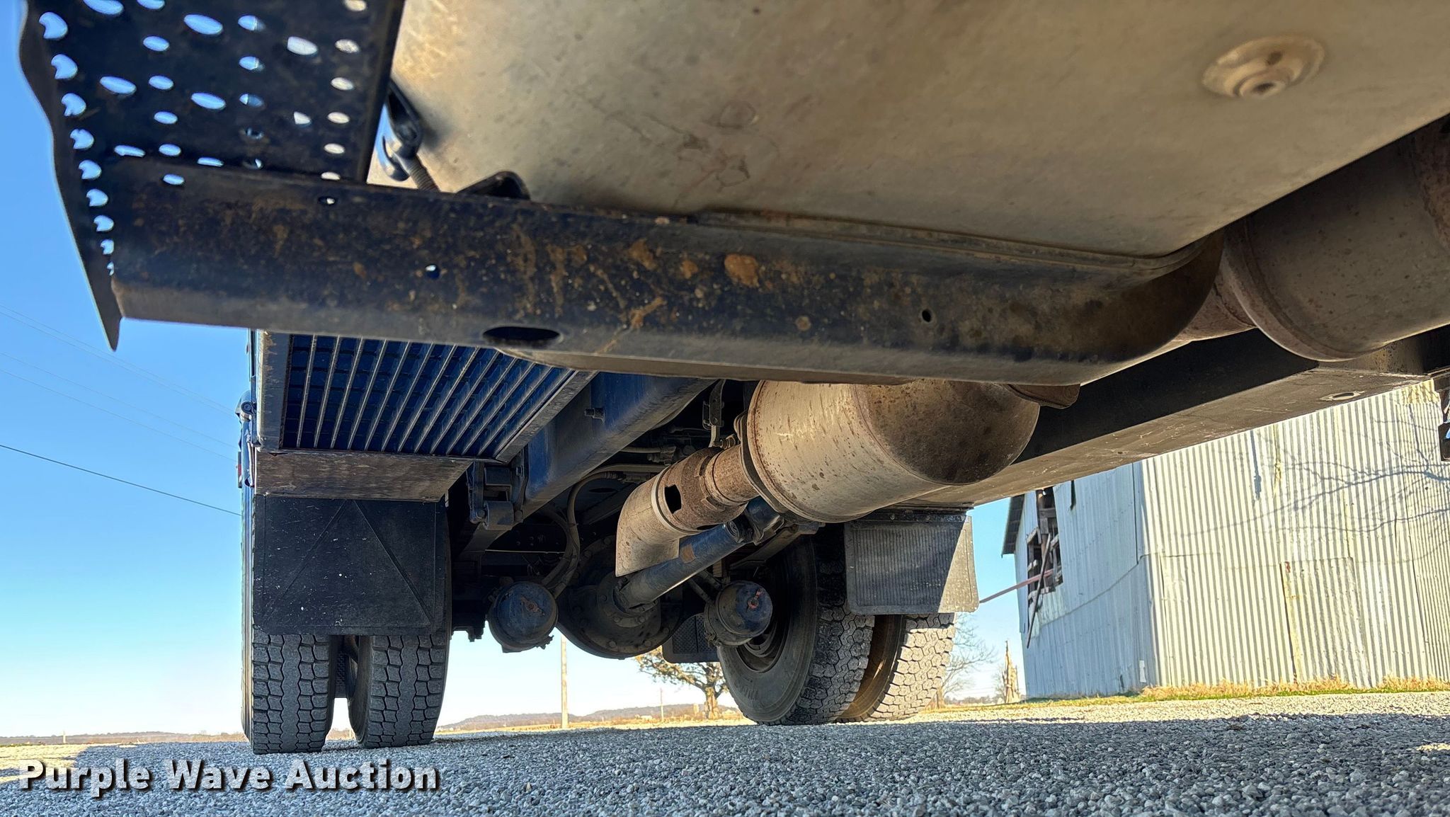 2010 International DuraStar 4300 flatbed truck. Miles: 98,615 on odometer, Hours: 755 on meter, VIN: 1HTJTSKL6AH180055. Engine International MaxxForce 7, Displacement: 6.4L, Cylinders: 6, Fuel type: Diesel. Transmission Automatic. Chassis Axles: Single, Suspension: Spring, Brakes: Air, PTO, GVWR: 25,500 lbs, Wheelbase: 186". Interior AC, Heat, Cruise control. Features Bed Utility bed, Reading Classic II, Length: 15' 2", Width: 7' 10", End gate lift Thieman TT16RM. Tires Front: 295/75R22.5, Rear: 11R22.5. Notes ABS light intermittently illuminates, Bed compartment keys missing. Oklahoma title. Title distribution may be delayed up to 14 days from verification of funds. Accuracy Underground. Inola, OK 74036