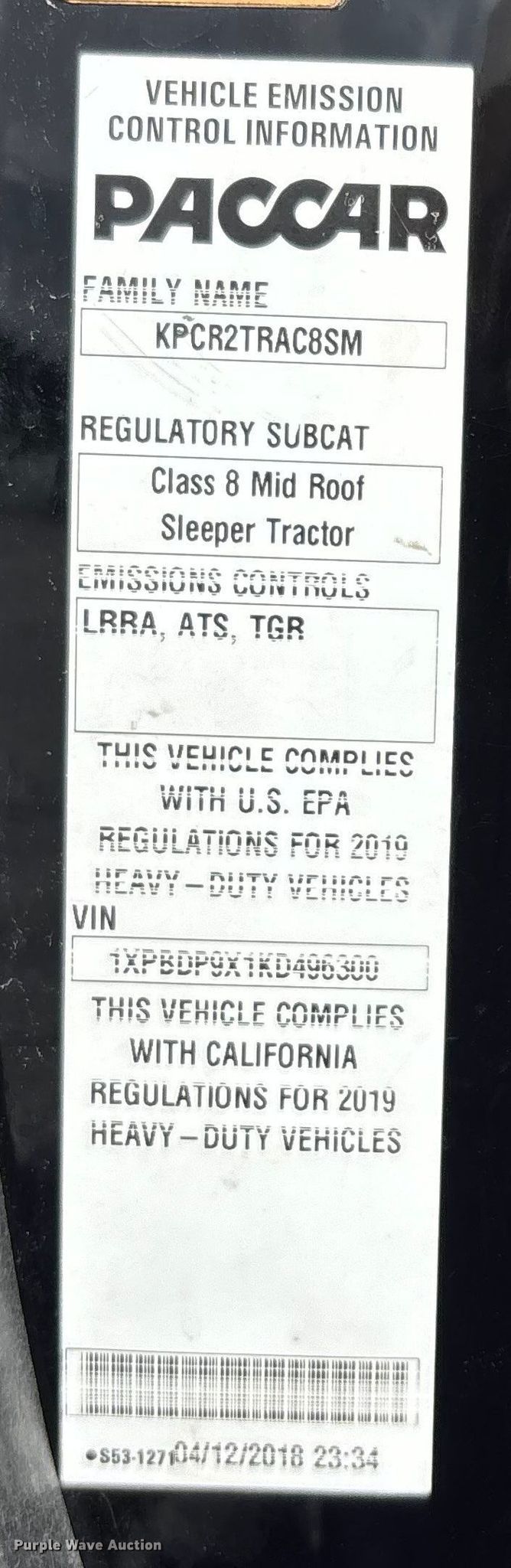 - VIN: 1XPBDP9X1KD496300