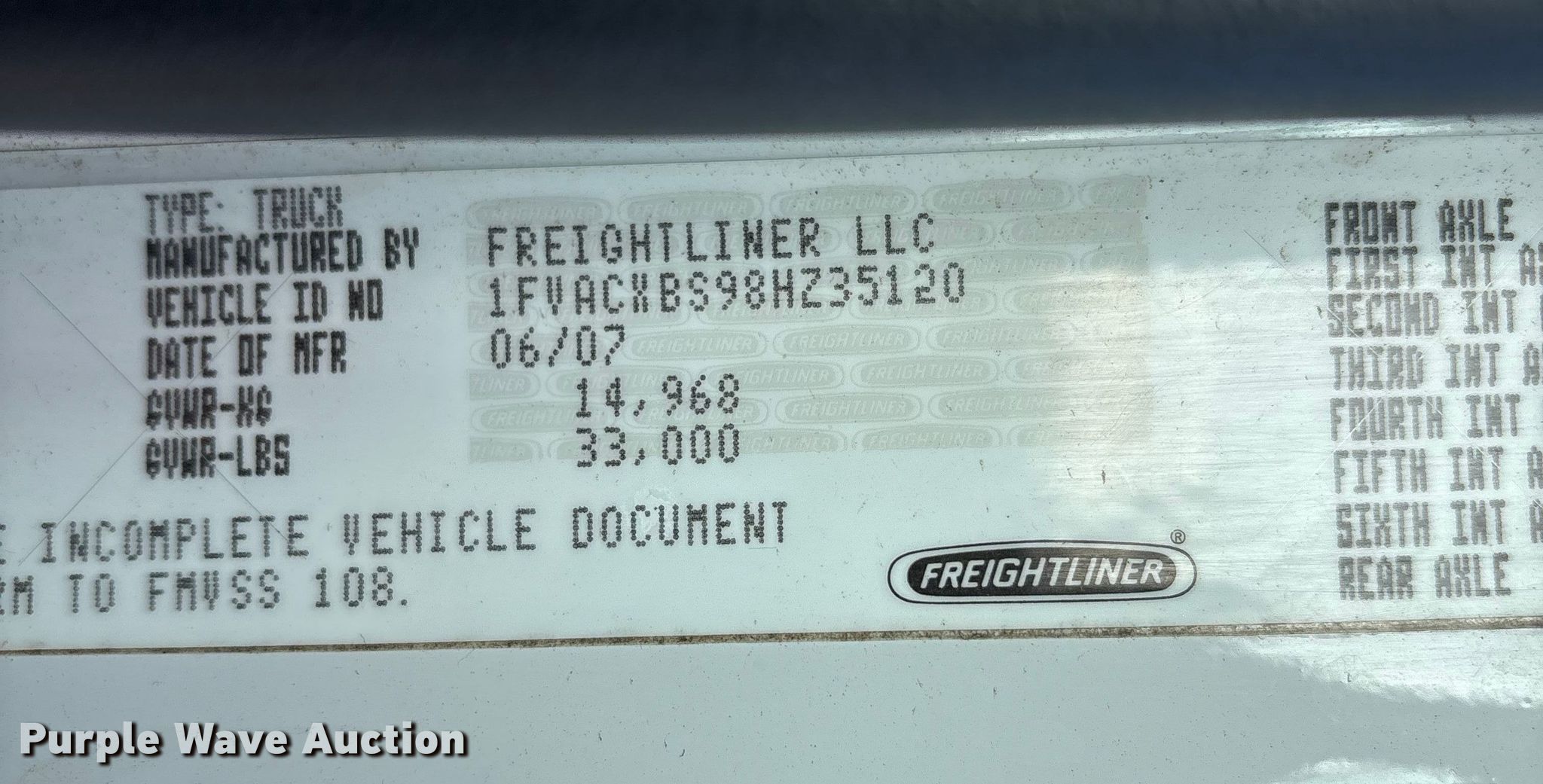 - VIN: 1FVACXBS98HZ35120
