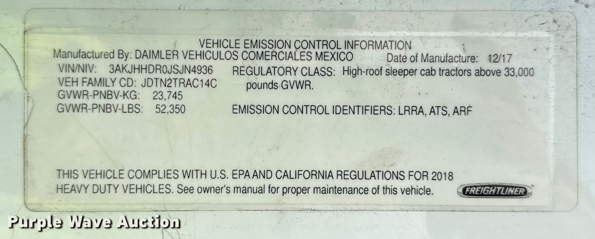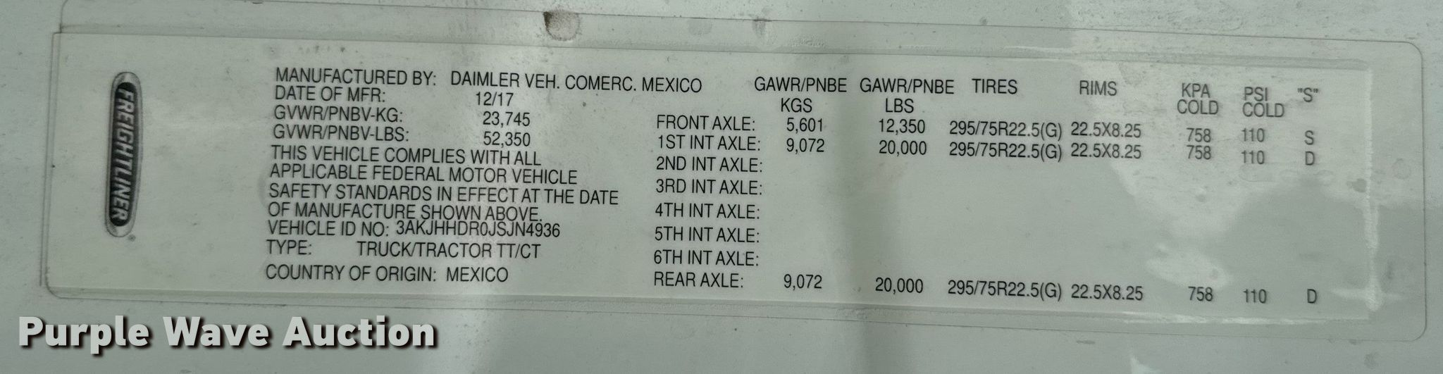 - VIN: 3AKJHHDR0JSJN4936