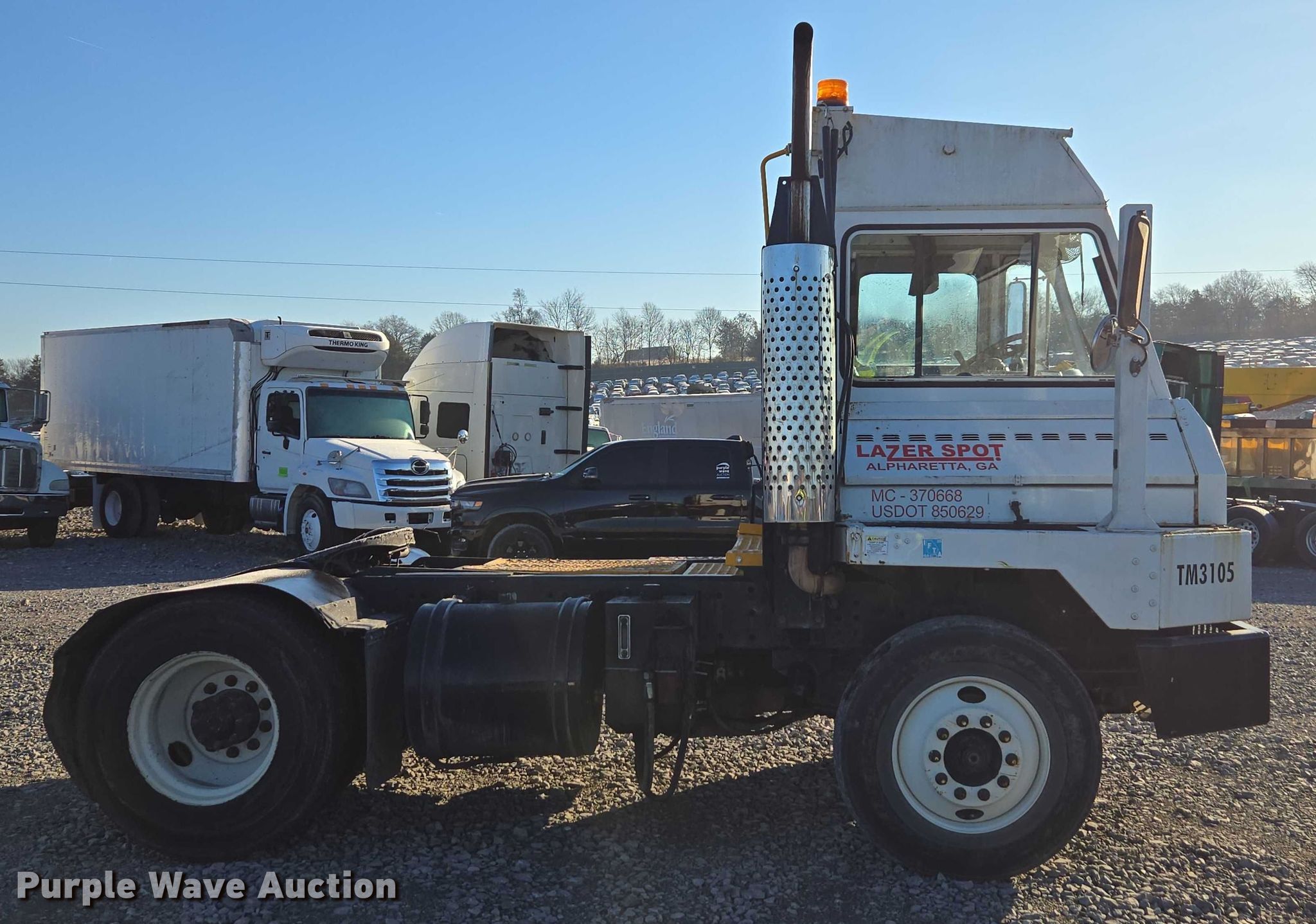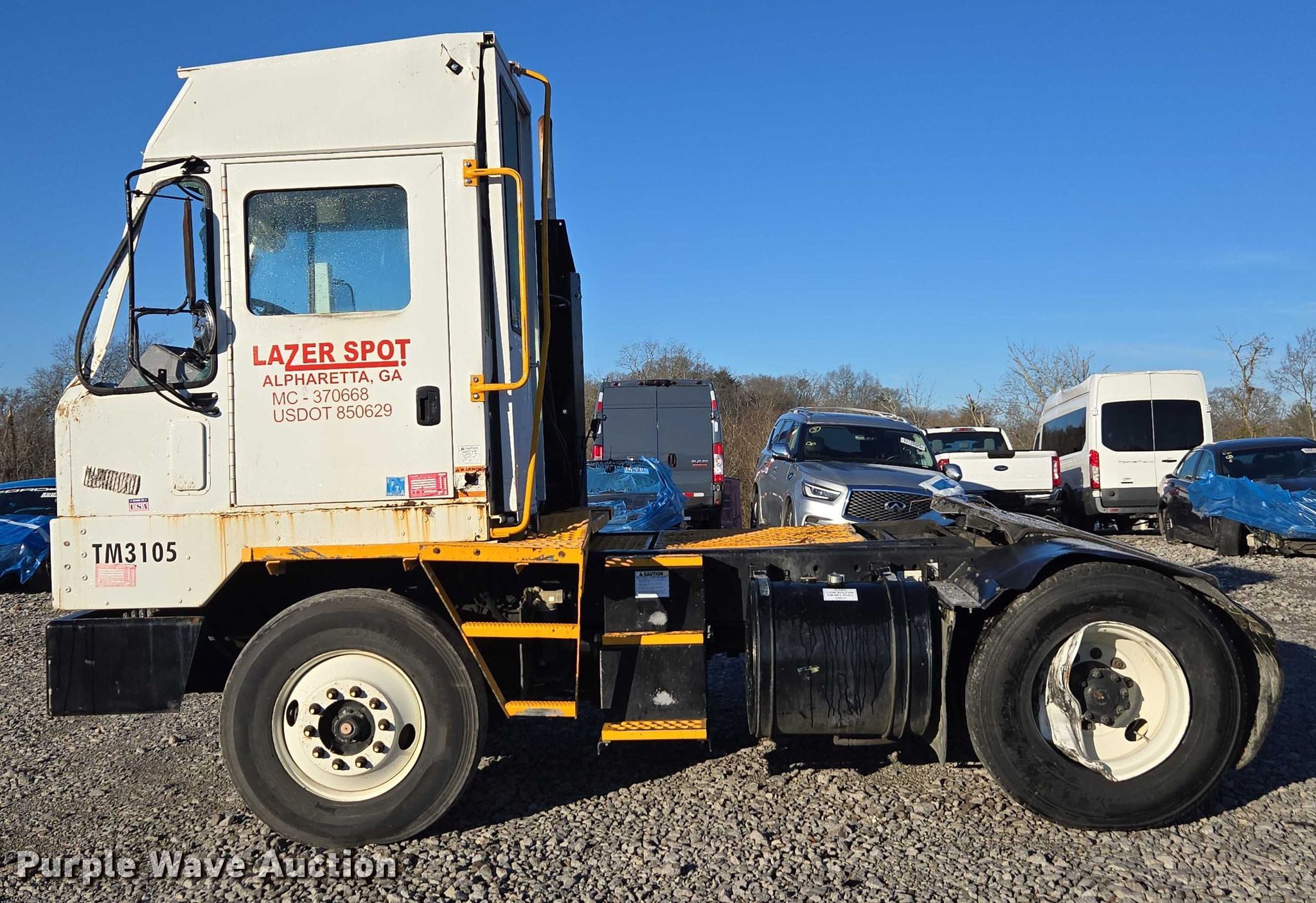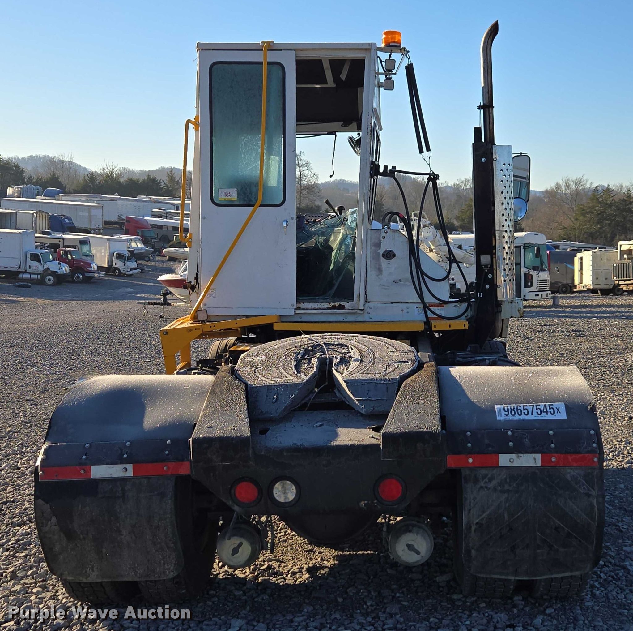 2013 Kalmar Ottawa yard truck. Miles: 9,313 on odometer, VIN: 333105, Unit #: 98657545. Engine Cummins ISB, Displacement: 6.7L, Cylinders: 6, Fuel type: Diesel. Transmission Allison, Automatic. Chassis Axles: Single, Suspension: Spring, Brakes: Air, PTO. Interior AC, Heat, Air ride cab. Features Deck plate: Steel, Fifth wheel type: Hydraulic lift, Fuel tank: Dual. Tires Size: 11R22.5. Notes Windshield chipped or cracked, Jump start required during on-site data collection, Roll over damage, Glass missing, broken, Non-operational ignition switch, damaged, Fifth wheel frame damaged, bent, Driver side wheel damaged, Serpentine belt missing. Fleet inventory reduction, stored at a secured facility. Please review REQUIRED REMOVAL INSTRUCTIONS. This is worksite support equipment and will not come with a title. Transfer of ownership documentation will be a bill of sale. Lazer Logistics. Madisonville, TN 37354