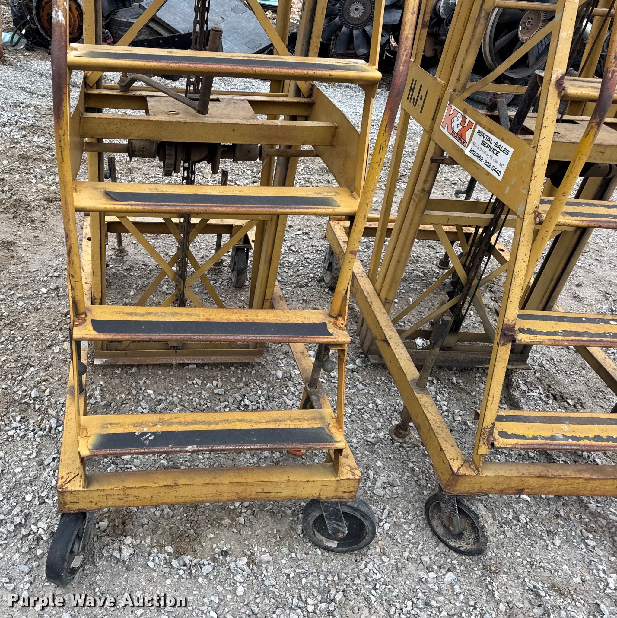 Purple Wave is selling a used Tools in Missouri. This item is a (2) Economy Hi-Jacker ladders with the following: Capacity: 300lbs