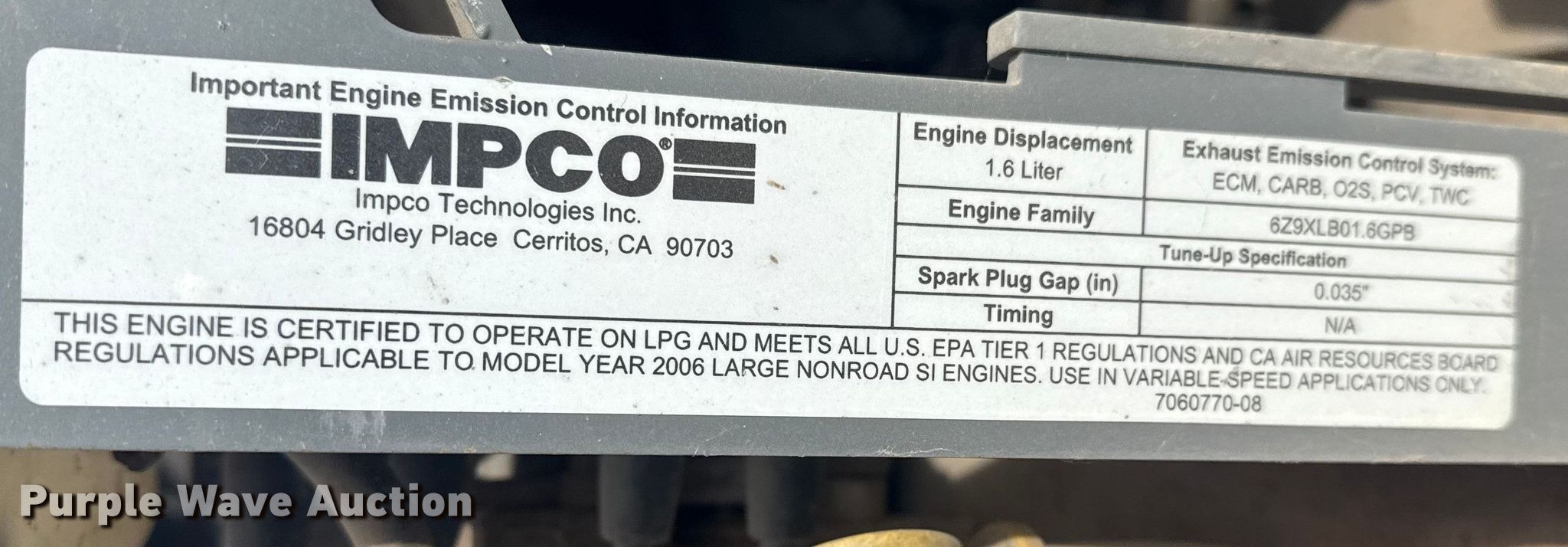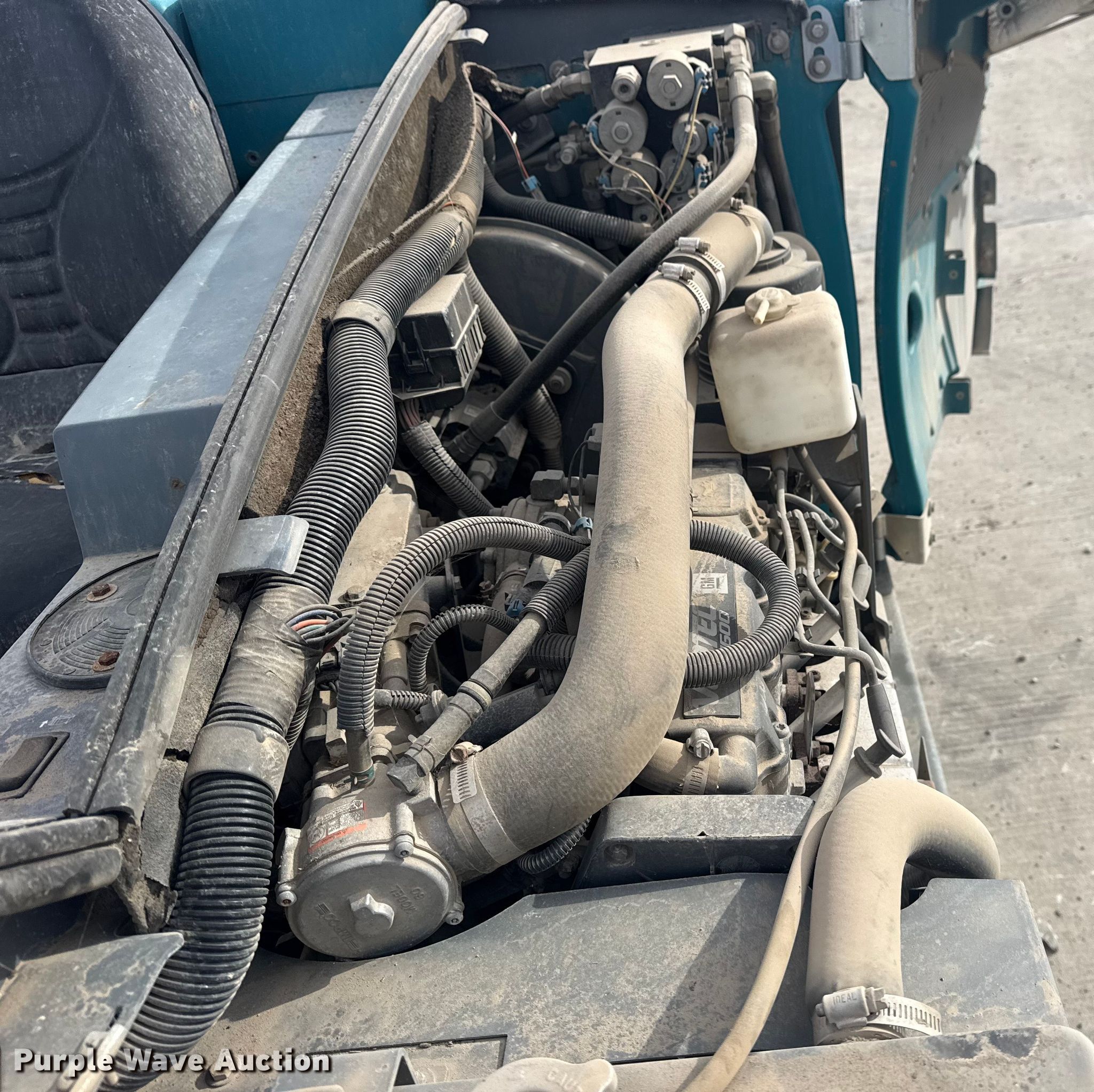 Tennant M20 sweeper. Hours: Unknown, Serial: M20-11070. Engine GM Vortec 1600, Displacement: 1.6L, Cylinders: 4, Fuel type: Gas. Transmission Automatic. Chassis GVWR: 5,200 lbs. Features Sweeper bed type: Vacuum, Right gutter broom Diameter: 12". Tires Rear: 16x3 1/2x12, Solid tires. Notes Non-operational screen. Gable's Excavating. Chouteau, OK 74337