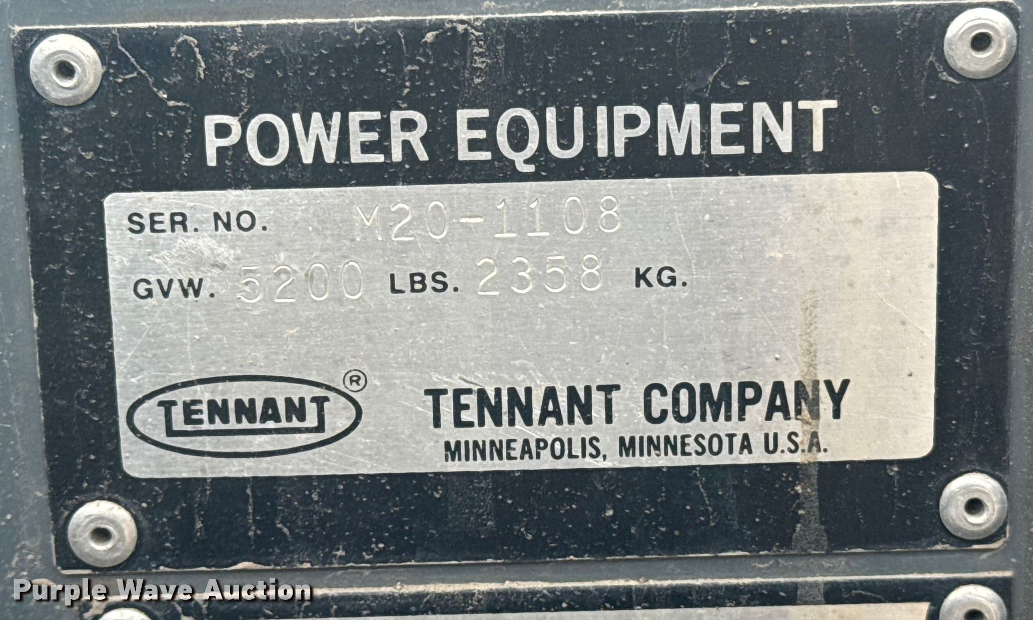 Purple Wave is selling a used Sweeper in Oklahoma. This item is a Tennant M20 sweeper with the following: Hours: Unknown, Serial: M20-11070