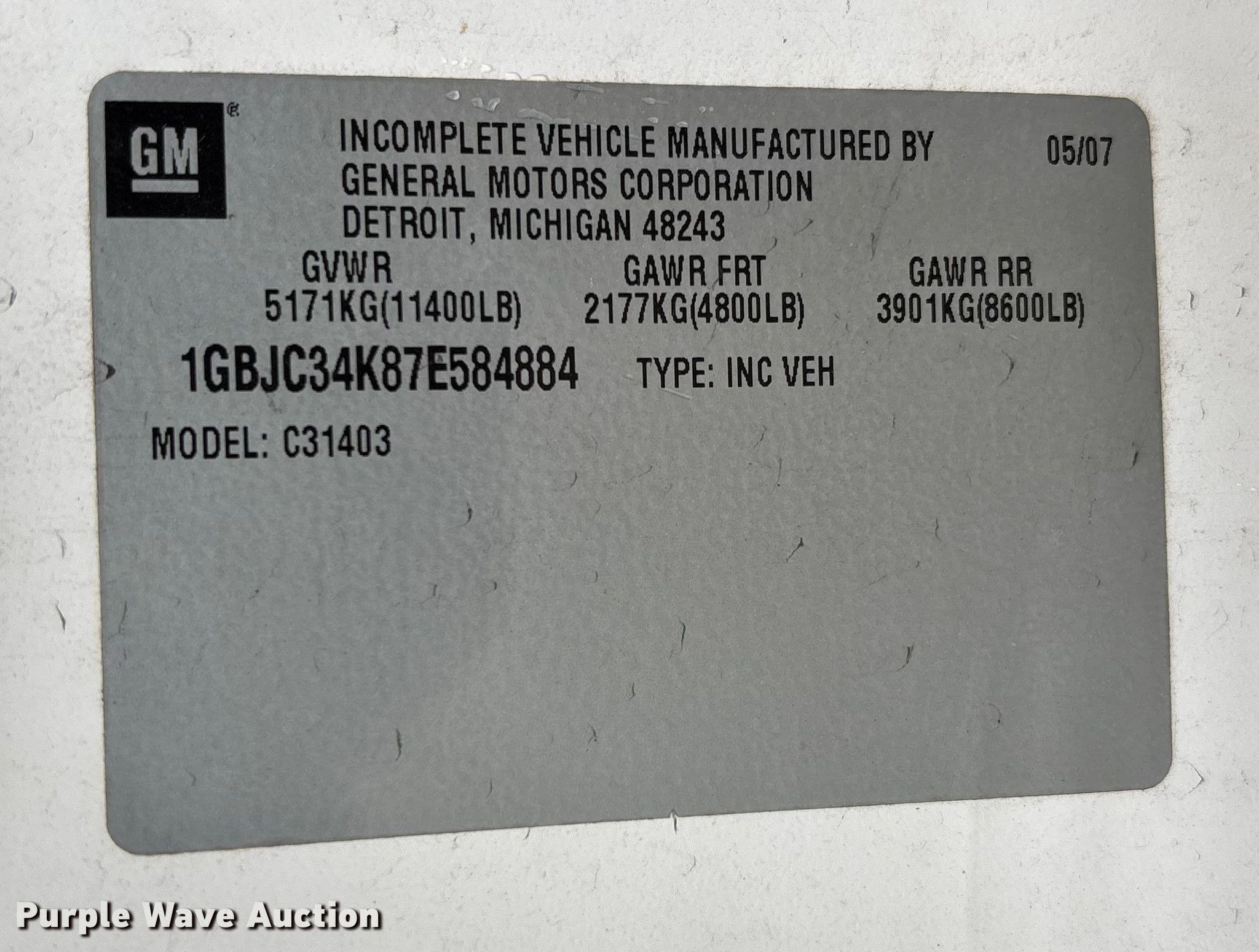 - VIN: 1GBJC34K87E584884