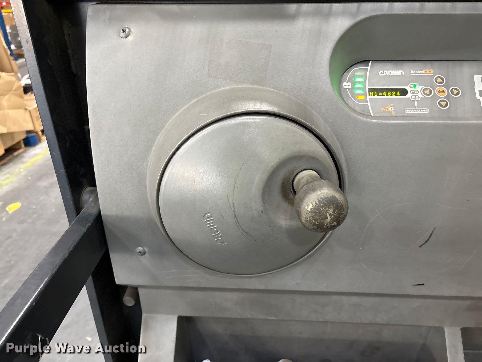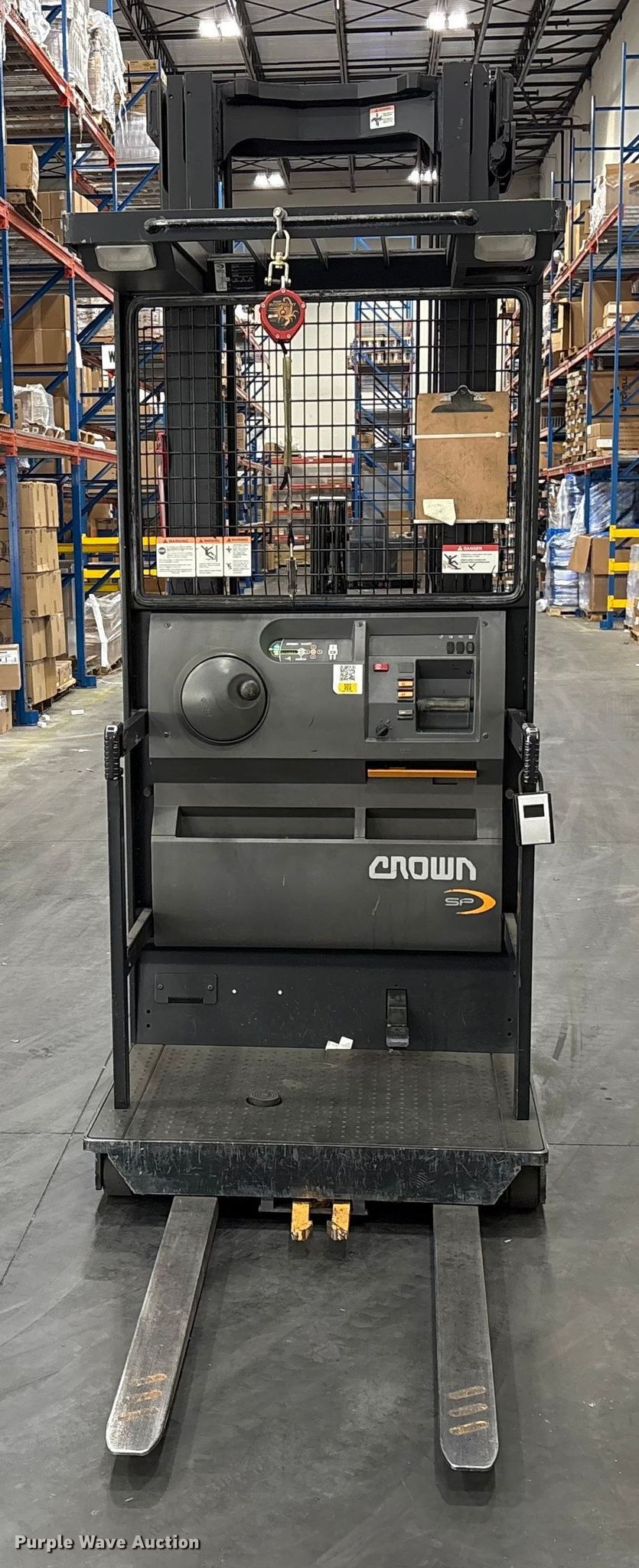 Purple Wave is selling a used Warehouse Forklift in Georgia. This item is a 2017 Crown SP3520-30 order picker with the following: Hours: 4,824 on meter, Miles or hours may vary, unit still in use, Serial: 1A515284, Unit #: SFS2841