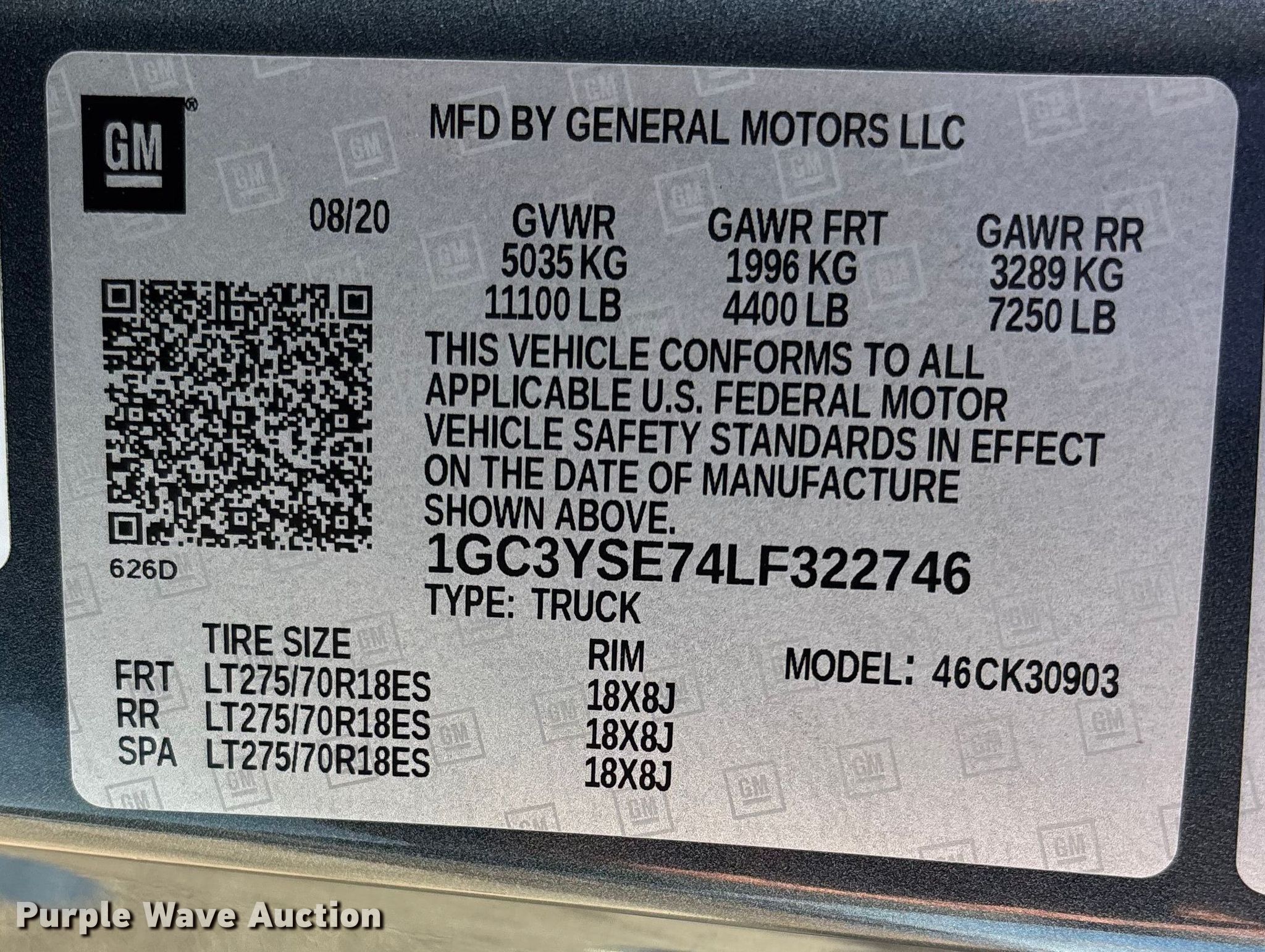 Purple Wave is selling a used 3/4 or 1 Ton Pickup or Van in Missouri. This item is a 2020 Chevrolet Silverado 3500HD pickup truck with the following: Miles: 83,596 on odometer, VIN: 1GC3YSE74LF322746